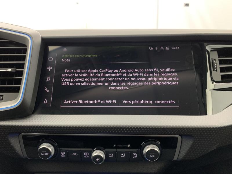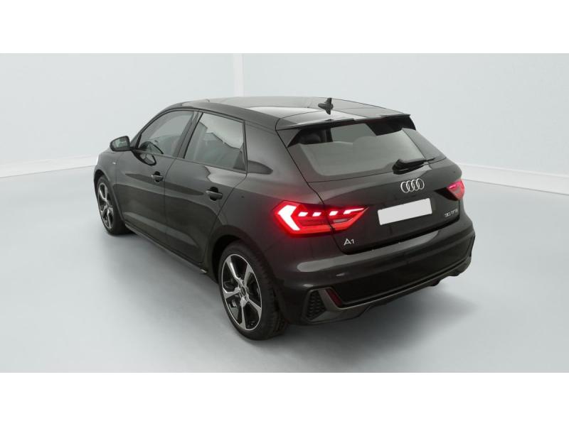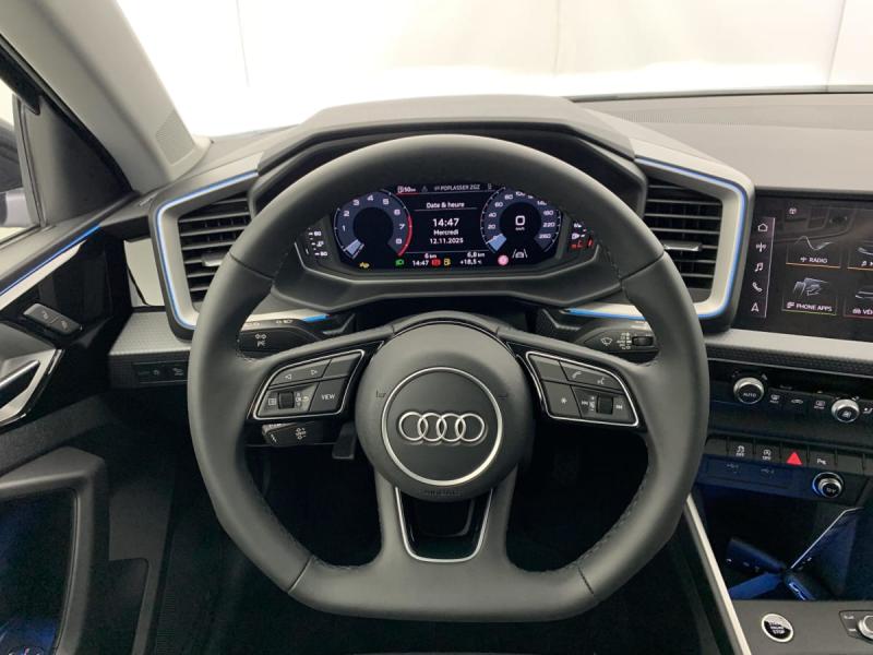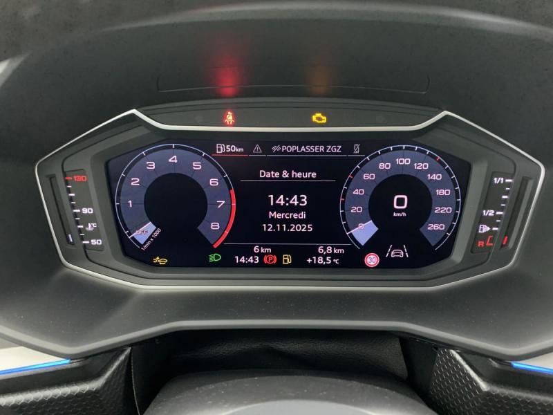 Accoudoir central AVAccoudoirs de portières en matériaux synthétiques AVAffichage de contrôle de pression des pneusAirbags latéraux à l'AV et système d'airbags de têteAppel d'urgence Audi connect et servicesApplications décoratives étendues en laque diamant Gris Argent dans l'insert du diffuseur d'air et de la console centrale ainsi que dans la poignée de la commande intérieure de verrouillage des portièresApplications décoratives étendues sur le tableau de bord façon verre en noir, de l'écran couleur MMI touch jusqu'aux triangles de portières AV façon verre en noirApplications décoratives structure polygone en laque fine ArdoiseArches de toit et pavillon de couleur uniAudi Pre Sense frontAudi Smartphone InterfaceAvertissement de franchissement de ligneBoîtiers de rétroviseurs extérieurs couleur carrosserieCalandre en Noir TitaneChâssis standardCiel de pavillon en tissu Gris TitaneClé à fréquence radioClimatisation automatique confort 2 zonesDétecteur d'occupation des siègesDétecteur de pluie et de luminositéDiffuseur AR en noir titane matDigital cockpitDossier de banquette AR rabattableEclairage intérieurEncadrement de calandre en Argent Aluminium matEssuie-glace AR à intermittenceFeux AR rougesFeux de brouillard ARFrein à main manuel en revêtement plastiqueInterface BluetoothLève-vitres électriques à l'AV et à l'ARLèvres de becquet latérales à l'AV en noir mat grainéLimiteur de vitesseMMI Radio plusMoulures de seuil avec insert en aluminium à l'AVPare-brise en verre athermique avec bande grise sur la partie supérieure du pare-brisePhares et feux AR à LED, avec clignotants dynamiques à ARPréparation pour la navigation MMI plus et Audi virtual cockpitPrises d'air latérales à l'AV en noir mat grainé avec encadrement C en Noir TitaneRégulateur de vitesseRétroviseur intérieur jour/nuit manuelRétroviseurs extérieurs réglables électriquement et dégivrants [6XD]Sellerie tissu Novum pour sièges sport à l'AVSet de réparation pour pneusSièges AV sportSièges conducteur et passager AV réglables en hauteurSystème de lecture des panneaux de signalisation par caméraTapis de sol AV/ARTrousse de secours avec triangle de présignalisationVitres athermiquesVolant en cuir style 3 branches avec multifonctions