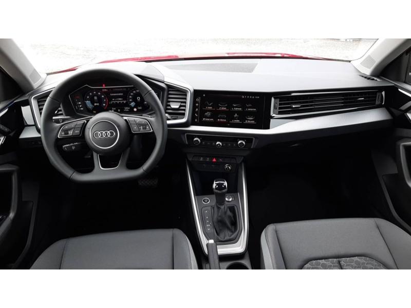 Accoudoir central AVAccoudoirs de portières en matériaux synthétiques AVAffichage de contrôle de pression des pneusAirbags latéraux à l'AV et système d'airbags de têteApplications décoratives étendues en laque diamant Gris Argent dans l'insert du diffuseur d'air et de la console centrale ainsi que dans la poignée de la commande intérieure de verrouillage des portièresApplications décoratives étendues sur le tableau de bord façon verre en noir, de l'écran couleur MMI touch jusqu'aux triangles de portières AV façon verre en noirApplications décoratives structure polygone en laque fine ArdoiseArches de toit et pavillon de couleur uniAssistant de démarrage en côte (Audi Hill Hold Assist)Audi Pre Sense frontAudi Smartphone InterfaceAvertissement de franchissement de ligneCiel de pavillon en tissu Gris TitaneClimatisation automatique confort 2 zonesDétecteur de pluie et de luminositéDossier de banquette AR rabattableFeux de brouillard ARInterface BluetoothLève-vitres électriques à l'AV et à l'ARLimiteur de vitesseMoulures de seuil avec insert en aluminium à l'AVPhares et feux AR à LED, avec clignotants dynamiques à ARPréparation pour la navigation MMI plus et Audi virtual cockpitRégulateur de vitesseRétroviseur intérieur jour/nuit manuelRétroviseurs extérieurs réglables électriquement et dégivrants [6XD]Sellerie tissu Novum pour sièges sport à l'AVSet de réparation pour pneusSièges AV sportSièges conducteur et passager AV réglables en hauteurSystème de lecture des panneaux de signalisation par caméraVitres athermiques
