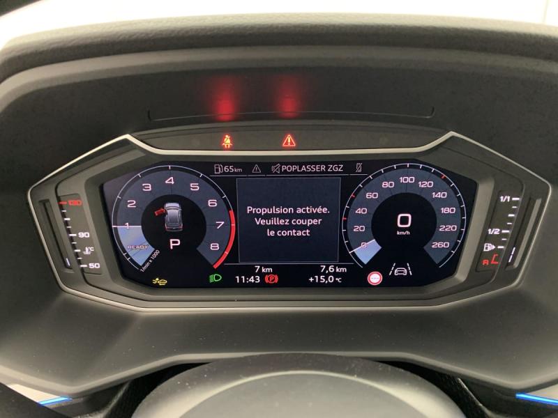Accoudoir central AVAccoudoirs de portières en matériaux synthétiques AVAffichage de contrôle de pression des pneusAirbags latéraux à l'AV et système d'airbags de têteApplications décoratives étendues en laque diamant Gris Argent dans l'insert du diffuseur d'air et de la console centrale ainsi que dans la poignée de la commande intérieure de verrouillage des portièresApplications décoratives étendues sur le tableau de bord façon verre en noir, de l'écran couleur MMI touch jusqu'aux triangles de portières AV façon verre en noirApplications décoratives structure polygone en laque fine ArdoiseArches de toit et pavillon de couleur uniAssistant de démarrage en côte (Audi Hill Hold Assist)Audi Pre Sense frontAudi Smartphone InterfaceAvertissement de franchissement de ligneCiel de pavillon en tissu Gris TitaneClimatisation automatique confort 2 zonesDétecteur de pluie et de luminositéDossier de banquette AR rabattableFeux de brouillard ARInterface BluetoothLève-vitres électriques à l'AV et à l'ARLimiteur de vitesseMoulures de seuil avec insert en aluminium à l'AVPhares et feux AR à LED, avec clignotants dynamiques à ARPréparation pour la navigation MMI plus et Audi virtual cockpitRégulateur de vitesseRétroviseur intérieur jour/nuit manuelRétroviseurs extérieurs réglables électriquement et dégivrants [6XD]Sellerie tissu Novum pour sièges sport à l'AVSet de réparation pour pneusSièges AV sportSièges conducteur et passager AV réglables en hauteurSystème de lecture des panneaux de signalisation par caméraVitres athermiques