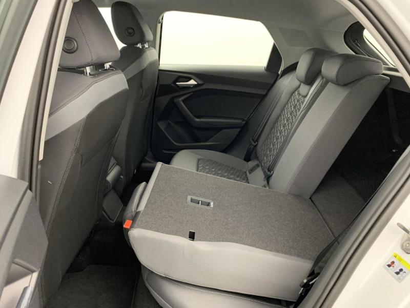Accoudoir central AVAccoudoirs de portières en matériaux synthétiques AVAffichage de contrôle de pression des pneusAirbags latéraux à l'AV et système d'airbags de têteApplications décoratives étendues en laque diamant Gris Argent dans l'insert du diffuseur d'air et de la console centrale ainsi que dans la poignée de la commande intérieure de verrouillage des portièresApplications décoratives étendues sur le tableau de bord façon verre en noir, de l'écran couleur MMI touch jusqu'aux triangles de portières AV façon verre en noirApplications décoratives structure polygone en laque fine ArdoiseArches de toit et pavillon de couleur uniAssistant de démarrage en côte (Audi Hill Hold Assist)Audi Pre Sense frontAudi Smartphone InterfaceAvertissement de franchissement de ligneCiel de pavillon en tissu Gris TitaneClimatisation automatique confort 2 zonesDétecteur de pluie et de luminositéDossier de banquette AR rabattableFeux de brouillard ARInterface BluetoothInterface USB de type CLève-vitres électriques à l'AV et à l'ARLimiteur de vitesseMoulures de seuil avec insert en aluminium à l'AVPhares et feux AR à LED, avec clignotants dynamiques à ARPréparation pour la navigation MMI plus et Audi virtual cockpitRégulateur de vitesseRétroviseur intérieur jour/nuit manuelRétroviseurs extérieurs réglables électriquement et dégivrants [6XD]Sellerie tissu Novum pour sièges sport à l'AVSet de réparation pour pneusSièges AV sportSièges conducteur et passager AV réglables en hauteurSystème de lecture des panneaux de signalisation par caméraVitres athermiques