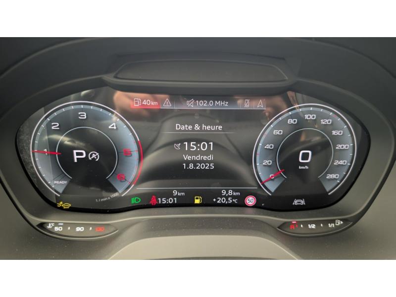 6 HPs à l'AVAirbags latéraux AV avec système d'airbags de têteAppuis lombaires à 4 axes pour les sièges AVAudi connect Remote & Control (pour MMI Radio plus)Audi Hold AssistAudi pre sense frontAudi Smartphone InterfaceAudi Virtual CockpitAvertissement de sortie de voieChâssis standardClé à fréquence radio sans SAFELOCKClimatisation automatique 2 zonesContrôle de pression de pneusDétecteur d’occupation de siègesDirection progressiveFeux AR à LEDJantes en aluminium, 5 branches design dynamique, contrastées gris, 7J x 18" avec pneus 215/50 R18MMI radio plus avec MMI touch réception radio de haute qualité, une réception radio numérique, un écran central tactile de 8,8", une interface Bluetooth pour la connexion d'un téléphone portable ainsi que 2 interfaces USB-C avec fonction de Moulures de seuil avec insert en aluminium, éclairéesPédalier standardProjecteurs AV à LEDRéception radio numérique DABRégulateur de vitesseRétroviseur intérieur jour/nuit automatiqueRétroviseurs extérieurs réglables, dégivrants et rabattables électriquement, jour/nuit automatiques des deux côtésSécurité enfants manuelle [4H3]Set de réparation pour pneusSièges AV à réglage manuelSièges AV SportSystème d'aide au stationnement ARSystème de lecture des panneaux de signalisation par caméraVolant en cuir style 3 branches avec multifonctions