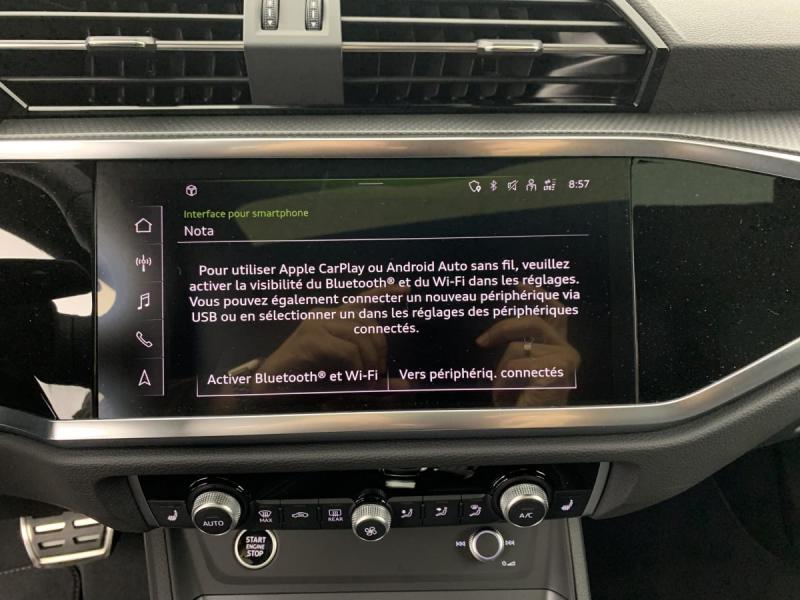 Assistance Assistant de maintien de vitesse adaptatif : 490,00 € inclus Audi Park Assist : 110,00 € inclus Audi Sound System : 330,00 € inclus Climatisation automatique confort 3 zones [KH5] : 370,00 € inclus Jantes en alliage léger rotor style 5 branches doubles,... : 2 500,00 € inclus MMI Navigation plus avec MMI touch : 1 650,00 € inclus Pack Rangement - Filet de rangement au dos des sièges... : 240,00 € inclus Pare-chocs S line dans une peinture intégrale (couleur... : 300,00 € inclus Peinture métallisée / nacrée : 900,00 € inclus Phares Matrix LED avec clignotants dynamiques AR : 800,00 € inclus Rétroviseurs extérieurs réglables, dégivrants,... : 80,00 € inclus Sellerie Cuir/matériaux synthétiques Monopur 550... : 450,00 € inclus Sièges AV chauffants : 380,00 € inclus Suppression d'identification moteur Toit ouvrant panoramique : 1 450,00 € inclus