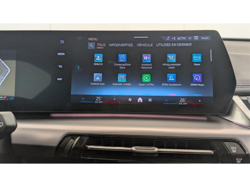 2 porte-gobelets sur la console centrale3ème feu stop LED intégré au spoiler AR5 placesABS - Système anti blocage des rouesAccoudoir central ARAccoudoir central AV avec panneau de commande intégréActive Guard Avertissement de franchissement de ligne avec impulsion sur la direction (>70km/h).Avertisseur de collision frontale avec intervention de freinage (3-210km/h).Avertisseur de présence d'un véhicule lors d'un changement de direction vers la gauche avec action suAirbag entre les deux sièges AV en cas de collision latéraleAirbag passager AV désactivable via la cléAirbags de tête à l'AV et aux places latérales ARAirbags frontaux conducteur et passager AVAirbags latéraux pour conducteur et passager AVAlarme antivolAppel d'Urgence Intelligent (durée de vie de la voiture)Appuis-tête AV et latéraux AR réglables en hauteurAssistant de démarrage en côteBanquette AR rabattable 40/20/40BMW Digital (BMW Maps, RTTI sur itinéraire, Apple CarPlay, Android Auto, BMW Intelligent Personal Assistant)BMW EfficientDynamics Système de récupération de l'énergie au freinage, Fonction d'arrêt et de redémarrage automatique du moteur, Direction à assistance électrique Servotronic (assistance variable selon la vitesse)BMW Live Cockpit Navigation Plus avec Ecran WidescreenBMW Live Cockpit PlusBoîte de vitesses automatique 7 rapports avec palettes au volantCapteur d'impact (Activation de l'airbag, des feux de détresse, de l'éclairage intérieur, Déverrouillage des portes, Activation de la borne batterie de sécurité)Carte SIM 4G LTE pour les Services ConnectedDriveCeintures de sécurité 3 points pour toutes les placesCiel de pavillon M AnthraciteClés radiocommandées à mémorisation automatique des réglages "Personal Profile" (x 2)Clignotants LED intégrés aux feux de jourClimatisation automatique 2 zones Contrôle de la température et du volume d'air distribué avec 5 niveaux d'intensité, réglables séparément entre le conducteur et le passager. Fonctionnalité SYNC pour que les réglages du conductCommande électrique du hayon de coffreCompartiment à bagages : 2 crochets de sac, filet sur panneau garuche, prise 12V, rangement additionel au modèle) sous plancher amovibleConnectivité téléphone Bluetooth avec interface USBConsole centrale avec insert noir brillantContrôle automatique de la stabilité (ASC)Contrôle de freinage en courbe CBCContrôle dynamique de stabilité DSCContrôle Dynamique de Traction DTCContrôle dynamique du freinage (DBC)Démarrage sans clé via le bouton Start/StopDésignation du modèle à droite du hayonDétecteur de pluie et allumage automatique des projecteursDirection assistéeEclairage de bienvenue autour du véhiculeEclairage de plaque d'immatriculation à LEDEléments extérieurs M SportEléments intérieur MEquipements supplémentaires Pack M SportESPFeux AR à LED intégrant les clignotantsFeux de sortie de porte AV (porte ouverte)Fixations ISOFIX / i-Size pour les deux sièges AR extérieursFonction cargo : Réglage de l'inclinaison de la banquette AR à 12 degrés (volume de chargement supplémentaire d' environ 85-100 litres)Fonction Start&Stop automatiqueFonctionnalité "Follow Me Home" (éclairage d'accompagnement) : les feux de croisement restent allumés quelques instants une fois le contact coupéFrein de parking électromécanique avec fonction "Automatic Hold"Freinage de séchageGrilles de calandre cerclées de chrome avec barreaux verticaux noirsHotSpot Wi-FiHybridation légère 48V - Fonctionnalité e-Boost via moteur électrique de 19ch situé dans la boite de vitesseInjection directe Common RailInserts décoratifs Aluminium M HexacubeJantes en alliage léger 18" style 838 M Gris foncé. Bicolore 7.5 J x 18 pneus 225/55 R 18. Montage chaînes à neige impossible.Kit éclairage : Eclairage intérieur de l'accoudoir central Lampes de courtoisie Eclairage plancher AV et AR Eclairage du miroir de courtoisie Lampes de lecture centrales Eclairage coffre à bagages sur un côté Eclairage habitacle AV et ARKit de mobilité Plus - Bouteille avec liquide anti-crevaison - Compresseur avec alimentation autonome via batterie rechargeable - Système se fixant au centre de la jante avec maintient de pression automatique du pneu crevé durant la conduite - Simple d'utilisation et r&eKit rangement : Bac de rangement dans les portes AV et AR avec porte-bouteille Compartiment de rangement central Compartiment de rangement avec couvercle rabattable sous l'accoudoir central AV Crochets de vêtements ARLève-vitres AV/AR électriques avec commande par impulsion et sécurité enfantsMesure individuelle de pression des pneumatiquesMy Modes: 3 modes de conduite (Personnel, Efficient, Sport)Norme General Safety Regulation 2 (GSR2)Notice d'utilisation de la voiture intégrée et carnet d'entretien électronique avec BMW Service HistoryOrdinateur de bord avec Check-Control et indicateur de température extérieurePare-choc AR avec inserts chromés en LPare-choc AV avec air curtains en noir matParking Assistant Comprend l'option Caméra de recul. Manoeuvres de stationnemment en créneau et en bataille facilitées par mesure automatique, Assistant de marche AR/Auto-reversePerformance control : contrôle du moteur et interventions freinage pour améliorer l'agilité et la neutralité en viragePersonal eSIM Personal eSIM est la version électronique, intégrée au véhicule, de la carte SIM traditionnelle. Vous l'utilisez via un abonnement souscrit auprès d'un opérateur téléphonique et transformez ainsi votre BMW en pérPlanche de bord en similicuir Sensatec Habillage de la planche de bord en Sensatec noir avec surpiqûres grise (surpiqûres bleues en combinaison avec une sellerie Alcantara / Sensatec), Parties supérieures du tableau de bord et du panneau de portePoignées de portes affleurantesPorts USB Type C pour la recharge à l'AV (x2) et recharge à l'AR (x2)Prises de courant 12V dans la console centrale AV et dans le coffreRégulateur