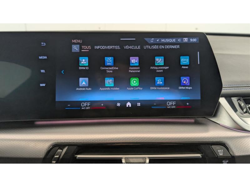 2 porte-gobelets sur la console centrale3ème feu stop LED intégré au spoiler AR5 placesABS - Système anti blocage des rouesAccoudoir central ARAccoudoir central AV avec panneau de commande intégréActive Guard Avertissement de franchissement de ligne avec impulsion sur la direction (>70km/h).Avertisseur de collision frontale avec intervention de freinage (3-210km/h).Avertisseur de présence d'un véhicule lors d'un changement de direction vers la gauche avec action suAirbag entre les deux sièges AV en cas de collision latéraleAirbag passager AV désactivable via la cléAirbags de tête à l'AV et aux places latérales ARAirbags frontaux conducteur et passager AVAirbags latéraux pour conducteur et passager AVAlarme antivolAppel d'Urgence Intelligent (durée de vie de la voiture)Appuis-tête AV et latéraux AR réglables en hauteurAssistant de démarrage en côteBanquette AR rabattable 40/20/40BMW Digital (BMW Maps, RTTI sur itinéraire, Apple CarPlay, Android Auto, BMW Intelligent Personal Assistant)BMW EfficientDynamics Système de récupération de l'énergie au freinage, Fonction d'arrêt et de redémarrage automatique du moteur, Direction à assistance électrique Servotronic (assistance variable selon la vitesse)BMW Live Cockpit Navigation Plus avec Ecran WidescreenBMW Live Cockpit PlusBoîte de vitesses automatique 7 rapports avec palettes au volantCapteur d'impact (Activation de l'airbag, des feux de détresse, de l'éclairage intérieur, Déverrouillage des portes, Activation de la borne batterie de sécurité)Carte SIM 4G LTE pour les Services ConnectedDriveCeintures de sécurité 3 points pour toutes les placesCiel de pavillon M AnthraciteClés radiocommandées à mémorisation automatique des réglages "Personal Profile" (x 2)Clignotants LED intégrés aux feux de jourClimatisation automatique 2 zones Contrôle de la température et du volume d'air distribué avec 5 niveaux d'intensité, réglables séparément entre le conducteur et le passager. Fonctionnalité SYNC pour que les réglages du conductCommande électrique du hayon de coffreCompartiment à bagages : 2 crochets de sac, filet sur panneau garuche, prise 12V, rangement additionel au modèle) sous plancher amovibleConnectivité téléphone Bluetooth avec interface USBConsole centrale avec insert noir brillantContrôle automatique de la stabilité (ASC)Contrôle de freinage en courbe CBCContrôle dynamique de stabilité DSCContrôle Dynamique de Traction DTCContrôle dynamique du freinage (DBC)Démarrage sans clé via le bouton Start/StopDésignation du modèle à droite du hayonDétecteur de pluie et allumage automatique des projecteursDirection assistéeEclairage de bienvenue autour du véhiculeEclairage de plaque d'immatriculation à LEDEléments extérieurs M SportEléments intérieur MEquipements supplémentaires Pack M SportESPFeux AR à LED intégrant les clignotantsFeux de sortie de porte AV (porte ouverte)Fixations ISOFIX / i-Size pour les deux sièges AR extérieursFonction cargo : Réglage de l'inclinaison de la banquette AR à 12 degrés (volume de chargement supplémentaire d' environ 85-100 litres)Fonction Start&Stop automatiqueFonctionnalité "Follow Me Home" (éclairage d'accompagnement) : les feux de croisement restent allumés quelques instants une fois le contact coupéFrein de parking électromécanique avec fonction "Automatic Hold"Freinage de séchageGrilles de calandre cerclées de chrome avec barreaux verticaux noirsHotSpot Wi-FiHybridation légère 48V - Fonctionnalité e-Boost via moteur électrique de 19ch situé dans la boite de vitesseInjection directe Common RailInserts décoratifs Aluminium M HexacubeJantes en alliage léger 18" style 838 M Gris foncé. Bicolore 7.5 J x 18 pneus 225/55 R 18. Montage chaînes à neige impossible.Kit éclairage : Eclairage intérieur de l'accoudoir central Lampes de courtoisie Eclairage plancher AV et AR Eclairage du miroir de courtoisie Lampes de lecture centrales Eclairage coffre à bagages sur un côté Eclairage habitacle AV et ARKit de mobilité Plus - Bouteille avec liquide anti-crevaison - Compresseur avec alimentation autonome via batterie rechargeable - Système se fixant au centre de la jante avec maintient de pression automatique du pneu crevé durant la conduite - Simple d'utilisation et r&eKit rangement : Bac de rangement dans les portes AV et AR avec porte-bouteille Compartiment de rangement central Compartiment de rangement avec couvercle rabattable sous l'accoudoir central AV Crochets de vêtements ARLève-vitres AV/AR électriques avec commande par impulsion et sécurité enfantsMesure individuelle de pression des pneumatiquesMy Modes: 3 modes de conduite (Personnel, Efficient, Sport)Norme General Safety Regulation 2 (GSR2)Notice d'utilisation de la voiture intégrée et carnet d'entretien électronique avec BMW Service HistoryOrdinateur de bord avec Check-Control et indicateur de température extérieurePare-choc AR avec inserts chromés en LPare-choc AV avec air curtains en noir matParking Assistant Comprend l'option Caméra de recul. Manoeuvres de stationnemment en créneau et en bataille facilitées par mesure automatique, Assistant de marche AR/Auto-reversePerformance control : contrôle du moteur et interventions freinage pour améliorer l'agilité et la neutralité en viragePersonal eSIM Personal eSIM est la version électronique, intégrée au véhicule, de la carte SIM traditionnelle. Vous l'utilisez via un abonnement souscrit auprès d'un opérateur téléphonique et transformez ainsi votre BMW en pérPlanche de bord en similicuir Sensatec Habillage de la planche de bord en Sensatec noir avec surpiqûres grise (surpiqûres bleues en combinaison avec une sellerie Alcantara / Sensatec), Parties supérieures du tableau de bord et du panneau de portePoignées de portes affleurantesPorts USB Type C pour la recharge à l'AV (x2) et recharge à l'AR (x2)Prises de courant 12V dans la console centrale AV et dans le coffreRégulateur
