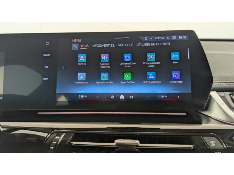 2 porte-gobelets sur la console centrale3ème feu stop LED intégré au spoiler AR5 placesABS - Système anti blocage des rouesAccoudoir central ARAccoudoir central AV avec panneau de commande intégréActive Guard Avertissement de franchissement de ligne avec impulsion sur la direction (>70km/h).Avertisseur de collision frontale avec intervention de freinage (3-210km/h).Avertisseur de présence d'un véhicule lors d'un changement de direction vers la gauche avec action suAirbag entre les deux sièges AV en cas de collision latéraleAirbag passager AV désactivable via la cléAirbags de tête à l'AV et aux places latérales ARAirbags frontaux conducteur et passager AVAirbags latéraux pour conducteur et passager AVAlarme antivolAppuis-tête AV et latéraux AR réglables en hauteurAssistant de démarrage en côteBanquette AR rabattable 40/20/40BMW Digital (BMW Maps, RTTI sur itinéraire, Apple CarPlay, Android Auto, BMW Intelligent Personal Assistant)BMW EfficientDynamics Système de récupération de l'énergie au freinage, Fonction d'arrêt et de redémarrage automatique du moteur, Direction à assistance électrique Servotronic (assistance variable selon la vitesse)BMW Live Cockpit Navigation Plus avec Ecran WidescreenBMW Live Cockpit PlusBoîte de vitesses automatique à double embrayage DKG7 à 7 rapportsCâble de recharge Professionnel Mode 3 (T2-T2) pour la recharge publique - 5 mètres Câble de recharge Professionnel de Mode 3 triphasé avec prises Type 2 - Type 2 destiné à la recharge sur bornes publiques ou privées. Peut être utilisé sur Capteur d'impact (Activation de l'airbag, des feux de détresse, de l'éclairage intérieur, Déverrouillage des portes, Activation de la borne batterie de sécurité)Carte SIM 4G LTE pour les Services ConnectedDriveCeintures de sécurité 3 points pour toutes les placesClés radiocommandées à mémorisation automatique des réglages "Personal Profile" (x 2)Clignotants LED intégrés aux feux de jourClimatisation automatique 2 zones Contrôle de la température et du volume d'air distribué avec 5 niveaux d'intensité, réglables séparément entre le conducteur et le passager. Fonctionnalité SYNC pour que les réglages du conductCommande électrique du hayon de coffreCompartiment à bagages : 2 crochets de sac, filet sur panneau garuche, prise 12V, rangement additionel au modèle) sous plancher amovibleConnectivité téléphone Bluetooth avec interface USBConsole centrale avec insert noir brillantContour de vitres noir matContrôle automatique de la stabilité (ASC)Contrôle de freinage en courbe CBCContrôle dynamique de stabilité DSCContrôle Dynamique de Traction DTCContrôle dynamique du freinage (DBC)Démarrage sans clé via le bouton Start/StopDésignation du modèle à droite du hayonDétecteur de pluie et allumage automatique des projecteursDirection assistéeEclairage de bienvenue autour du véhiculeEclairage de plaque d'immatriculation à LEDEléments extérieurs xLineESPFeux AR à LED intégrant les clignotantsFeux de sortie de porte AV (porte ouverte)Filtre à particulesFixations ISOFIX / i-Size pour les deux sièges AR extérieursFonction cargo : Réglage de l'inclinaison de la banquette AR à 12 degrés (volume de chargement supplémentaire d' environ 85-100 litres)Fonction Start&Stop automatiqueFonctionnalité "Follow Me Home" (éclairage d'accompagnement) : les feux de croisement restent allumés quelques instants une fois le contact coupéFrein de parking électromécanique avec fonction "Automatic Hold"Freinage de séchageGrilles de calandre cerclées de chrome avec barreaux verticaux noirsHotSpot Wi-FiInjection haute pressionInserts décoratifs brillant "Schwarz" soulignés de chrome perléKit éclairage : Eclairage intérieur de l'accoudoir central Lampes de courtoisie Eclairage plancher AV et AR Eclairage du miroir de courtoisie Lampes de lecture centrales Eclairage coffre à bagages sur un côté Eclairage habitacle AV et ARKit de mobilité Plus - Bouteille avec liquide anti-crevaison - Compresseur avec alimentation autonome via batterie rechargeable - Système se fixant au centre de la jante avec maintient de pression automatique du pneu crevé durant la conduite - Simple d'utilisation et r&eKit rangement : Bac de rangement dans les portes AV et AR avec porte-bouteille Compartiment de rangement central Compartiment de rangement avec couvercle rabattable sous l'accoudoir central AV Crochets de vêtements ARLève-vitres AV/AR électriques avec commande par impulsion et sécurité enfantsMesure individuelle de pression des pneumatiquesMy Modes: 3 modes de conduite (Personnel, Efficient, Sport)Notice d'utilisation de la voiture intégrée et carnet d'entretien électronique avec BMW Service HistoryOrdinateur de bord avec Check-Control et indicateur de température extérieurePare-choc AR avec inserts chromés en LPare-choc AV avec air curtains en noir matParking Assistant Comprend l'option Caméra de recul. Manoeuvres de stationnemment en créneau et en bataille facilitées par mesure automatique, Assistant de marche AR/Auto-reversePerformance control : contrôle du moteur et interventions freinage pour améliorer l'agilité et la neutralité en viragePersonal eSIM Personal eSIM est la version électronique, intégrée au véhicule, de la carte SIM traditionnelle. Vous l'utilisez via un abonnement souscrit auprès d'un opérateur téléphonique et transformez ainsi votre BMW en pérPlanche de bord en similicuir Sensatec Habillage de la planche de bord en Sensatec noir avec surpiqûres grise (surpiqûres bleues en combinaison avec une sellerie Alcantara / Sensatec), Parties supérieures du tableau de bord et du panneau de portePoignées de portes affleurantesPorts USB Type C pour la recharge à l'AV (x2) et recharge à l'AR (x2)Prises de courant 12V dans la console centrale AV et dans le coffreProtection acoustique pour piétons Son généré artificiellement lors de la conduite électrique jusqu'à 30 km/h pour prot