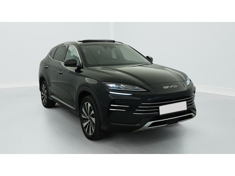 4 x lève-vitre à impulsion avec fonction anti-pincementAccès et démarrage sans cléAccoudoir AR, 2 porte-gobeletAccoudoir central AV, 2 porte-gobeletAffichage tête haute (HUD)Airbag central AVAirbag conducteurAirbag latéral AVAirbag passager AV avec contacteur de désactivationAirbags rideauxAlerte de trafic transversal AR (RCTA) et freinage en cas de trafic transversal AR (RCTB)Alerte de trafic transversal AV (FCTA) et freinage en cas de trafic transversal AV (FCTB)Appel d'urgenceApple CarPlay / Android AutoArrêt confort (CST)Assistance à la sortie de voie (LDA)Assistance au changement de voie (LCA)Assistance au maintien sur la voie (LKA)Assistance d´urgence au maintien dans la voie (ELKA)Assistance feux de route (HMA)Assistance hydraulique au freinage (HBA)Avertissement d'ouverture de porte (DOW)Avertissement de collision AR (RCW)Avertissement de collision AV (FCW)Avertissement de sortie de voie (LDW)Avertissement prédictif de collision (PCW)Barres de toit en aluminiumBouches d'aération ARCaméra à 360°Ceinture de sécurité à limitation de force de siége AR MédianCeinture de sécurité AV avec prétensionneur et limiteur de forceCharge sans fil de smartphone 2x15WChargeur embarqué 11 kW (OBC)Commande vocale intelligente - "Hi, BYD"Connectivité 4G embarquéeContrôle de descente en pente (HDC)Contrôle de la dynamique du véhicule (VDC)Contrôle de maintien en côte (HHC)Décélération contrôlée pour frein de stationnement (CDP)Détection d'angle mort (BSD)Détection de la fatigue du conducteur (DFM) indirecteDétection de présence d'enfant (CPD)DAB+ & FMDistribution électronique de la force de freinage (EBD)Eclairage ambiant, multicolore, réagissant au rythmeEclairage d'accompagnement (fonction d'allumage anticipé et d'extinction différée des phares)Eclairage d'accueil dynamiqueEclairages de porte AV à LEDEclairages de sol dans les rétroviseurs extérieursEclairages de sol de siège AVEcran tactile rotatif électrique 15,6"Feux antibrouillard ARFeux AR à LEDFeux de jour à LEDFiltre à air PM2.5Fonction Auto Hold du freinageFonction Véhicule à chargement (V2L)Frein de stationnement électronique (EPB)Freinage d'urgence automatique (AEB)Hayon électriqueISOFIX et i-Size, siège passager AV et sièges AR externesJantes en alliage 19" bicolores avec pneus 235/50 R19Lampe de lecture à LED AVLampe de lecture à LED latérale ARModes de conduite : Eco, Normal, Sport, NeigePare-brise AV, essuie-glaces a détection de pluiePare-brise AV, protection anti-UV, isolation thermique, insonorisationPare-soleil AV avec éclairage du miroirPhares à LED avec allumage/extinction automatiquePorts USB AR, 2 x 18 W type CPorts USB AV, 1 x 18 W type C, 1 x 60 W type CPrévention de sortie de voie (LDP)Régulateur de limite de vitesse intelligent (ISLC)Régulateur de vitesse adaptatif (ACC) et régulateur de vitesse intelligent (ICC)Rétroviseur à atténuation automatiqueRétroviseurs extérieurs réglables électriquement, rabattables électriquement, chauffantsRadars de stationnement ARRadars de stationnement AVReconnaissance des panneaux de signalisation (TSR)Service Cloud - Appli BYDServo-frein hydraulique (HBB)Siège conducteur avec appuie-tête intégréSiège conducteur, réglable électriquement, 8 directions, mémoire de positionSiège conducteur, ventilé, chauffant, réglage mémoriséSiège passager AV avec appuie-tête intégréSiège passager AV avec ventilation et chauffageSiège passager AV réglable éclectriquement, 4 directionsSièges AR rabattables séparément - 40:60Sièges AR, appuie-tête réglable manuellementSortie électrique 12 VSystème antipatinage (TCS)Système antivolSystème audio Infinity à 10 HPSystème de contrôle anti-renversement (RMI)Système de priorité au freinage sur les pédales (BOS)Système de purification d'air PM2.5Système de surveillance de la pression des pneus (TPMS)Système de verrouillage automatiqueTableau de bord LCD 12,3" tout TFTTablette AR du coffreToit ouvrant panoramique avec fonction anti-pincement, avec pare-soleil à réglage électriqueVerrouillage de sécurité enfant mécaniqueVitres AR et lunette AR, vitrage surteintéVolant chauffantVolant multifonction similicuir vegan