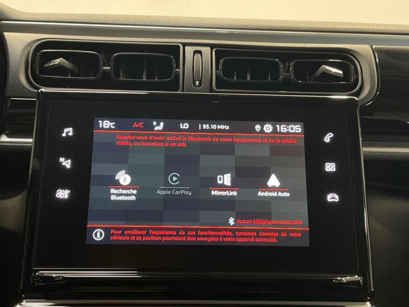 ABS avec REF, AFU et ESPAdhesifs de custode SpecifiquesAide au demarrage en penteAirbags frontaux AV, lateraux AV et rideauxAirbump Black avec gelule Blanc BanquiseAllumage des feux de detresse en cas de forte decelerationAndroid Auto et Apple CarPlayBadge C-Series sur les portes AVBandeau de planche de bord Noir BrillantBanquette AR fractionnable 2/3 - 1/3Clignotants impulsionnelsClimatisation automatiqueCommandes au volant du systeme audioCondamnation centralisee avec PLIPCoques de retroviseurs exterieurs Noir BrillantDecor central de toit specifiqueDetection de sous-gonflageDirection assisteeEcran central 7" tactileElargisseurs d'ailes et bas de caisse Noir MatEnjoliveurs 3D 16" STEEL & DESIGNFeux diurnes a LEDFixations ISOFIX sur sieges passagers ARGarnissage tissu Mica GreyKit de depannage provisoire de pneumatiquesKit mains libres Bluetooth et prise USBLeve-vitres AR manuelsLeve-vitres AV electriquesMirror ScreenMyCitroen PlayOrdinateur de bordPack Color NoirPack SafetyPack VisibilitePare-soleil avec miroir occultable cotes conducteur et passagerPlafonnier AV simplePoignees de portes exterieures couleur caissePrise 12V a l'AVProjecteurs antibrouillardProjecteurs LEDRegulateur-limiteur de vitesseRetroviseurs exterieurs electriques et degivrantsSecurite enfants mecaniqueSiege conducteur reglable en hauteurSysteme audio numerique MP3 6 HP (DAB)Systeme Stop & StartVolant mousseVolant reglable en hauteur et en profondeur