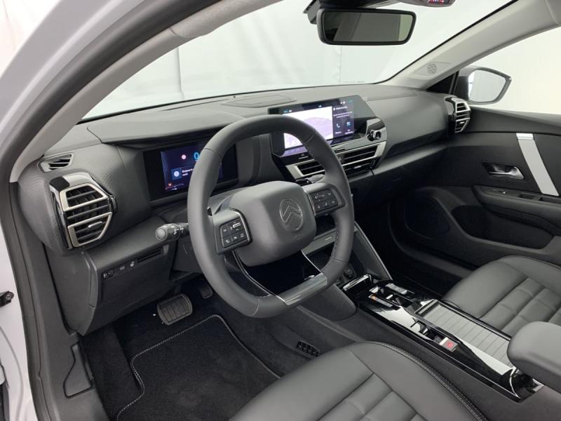 2 prises USB au rang 1 (1 type C + 1 type A) + 1 prise USB en rang 2 (type A)Aérateurs centraux en rang 2ABS + AFU + ESP + REFAccès et démarrage mains libres Proximity 2 Télécommandes 3 boutons (verrouillage, coffre et déverrouillage).Accoudoir central AR avec trappe à skisAide au démarrage en penteAide au stationnement ARAide au stationnement AV et latéralAirbags frontaux, latéraux AV et rideauxBanquette AR fractionnable 2/3 - 1/3Boîte automatique 6 rapportsCaméra de reculClimatisation automatique bizoneColor Clips Gold SatinConsole centrale haute avec rangements et accoudoirCoques de rétroviseurs extérieurs Noir BrillantDétection de sous-gonflageDirection assistéeEclairage d'accompagnement sous les rétroviseurs extérieursEcran central 10" tactile: - Système audio numérique (DAB) 6 HPs - Apple CarPlay et Android Auto sans fil - Reconnaissance vocale - Kit mains libres Bluetooth - Boîtier télématique : Appel d'urgence et Citroën AssistanceElargisseurs d'aile et bas de caisse Noir MatEssuie-vitre AV automatiqueFeux AR à LED avec signature lumineuseFeux diurnes à LED avec signature lumineuseFrein de stationnement électrique automatiqueGarnissage Toile enduite Noir/Toile enduite Gris Clair Ambiance Metropolitan Grey + Sièges Advanced ComfortKit de dépannage provisoire de pneumatiquesLécheurs de vitres latérales NoirLève-vitres AV et AR électriques et séquentielsPack Drive Assist - Active Safety Brake 2.0 (fonctionne à l'aide d'un radar de 7 à 140 km/h, y compris de nuit) - Commutation automatique des feux de route - Reconnaissance étendue des panneaux et recommandation de vitesse - Régulateur de vitesse adaptatiPack Navigation Connectée - Navigation 3D Connectée sur écran central 10'' tactile - Combiné numérique couleur 7'' TFT - Fonction Top Rear Vision de la caméra de recul - Interface personnalisable avec Widgets - Reconnaissance vocale Pack Safety - Active Safety Brake (fonctionne de 30 à 80 km/h et détecte les piétons et les cyclistes) - Alerte active de Franchissement Involontaire de Ligne - Alerte Attention Conducteur - Alerte Risque Collision - Allumage automatique des feux de croisement - Coffee BPlancher de coffre à 2 positionsPoche aumônière au dos des sièges AVPoignées de portes extérieures couleur caisseProjecteurs LEDRétroviseur intérieur électrochromeRétroviseurs extérieurs électriques et dégivrantsRétroviseurs extérieurs rabattables électriquementSabot AV Silver Chrome SatinSiège conducteur avec réglage lombaireSièges conducteur et passager réglables en hauteurSuspension Citroën Advanced ComfortVitres AR et lunette AR surteintéesVolant cuir pleine fleurVolant réglable en hauteur et en profondeur