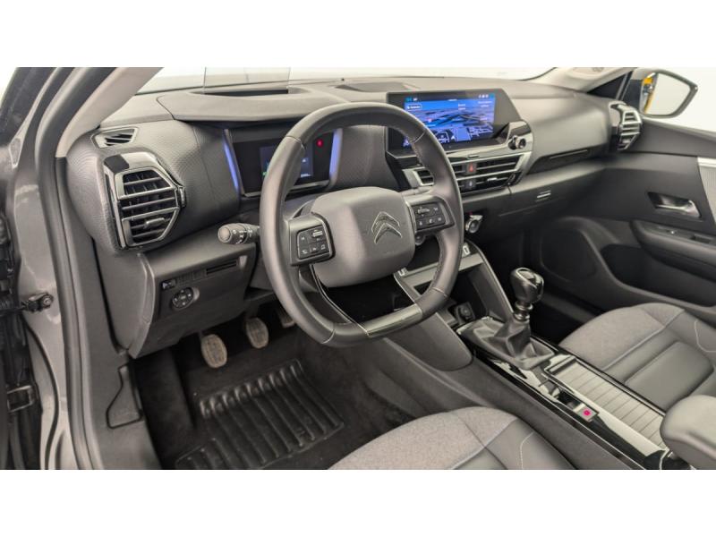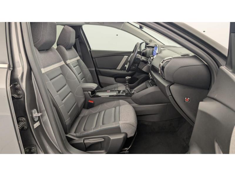 2 prises USB au rang 1 (1 type C + 1 type A)ABS avec REF, AFU et ESPAffichage tête haute couleurAide au démarrage en penteAide au stationnement ARAirbags frontaux AV, latéraux AV et rideauxAllumage automatique des feux de croisementBanquette AR fractionnable 2/3 - 1/3Caméra de reculClimatisation automatique bizoneCombiné numérique couleur avec rétro-éclairageCommutation automatique des feux de routeConsole centrale haute avec rangements et accoudoirCoques de rétroviseurs extérieurs Noir BrillantDétection de sous-gonflageEssuie-vitre AV automatique (capteur de pluie)Feux diurnes à LEDFrein de stationnement électrique automatiqueGarnissage textile effet cuir Noir/Tissu Gris Ambiance Metropolitan Grey + Sièges Advanced ComfortJantes alliage 18" AEROBLADE DiamantéesKit de dépannage provisoire de pneumatiquesKit Mains Libres BluetoothLève-vitres AV et AR électriques et séquentielsMy Citroën Drive Plus: navigation sur tablette tactile 10'' comprend le système de navigation 3D TomTom, la reconnaissance vocale avec langage naturel, l'interface personnalisableMy Citroën Play - Mirror Screen sans fils, compatible Android Auto et Apple CarPlay, Système audio numérique (DAB) MP3 6 HP,Tablette tactile 10"Pack Color Glossy Silver : Inserts autour des projecteurs antibrouillard et sur les protections de bas de caissePack Drive Assist Aide au stationnement AV et latéral, Commutation automatique des feux de route, Régulateur de vitesse adaptatif avec fonction Stop & Go,Système de surveillance d'angle mort : Système de surveillance d'angle mort Aide au stationnement AV AiPack Safety - Active Safety Brake - Alerte active de Franchissement Involontaire de Ligne - Alerte Attention Conducteur - Alerte Risque Collision - Coffee Break Alert - Reconnaissance des panneaux de vitesse et recommandation - Régulateur-limiteur de vitesse - Témoin de non-bouclage dePack Safety 2 : Reconnaissance étendue des panneaux Active Safety Brake 2.0Pack Style : Jonc chromé sur les lécheurs de vitres latérales Vitres et lunette AR surteintéesPlancher de coffre à 2 positionsPoignées de portes extérieures couleur caissePrise 12 V en rang 1Projecteurs antibrouillard LED avec éclairage statique d'intersectionProjecteurs LEDRétroviseur intérieur électrochromeRétroviseurs extérieurs électriques et dégivrantsRétroviseurs extérieurs rabattables électriquement avec éclairage accompagnementSiège conducteur avec réglage lombaire et accoudoirSiège conducteur réglable en hauteurSiège passager réglable en hauteurSièges Advanced ComfortSuspension Citroën Advanced ComfortSystème audio numérique (DAB) MP3 6 HPSystème Stop & StartTiroir de planche de bordVolant cuir pleine fleurVolant réglable en hauteur et en profondeur
