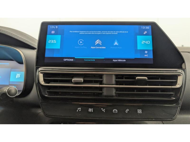 3 sièges AR indépendants, coulissants, inclinables et escamotablesABS + AFU + ESP + REFAccès et démarrage mains libresAccoudoir central moussé à ouverture papillon et réfrigéréAide au démarrage en penteAide au stationnement ARAide au stationnement AVAide au stationnement AV + Caméra de recul avec Top Rear VisionAirbags frontaux AV, latéraux AV et rideauxAllumage automatique des feux de croisementBarres de toit Noir Brillant avec insert Noir matCâble de recharge Mode 2, prise de charge T2/EF, longueur 6 mètresCalandre Noir Brillant avec chevrons noir brillant et entourage ChromeClimatisation automatique bi-zoneCombiné numérique 12,3" personnalisableCoques de rétroviseurs extérieurs Noir BrillantCustodes AR surteintéesDétection de sous-gonflageDirection à assistance électriqueEclairage d'accueil et d'accompagnementElargisseurs d'aile et bas de caisse Noir MatEnjoliveur de montant central Noir BrillantEnjoliveurs de contour de vitres latérales chromésEssuie-vitres AV automatique Magic WashFeux diurnes à LED avec clignotants à LEDFixations ISOFIX sur les sièges passager AV et latéraux ARFrein de stationnement électrique automatiqueGarnissage Alcantara Noir/Tissu effet cuir Noir/Ambiance Urban Black avec Sièges Advanced ComfortJantes alliage 18" PULSAR Diamantées bi-tonKit de dépannage provisoire des pneumatiquesKit mains libres Bluetooth et 3 prises USBLève-vitres AV et AR électriques et séquentielsMy Citroën Assist : Citroën Connect Box avec Pack SOS et assistance inclusMy Citroën Drive avec écran tactile 10" Comprend le système de navigation TomTom, la reconnaissance vocaleMy Citroën Play Hybrid avec tablette tactile 10"Pédalier et repose pieds aluminiumPack Color Dark Chrome : Inserts colorés Dark Chrome sur Airbump et bouclier AVPack Drive Assist : Reconnaissance des panneaux de vitesse Commutation automatique des feux de route Reconnaissance étendue des panneaux Régulateur de vitesse adaptatif avec fonction Stop&GoPack Safety + : Système de surveillance d'angle mort Active Safety Brake 2.0 Fonctionne à l'aide d'un Radar de 7 à 140 km/h, même de nuit et détecte les cyclistesPack Safety : Régulateur-limiteur de vitesse Coffee Break Alert Alerte Risque Collision Active Safety Brake fonctionne de 10 à 85 km/h et détecte les piétons Reconnaissance des panneaux de vitesse Alerte active de Franchissement Involontaire de lignePare-chocs AR avec double canule chroméePrises 12 V sur la console centrale et dans le coffreProjecteurs antibrouillard avec éclairage statique d'intersectionProjecteurs LEDRétroviseur intérieur électrochromeRétroviseurs extérieurs électriques dégivrantsRétroviseurs extérieurs rabattables électriquement avec éclairage d'accueilSécurité enfants mécaniqueSabots de protection Aluminium BrillantSiège conducteur avec réglage lombaire et accoudoirSièges Advanced ComfortSièges conducteur et passager réglables en hauteurSuspension Citroën Advanced ComfortSystème Stop & StartVitres et lunette AR surteintéesVitres latérales AV feuilletées et acoustiquesVolant croûte de cuirVolant réglable en hauteur et en profondeur