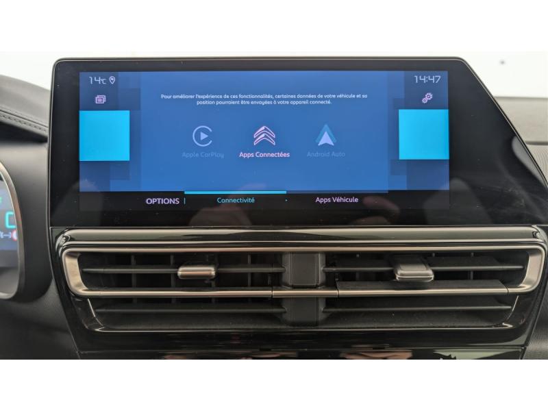 3 sièges AR indépendants, coulissants, inclinables et escamotablesABS + AFU + ESP + REFAccès et démarrage mains libresAide au stationnement ARAide au stationnement AV + Caméra de recul avec Top Rear Vision comprend les projecteurs antibrouillard avec éclairage statique d’intersectionAirbags frontaux AV, latéraux AV et rideauxAllumage automatique des feux de croisementBarres de toit Noir Brillant avec insert Noir matCâble de recharge Mode 2, prise de charge T2/EF, longueur 6 mètresCalandre supérieure Noir BrillantChargeur embarqué 3,7 kWClimatisation automatique bizoneCombiné numérique 12,3" personnalisableCustodes AR surteintéesDétection de sous-gonflageElargisseurs d'aile et bas de caisse Noir MatEnjoliveurs de contour de vitres latérales chromésEssuie-vitres AV automatique Magic WashFeux AR 3D à LEDFeux diurnes à LED avec clignotants à LEDFixations ISOFIX sur les sièges passager AV et latéraux ARFrein de stationnement électrique automatiqueGarnissage Cuir Grainé Noir/Tissu effect cuir Gris/Ambiance Metropolitan Black avec Sièges Advanced ComfortHighway Driver AssistJantes alliage 19" ART Diamantées bi-tonKit de dépannage provisoire des pneumatiquesKit mains libres Bluetooth et 3 prises USBLève-vitres AV et AR électriques et séquentielsMy Citroën Assist : Citroën Connect BoxMy Citroën Drive avec écran tactile 10" Comprend le système de navigation TomTom, la reconnaissance vocaleMy Citroën Play Hybrid avec tablette tactile 10"Pédalier et repose pieds aluminiumPack Color Dark Chrome : Inserts colorés Dark Chrome sur Airbump et bouclier AVPack Confort : Sièges AV chauffantsPack Drive Assist : Régulateur de vitessa adaptatifPack Safety - Active Safety Brake - Alerte active de Franchissement Involontaire de Ligne - Alerte Attention Conducteur - Alerte Risque Collision - Coffee Break Alert - Reconnaissance des panneaux de vitesse et recommandation - Régulateur-limiteur de vitesse - Témoin de non-bouclage dePrises 12 V sur la console centrale et dans le coffreProjecteurs LEDRétroviseur intérieur électrochromeRétroviseurs extérieurs électriques dégivrantsRétroviseurs extérieurs rabattables électriquement avec éclairage d'accueilSabots de protection Aluminium BrillantSiège conducteur électrique (8 voies)Siège conducteur avec réglage lombaireSièges conducteur et passager réglables en hauteurSuspension Citroën Advanced ComfortSystème Stop & StartVitres et lunette AR surteintéesVitres latérales AV feuilletées et acoustiquesVolant croûte de cuirVolant réglable en hauteur et en profondeur