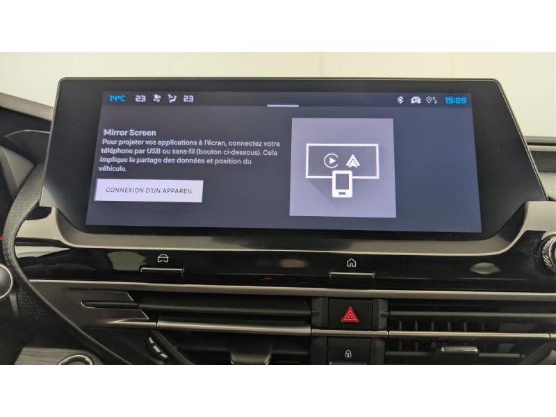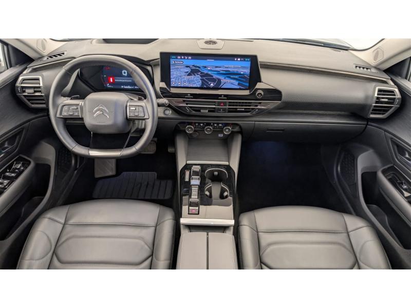 2 prises USB au rang 1 (type C) + 2 prises USB au rang 2 (type C)Aérateurs centraux en rang 2ABS + AFU + ESP + REFAccès et démarrage mains libres Proximity 2 Télécommandes 3 boutons (verrouillage, coffre et déverrouillage).Accoudoir central AR avec trappe à skisAide au démarrage en penteAide au stationnement ARAide au stationnement AVAirbags frontaux AV, latéraux AV et rideauxAllumage des feux de détresse en cas de forte décélérationAntenne requin noir brillantApple CarPlay et Android Auto sans filAppuie-têtes AV à réglage intégré (2 voies)Banquette AR fractionnable 2/3 - 1/3 avec Magic handlesBoîte à gants avec éclairage LEDBoîtier télématique: Appel d'urgence et Citroën AssistanceCaméra de recul avec Top Rear Vision Caméra de recul avec restitution de l'environnement AR du véhicule sur l'écran tactile grâce à une vue réelle AR et une vue réelle de dessusClignotants impulsionnelsClimatisation automatique bi-zoneCombiné numériqueCommandes au volant du système audioCommutation automatique des feux de routeCondamnation centralisée avec PLIPConsole centrale avec rangements et accoudoirCoques de rétroviseurs extérieurs Noir BrillantDétection de sous-gonflageDirection assistéeEclairage de cave à pieds AVEclairage intérieur d'ambiance Eclairage sous le bandeau de planche et sous la console centraleEnjoliveurs de bas de portes, passages de roues et bas de boucliers AV et AR en noir grainéExtended Head Up Display - Vision tête haute pare-brise couleur étendueFeux AR 3D à LED avec signature permanente visible de jourFeux diurnes à LEDFixations ISOFIX sur les deux places latéralesFrein de stationnement électrique automatiqueGarnissage Cuir Noir/Toile enduite Noire/Toile enduite Gris Nixon - Ambiance Metropolitan Grey + Sièges Advanced ComfortGrille de calandre inférieure noir grainé avec jonc chrome brillantHighway Driver Assist (système autonome de niveau 2) Aide au positionnement dans la voie, Alerte de trafic AR, Reconnaissance étendue des panneaux et recommandation de vitesse, Régulateur de vitesse adaptatif avec fonction Stop & Go, Surveillance d’angle mort longueJantes alliage 19" AeroX Black DiamondKit de dépannage provisoire de pneumatiquesKit mains libres BluetoothLève-vitres AV et AR électriques et séquentielsNavigation 3D sur écran central 12" tactile Comprend le système de navigation TomTom, lla reconnaissance vocale avec langage naturel, l’interface personnalisableNeutralisation mécanique de l'airbag passagerPack Safety - Active Safety Brake - Alerte active de Franchissement Involontaire de Ligne - Alerte Attention Conducteur - Alerte Risque Collision - Coffee Break Alert - Reconnaissance des panneaux de vitesse et recommandation - Régulateur-limiteur de vitesse - Témoin de non-bouclage dePack Visibilité Allumage automatique des feux de croisement, l'éclairage d'accueil et d'accompagnement et l'essuie-vitre AV automatique : Allumage automatique des feux de croisement Essuie-vitre AV automatique (capteur de pluie) Eclairage d'accueil et d'aPalette de changement de vitesse au volantPare-choc AR avec décors chromésPare-choc AV avec décors chromésPare-soleil avec miroir occultable éclairagés à LEDPied de rétroviseurs extérieurs noir grainéPlafonniers AV et AR à LED retro-éclairage pushPoche aumônière au dos des sièges AVPoignées de portes extérieures couleur caissePrédisposition filet de charges hautes rang 1Prise 12 V en rang 1Projecteurs antibrouillard LED avec éclairage statique d'intersectionProjecteurs LED avec signature lumineuse en VRétroviseur intérieur électrochrome framelessRétroviseurs extérieurs électriques, dégivrants, rabattables électriquement avec éclairage d'accueilRails de coffre en aluminiumRangement dépose Smartphone devant l'accoudoir centralRangement dans accoudoir AR central avec 2 empreintes canettesRangement fermé en AV de la console centraleRangement sous accoudoir centralRecharge sans fil pour smartphoneSécurité enfants mécaniqueSiège AV réglables en hauteurSiège conducteur avec réglage lombaireSuspension Citroën Advanced ComfortSystème audio numérique (DAB) MP3 8 HPTémoin de non-bouclage des ceintures de sécurité conducteur et passagervéhicule sans roue de secours ni kit de dépannageVitres et lunette AR surteintéesVolant chauffant en cuir pleine fleurVolant cuir avec commandes intégrées, réglable en hauteur et en profondeur