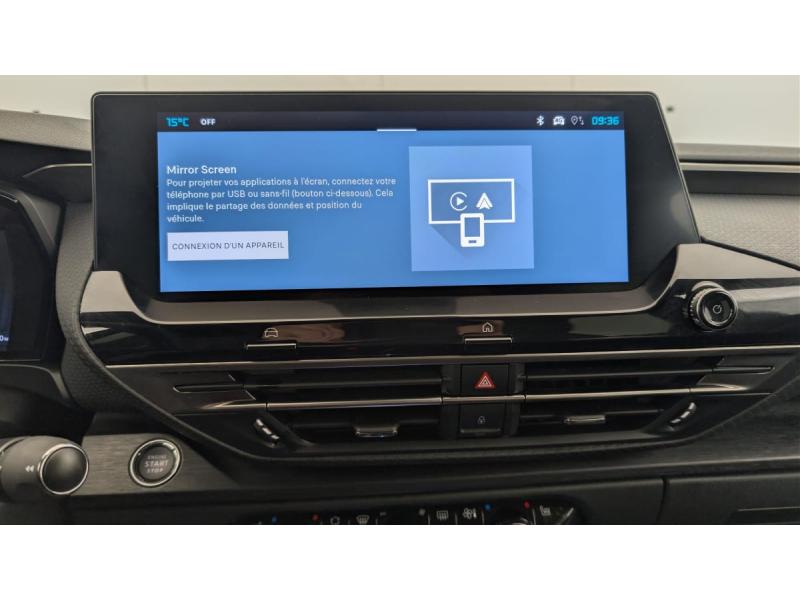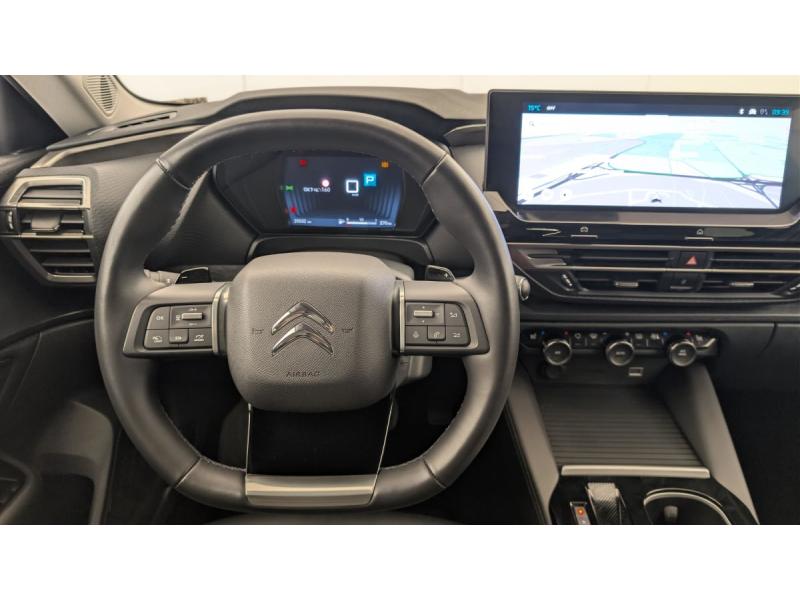 ABS + AFU + ESP + REFAccès et démarrage mains libresAccoudoir central ARAide au démarrage en penteAide au stationnement ARAide au stationnement AVAirbags frontaux AV, latéraux AV et rideauxApple CarPlay et Android Auto sans filBoîtier télématique: Appel d'urgenceCaméra de recul avec Top Rear Vision Caméra de recul avec restitution de l'environnement AR du véhicule sur l'écran tactile grâce à une vue réelle AR et une vue réelle de dessusClimatisation automatique bi-zoneCombiné numériqueCommutation automatique des feux de routeDétection de sous-gonflageEclairage intérieur d'ambiance Eclairage sous le bandeau de planche et sous la console centraleExtended Head Up Display - Vision tête haute pare-brise couleur étendueFeux diurnes à LEDFrein de stationnement électrique automatiqueGarnissage Cuir Noir/Toile enduite Noire/Toile enduite Gris Nixon - Ambiance Metropolitan Grey + Sièges Advanced ComfortHighway Driver Assist Aide au positionnement dans la voie, Alerte de trafic AR, Reconnaissance étendue des panneaux et recommandation de vitesse, Régulateur de vitesse adaptatif avec fonction Stop & Go, Surveillance d’angle mort longue distanceJantes alliage 19"Kit de dépannage provisoire de pneumatiquesLève-vitres AV et AR électriquesNavigation 3D sur écran central 12" tactile Comprend le système de navigation TomTomPack Safety: Alerte de Franchissement Involontaire de ligne (AFIL) Régulateur-limiteur de vitesse Coffee Break Alert Alerte attention conducteur Alerte Risque Collision Post Collision Safety Brake Active Safety Brake 2.0 Fonctionne à l'aide d'un Radar de 7 à 140 km/h, Pack Visibilité: Allumage automatique des feux de croisement Essuie-vitre AV automatique (capteur de pluie) Eclairage d'accueil et d'accompagnementPrise 12 V en rang 1Projecteurs antibrouillard LED avec éclairage statique d'intersectionProjecteurs LED avec signature lumineuse en VRégulateur de vitesse adaptatif avec fonction Stop & Go Comprend la reconnaissance étendue des panneaux.Rétroviseur intérieur électrochrome framelessRétroviseurs extérieurs électriques, dégivrants, rabattables électriquement avec éclairage d'accueilRecharge sans fil pour smartphoneSiège conducteur avec réglage lombaireSièges Advanced ComfortSièges passager réglable en hauteurSuspension Citroën Advanced ComfortVitres et lunette AR surteintéesVolant chauffant en cuir pleine fleurVolant cuir avec commandes intégrées, réglable en hauteur et en profondeur