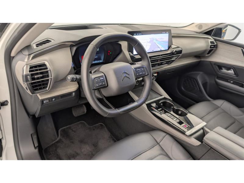 2 prises USB au rang 1 (type C) + 2 prises USB au rang 2 (type C)Aérateurs centraux en rang 2ABS + REF + AFUAccès et démarrage mains libres Proximity 2 Télécommandes 3 boutons (verrouillage, coffre et déverrouillage).Accoudoir central AR avec porte-gobelets intégré et trappe à skisActive Safety Brake 2.0Aide au démarrage en penteAide au stationnement ARAide au stationnement AVAirbags frontaux AV, latéraux AV et rideauxAlerte attention conducteurAlerte de Franchissement Involontaire de ligne (AFIL)Alerte Risque CollisionAllumage des feux de détresse en cas de forte décélérationAppuie-têtes AV à réglage intégré (4 voies)Bacs de rangement sur portes AV/ARBanquette AR fractionnable 2/3 - 1/3 avec Magic handlesBoite à gants avec éclairage LEDCaméra de recul avec Top Rear VisionClignotants impulsionnelsClimatisation automatique bi-zoneCombiné numérique couleur avec rétro-éclairageCommandes au volant du système audioCommutation automatique des feux de routeCondamnation centralisée avec 2 PLIP HFConnect Assist : Citroën Connect Box avec Pack SOS et assistance inclusConsole centrale haute avec rangements et accoudoirCoques de rétroviseurs extérieurs Noir BrillantDétection de sous-gonflageDirection à assistance électrique variableDirection assistéeEclairage à LED (boîte à gants, coffre et rangement console centrale)Eclairage de cave à pieds AVEclairage intérieur d'ambiance Eclairage sur le combiné, sous le bandeau de planche et sous la console centraleESPExtended Head Up Display - Vision tête haute pare-brise couleur étendueFeux AR 3D à LED avec signature permanente visible de jourFeux diurnes à LEDFixations ISOFIX aux places ARFrein de stationnement électrique automatiqueGrille de calandre inférieure noir grainé avec jonc chrome brillantHighway Driver Assist (système autonome de niveau 2) Aide au positionnement dans la voie, Alerte de trafic AR, Reconnaissance étendue des panneaux et recommandation de vitesse, Régulateur de vitesse adaptatif avec fonction Stop & Go, Surveillance d’angle mort longueJantes alliage 19" AeroX Black Diamond (205/55 R19)Kit de dépannage provisoire de pneumatiquesKit Mains Libres BluetoothLève-vitres AV et AR électriques et séquentielsMyCitroën Drive Plus comprend le système de navigation TomTomNeutralisation mécanique de l'airbag passagerPack Safety Brake 2.0 + Régulateur de vitesse adaptatif avec fonction Stop&Go : Reconnaissance étendue des panneaux Régulateur de vitesse adaptatif avec fonction Stop&Go Active Safety Brake 2.0Pack Visibilité : Allumage automatique des feux de croisement Eclairage d'accueil et d'accompagnement Essuie-vitre AV automatique avec lavage embarquéPalette de changement de vitesse au volantPare-choc AR avec décors chromésPare-choc AV avec décors chromésPare-soleils avec miroirs occultable éclairagés à LEDPlafonnier AV et AR avec LED retro-éclairage pushPoche aumônière au dos des sièges AVPoignées de portes extérieures couleur caissePrise 12 V dans le coffrePrise 12 V en rang 1Projecteurs antibrouillard LED avec éclairage statique d'intersectionProjecteurs LED avec signature lumineuse en VRétroviseur intérieur électrochrome framelessRétroviseurs ex.électriques, dégivrants, rabattabl élec. avec éclairage d’accueil et pied noir grainRails sur tapis de coffre en aluminiumRangement dépose Smartphone AV l'accoudoir centralRangement dans accoudoir AR central avec 2 empreintes canettesRangement fermé en AV de la console centraleRangement sous accoudoir centralRecharge sans fil pour smartphoneSécurité enfants mécaniqueSiège AV réglables en hauteurSiège conducteur avec réglage lombaireSiège passager avec réglage lombaireSuspension Citroën Advanced ComfortTémoin et alerte de non bouclage des ceintures conducteur et passagers AV et ARTablette tactile 12"Vitres et lunette AR surteintéesVolant chauffant en cuir pleine fleurVolant cuir grainé avec commandes intégrées, réglable en hauteur et en profondeur