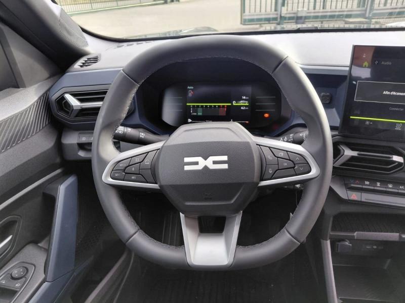 Airbag AV conducteur et passagerAirbag passager déconnectableAirbags latéraux AV et rideauxAlerte franchissement de ligne et assistant maintien dans la voieAllumage des feux automatique et essuie-glace automatiquesAppel SOS (E-call)Avertissement distance de sécuritéBanquette AR rabattable 40/60Barres de toit longitudinalesCaméra de reculClé à radiofréquenceClimatisation manuelleConsole centrale semi haute avec accoudoirContrôle de trajectoire en descente avancéDétection de perte de pression des pneusFeux de croisement à LEDJantes alliage 17"Lève-vitres AV / AR électriquesLunette AR dégivranteMedia Display (écran 10,1'',4 HP, réplication smartphone sans fil, services connectés)Mode écoRégulateur et limiteur de vitesseRépétiteurs latéraux à LEDRétroviseurs extérieurs réglables électriquement + dégivrantsRadars de reculReconnaissance des panneaux de signalisation avec alerte de survitesseSellerie spécifique "Denim" avec logo Dacia réflechissantSiège conducteur réglable en hauteur et profondeurSignature lumineuse en "Y" à LEDSystème anti-blocage des roues (ABS)Système de contrôle de traction (TCS)Système de fixation IsofixSystème de freinage d'urgence avancé (piéton, deux-roues et intersection)Système de surveillance de l'attention du conducteurTableau de bord numérique 7"Volant réglable en hauteur et en profondeurVolant Soft Feel