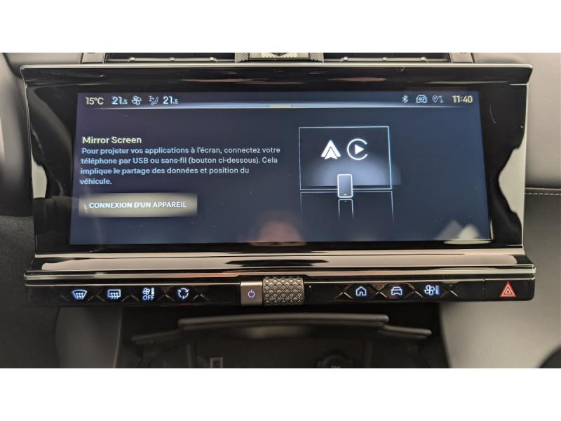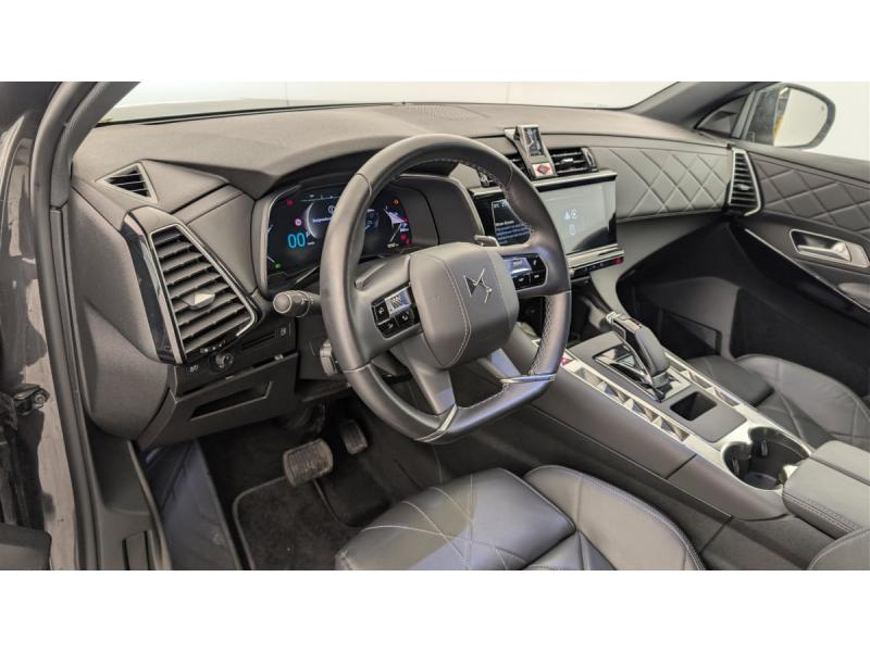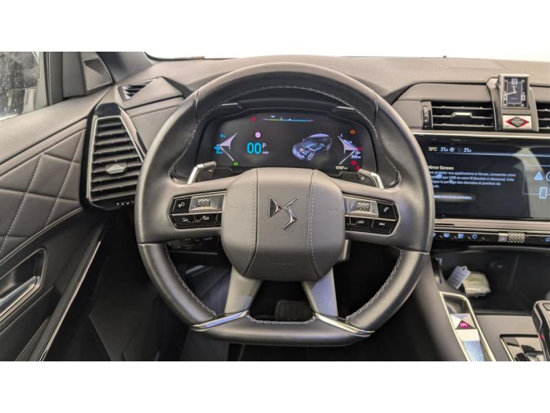 ABS avec répartiteur électronique de freinage (REF) et Aide au Freinage d'Urgence (AFU) + Aide au démarrage en penteAccès et démarrage mains libresAccoudoir central en Toile DS avec rangementAide au stationnement AV/AR et Caméra de reculAirbags frontaux (passager déconnectable), latéraux AV, rideaux AV/ARAlerte Attention ConducteurAlerte de franchissement involontaire de ligneAllumage automatique des feux Avec commutation automatique des feux de routeBanquette AR 2/3 - 1/3Barres de toit aluminiumClimatisation automatique bi-zoneCombiné numérique 12.3" HDContrôle électronique de stabilité de l'attelageContrôle dynamique de stabilité (ESP) avec antipatinage des roues (ASR)Détection de sous-gonflageDouble antennesDouble canule d'échappement chroméeDS ACTIVE SCAN SUSPENSIONDS IRIS SYSTEM Système d'infotainment personnalisable de dernière générationDS LIGHT VEIL Feux de jour à LEDDS PIXEL LED VISION 3.0Eclairage d'accueil et d'accompagnementEclairage d'ambiance à LEDEclairage de cave à pieds à LEDEcran tactile capacitif 12" HDEssuie-vitre AV à déclenchement et cadencement automatiques + Buses de lavageFeux AR 3D (traitement écailles) Avec indicateur de changement de direction défilantFixations ISOFIX à la place passager AV et aux places latérales AR Inclut TOP TEATHERFrein de stationnement électrique automatiqueFreinage d'urgence automatique piloté par caméra et radarIntérieur Cuir Noir Basalte : Pédalier et le repose-pied aluminium Vitres AR et lunette AR surteintées Surtapis AV/AR Accoudoir central AR Réglage du nez de coussin Sièges AV électriques Réglage électrique du siège, réglage lombaJantes alliage 19'' EDINBURGH, pneus 235/50 R19 VKit de dépannageLève-vitres AV/AR électriques, séquentiels et avec fonction antipincementMirror Screen sans fil via Wifi Compatible Apple CarPlay et Android AutoNavigation 3D ConnectéePalettes au volantPoignées extérieures couleur caisse avec insert chroméPrises 12 V 1 prise dans le rangement AV de la console centrale et 1 prise dans le coffrePrises USB 1 prise USB type C dans le rangement de la console centrale et 2 prises USB type A pour les passagers ARRégulateur/Limiteur de vitesseRétroviseur intérieur électrochrome sans cadreRétroviseurs extérieurs électriques dégivrants, rabattables électriquement Fonction électrochrome côté conducteur, Projection au sol du logo DS, Indexé à la marche AR côté passagerRétroviseurs extérieurs avec embase couleur caisse et coque noir brillantRadio numérique terrestre (DAB)Reconnaissance étendue des panneaux de signalisationSélecteur de mode de conduiteSabot AV chroméSOS & AssistanceSurveillance d'angles mortsVérins d'ouverture et de maintien du capot moteurVolant réglable en hauteur et profondeur