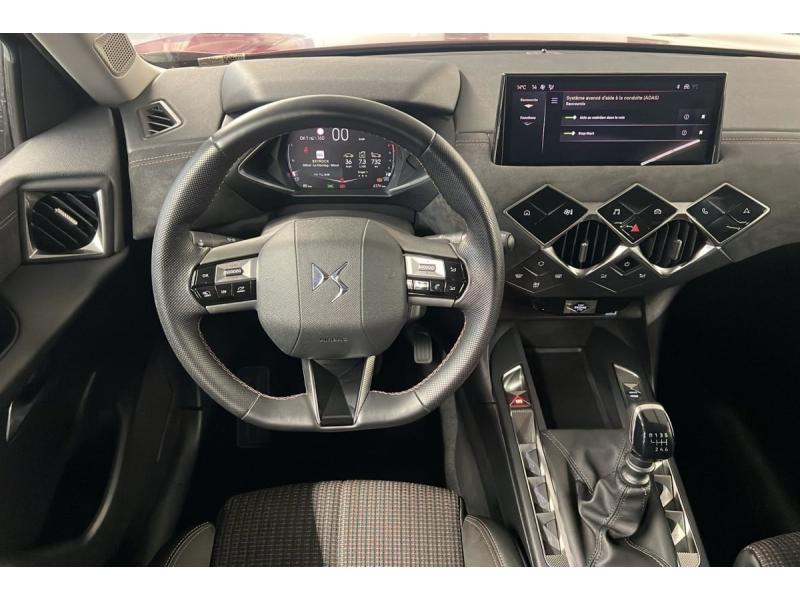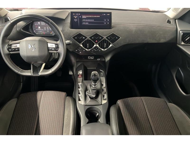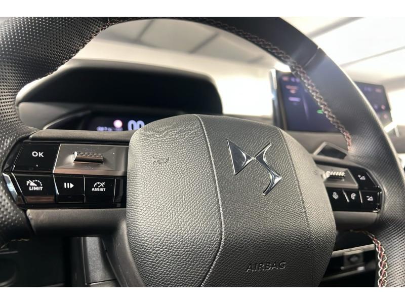 ABS, AFU, ESP, REFAccoudoir central AVAide au stationnement ARAirbags frontaux (passager déconnectable), latéraux AV et AR, rideaux AV et ARAlerte active de franchissement involontaire de ligneAllumage automatique des pharesBadge DS sur le capot et et Logo DS sur la calandre Logo DS Noir mat texturéBanquette AR 2/3 - 1/3Climatisation automatiqueCombiné numériqueCondamnation centraliséeContrôle dynamique de stabilité (ESP) avec antipatinage des roues (ASR)Démarrage mains-libresDétection de sous-gonflageDS Wings Noir BrillantEclairage d'accueil et d'accompagnementEclairage de cave à pieds à LEDEcran tactile capacitif 10,3" HDEnjoliveur de feux AR noir brillantEssuie-vitre AV à déclenchement et cadencement automatiquesFixations ISOFIX à la place passager AV et aux places latérales ARFrein de stationnement électrique automatiqueFreinage d'urgence automatique piloté par caméraGrille de calandre noir brillant avec pampilles noir brillantIntérieur Tissu tressé Basalte avec Alcantara : Planche de bord Alcantara Noir Ciel de pavillon Gris Galet Volant Cuir fleur perforé et coutures Or et Carmin Décor Alcantara Noir Siège Tissu Tressé Basalte avec AlcantaraJantes alliage 17" DUBLINJonc supérieur de volet Noir brillant avec lettrage 'DS AUTOMOBILES' en acier inoxydableKit de dépannage provisoire de pneumatiquesLécheurs de vitres invisiblesLève-vitres AV et AR électriques et séquentiels Antipincement côté conducteur et sécurité enfantLogo DS de calandre noir mat texturéLunette AR dégivranteMirror Screen sans fil via Wifi Compatible Apple CarPlay et Android AutoMonogrammes AR noir brillantPare-soleils avec miroirs de courtoisie occultables éclairés à LEDPoignées de portes affleurantesPrédisposition usine pour roue de secours accessoirePrise USB dans l'accoudoir centralPrise USB Data à l'AVPrises 12 VProjecteurs à LEDRégulateur/Limiteur de vitesseRéhausse manuelle de siège conducteurRéhausse manuelle du siège passagerRétroviseur intérieur électrochrome sans cadreRétroviseurs extérieurs électriques, dégivrants et rabattables électriquementRétroviseurs extérieurs avec embase et coque noir brillantRadio numérique terrestre (DAB)Reconnaissance des panneaux de signalisation et préconisationSièges AV confort Avec poche aumonièreVitres AR et lunette AR surteintéesVolant réglable en hauteur et profondeur