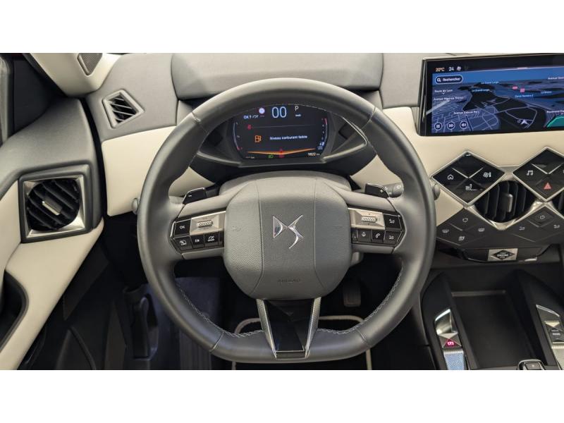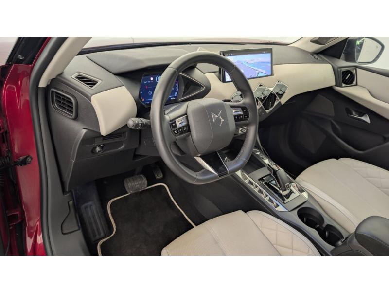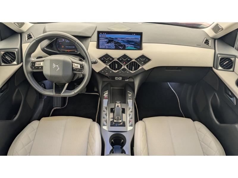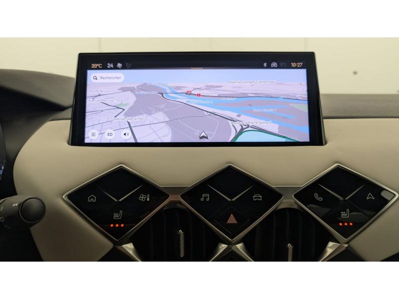 ABS avec répartiteur électronique de freinage (REF) et Aide au Freinage d'Urgence (AFU) et ESP + Aide au démarrage en penteAccès et démarrage mains libres ProximityAccoudoir central AVAdvanced Traction Control (Système de gestion de l'adhérence sur tout type de route)Airbags frontaux (passager déconnectable), latéraux AV et AR, rideaux AV et ARAlerte active de franchissement involontaire de ligneAllumage automatique des pharesBanquette AR 2/3 - 1/3Climatisation automatiqueCombiné numériqueCondamnation centraliséeContrôle dynamique de stabilité (ESP) avec antipatinage des roues (ASR)Détection de sous-gonflageDouble canule d'échappement chroméeDS IRIS SYSTEM avec Navigation 3D Connectée DS IRIS System intègre la Navigation ConnectéeEclairage d'accueil et d'accompagnementEclairage de cave à pieds à LEDEcran tactile capacitif 10,3" HDEssuie-vitre AV à déclenchement et cadencement automatiquesFeux AR à LEDFixations ISOFIX à la place passager AV et aux places latérales ARFrein de stationnement électrique automatiqueFreinage d'urgence automatique piloté par caméraIntérieur Tissu Luxembourg avec cuir Nappa Gris Galet : Ciel de pavillon Gris Galet Volant Cuir fleur Décor Toile DS Gris Galet confection diamant Siège Tissu Luxembourg avec Cuir Nappa Gris Galet Planche de bord en Cuir Nappa Gris GaletJantes alliage 18"kit anti crevaisonLève-vitres AV et AR électriques et séquentiels Antipincement côté conducteur et sécurité enfantMirror Screen sans fil via Wifi Compatible Apple CarPlay et Android AutoPalettes au volantPare-brise teinté et acoustiquePare-soleils avec miroirs de courtoisie occultables éclairés à LEDPoignées de portes affleurantesPrise USB dans l'accoudoir centralPrise USB Data à l'AVPrises 12 VProjecteurs à LEDRégulateur/Limiteur de vitesseRéhausse manuelle de siège conducteurRéhausse manuelle du siège passagerRétroviseurs extérieurs électriques, dégivrants et rabattables électriquementRadio numérique terrestre (DAB)Reconnaissance des panneaux de signalisation et préconisationSélecteur de mode de conduiteSièges AV chauffantsSOS & AssistanceVitres AR et lunette AR surteintéesVolant réglable en hauteur et profondeur