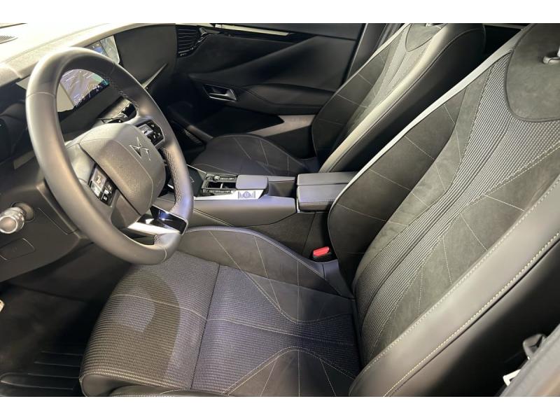 ABS avec répartiteur électronique de freinage (REF) et Aide au Freinage d'Urgence (AFU) Avec aide au démarrage en penteAccès et Démarrage mains libres Proximity Déverrouillage et déploiement automatique des poignées de portes affleurantes à l'approche du véhiculeAccoudoir central AR avec trappe à ski et 2 porte-gobeletsAccoudoir central AV Avec grand rangement réfrigéré et éclairéAide au stationnement AV et AR et Caméra de reculAirbags frontaux (passager déconnectable), latéraux AV, rideaux aux places AV/AR et central entre les places AVAlerte attention conducteurAlerte de franchissement involontaire de ligne Désactivable via l'écran tactileAllumage automatique des feuxAnneaux d'arrimage dans le coffre (x4)Antenne "aileron de requin" Antenne noir brillantAvertisseur de risque de collisionBanquette AR 2/3 - 1/3 avec 3 appuie-têteBanquette AR avec trappe à skisBoîte à gants floquéeCabochons d'écrous de roue noir brillantCapot actifCentre de roues NoirClean Cabin avec Air Quality SystemClimatisation automatique bizone 3 modes de diffusion Soft / Normal / Fast. Mode Monozone. Fonction Quick Launch via bouton dédié : froid ou chaud rapide selon la température extérieure. Aérateurs aux places ARCombiné numérique 7"Condamnation automatique des portes et du coffre en roulantConsole centrale avec rangement fermé Avec dépose-téléphone et 2 porte-gobeletsContrôle dynamique de stabilité (ESP) avec antipatinage des roues (ASR) + Contrôle de stabilité de l'attelageCoques de rétroviseurs extérieurs noir brillantDétection de sous-gonflageDiffuseur AR noir brillantDS AIR (Aérateurs centraux invisibles avec sabre chrome)DS e-toggle (Sélecteur de vitesses)DS EXTENDED HEAD UP DISPLAY Affichage tete haute étenduDS IRIS SYSTEM Navigation connectée, intégrant un assistant personnel et reconnaissance vocale, avec ChatGPT. Information trafic en temps réel, prix des carburants, parkings et Zones de Danger. 3 ans de services connectés inclusDS MATRIX LED VISION Intègre les technologies Matrix Beam et l'éclairage dynamique en courbe. Grâce aux cinq modes préétablis (ville, campagne, autoroute, météo difficile et brouillard), roulez en pleins phares sans éblouir les autres automDS SMART TOUCHDS Wings noir brillantEclairage d'ambiance à LED Personnalisable avec 8 couleurs sur les panneaux de portes AV, la planche de bord et le repose paumeEclairage de boîte à gants, d'accoudoir central AV et de coffre à LEDEclairage de cave à pieds à LEDEcran tactile capacitif 10" HDEnjoliveurs de bas de porte noirs avec insert chroméEnjoliveurs supérieurs des vitres latérales chromésEssuie-vitre AREssuie-vitre AV à déclenchement et cadencement automatiques + Buses de lavageFeux AR Full LED effet 3D avec traitement écaillesFixations ISOFIX aux places latérales AR Inclut un point d'ancrage TOP TETHERFrein de stationnement électrique automatiqueFreinage d'urgence automatique piloté par caméra et radarFreinage multi-collisionGrille de calandre noir brillant avec pampilles chroméesIntérieur Alcantara Noir : Planche de bord en Alcantara Ciel de pavillon clair Sellerie en Tissu Tressé Basalte avec Alcantara et toile DS Décors de panneaux de porte Chrome guilloché Volant cuir Fleur Mistral Console en toile DS Noir Basalte Panneaux de porte en AlcantaJantes alliage 19" SEVILLAJonc de volet chroméKit de dépannage provisoire de pneumatiquesLécheurs de vitres latérales et enjoliveur de custode noir brillantLève-vitres AV et AR électriques, séquentiels et antipincementLimiteur / Régulateur de vitesseLunette AR chauffanteMirror Screen sans fil via Wifi Compatible Apple CarPlay et Android AutoMonogramme DS chromé sur l'enjoliveur de custode latéralMonogramme extérieur ÉTOILE sur le capotMonogrammes AV/AR chromésPédalier en aluminiumPack sièges électriques Le réglage lombaires pneumatique. Le siège conducteur électrique à 10 voies avec mémoire de position, nez de coussin réglable mécaniquement et fonction accueil. Le siège passager électrique à Palettes au volantPare-brise teinté acoustiquePare-soleil avec miroirs de courtoisie occultables éclairés à LEDPlafonnier I-Dome tactile Liseuses iDome à commandes tactiles à l'ARPoignées extérieures affleurantes chroméesPréconditionnement thermique de l'habitacle programmable par smartphone Via MyDS AppPrédisposition pour roue de secours galettePrises 12 V 1 prise AV et 1 prise dans le coffrePrises USB 1 prise USB-C sous l'accoudoir central AV, 1 prise USB-C dans la console et 2 prises USB-C pour les passagers ARRégulateur de vitesse adaptatif et Pack Détection trafic AR Avec l'Adaptive Cruise Control Stop & Go. Le Pack Détection Trafic AR comprend l'Alerte de Trafic AR ainsi que la Surveillance d'Angle Mort Longue Distance : Adaptive Cruise Control Stop & Go SurRétroviseur intérieur électrochrome sans cadreRétroviseurs extérieurs électriques, dégivrants, rabattables électriquement Avec éclairage d'accueilRadio numérique terrestre (DAB)Reconnaissance étendue des panneaux de circulationSécurité Enfants Sécurité mécaniqueSeuil de portes AVSièges AV avec mousse haute densitéSOS & AssistanceSurtapis AV/ARVérins d'ouverture et de maintien du capot moteurVitres AR et lunette AR surteintéesVitres latérales AV et AR feuilletées et acoustiquesVolant réglable en hauteur et profondeur
