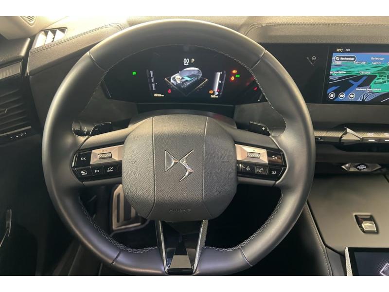 ABS avec répartiteur électronique de freinage (REF) et Aide au Freinage d'Urgence (AFU) Avec aide au démarrage en penteAccès et Démarrage mains libres Proximity Déverrouillage et déploiement automatique des poignées de portes affleurantes à l'approche du véhiculeAccoudoir central AR avec 2 porte-gobeletsAccoudoir central AV Avec grand rangement & éclairéAide au stationnement AV et AR et Caméra de reculAirbags frontaux (passager déconnectable), latéraux AV, rideaux aux places AV/AR et central entre les places AVAlerte attention conducteurAlerte de franchissement involontaire de ligne Désactivable via l'écran tactileAllumage automatique des feuxAntenne "aileron de requin" Antenne noir brillantAvertisseur de risque de collisionBanquette AR 2/3 - 1/3 avec 3 appuie-têteClean Cabin avec "Air Quality System"Climatisation automatique bizone 3 modes de diffusion Soft / Normal / Fast. Mode Monozone. Fonction Quick Launch via bouton dédié : froid ou chaud rapide selon la température extérieure. Aérateurs aux places ARCombiné numérique 7"Condamnation automatique des portes et du coffre en roulantConsole centrale avec rangement fermé Avec dépose-téléphone et 2 porte-gobeletsContrôle dynamique de stabilité (ESP) avec antipatinage des roues (ASR) + Contrôle de stabilité de l'attelageDétection de sous-gonflageDS E-Toggle (Sélecteur de vitesses)DS EXTENDED HEAD UP DISPLAY Affichage tete haute étenduDS IRIS SYSTEM Navigation connectée, intégrant un assistant personnel et reconnaissance vocale, avec ChatGPT. Information trafic en temps réel, prix des carburants, parkings et Zones de Danger. 3 ans de services connectés inclusDS MATRIX LED VISION Intègre les technologies Matrix Beam et l'éclairage dynamique en courbe. Grâce aux cinq modes préétablis (ville, campagne, autoroute, météo difficile et brouillard), roulez en pleins phares sans éblouir les autres automEclairage d'ambiance à LED Personnalisable avec 8 couleurs sur les panneaux de portes AV, la planche de bord et le repose paumeEclairage de boîte à gants, d'accoudoir central AV et de coffre à LEDEclairage de cave à pieds à LEDEcran tactile capacitif 10" HDEssuie-vitre AREssuie-vitre AV à déclenchement et cadencement automatiques + Buses de lavageFeux AR Full LED effet 3D avec traitement écaillesFixations ISOFIX aux places latérales AR Inclut un point d'ancrage TOP TETHERFrein de stationnement électrique automatiqueFreinage d'urgence automatique piloté par caméra et radarIntérieur Alcantara Noir : Planche de bord en Alcantara Ciel de pavillon clair Décors de panneaux de porte Chrome guilloché Volant cuir Fleur Mistral Console en toile DS Noir Basalte Panneaux de porte en Alcantara et Toile DS Noir Basalte Sellerie en Tissu Tressé BasalteJantes alliage 19" SEVILLAKit de dépannage provisoire de pneumatiquesLève-vitres AV/AR électriques, séquentiels et antipincementMirror Screen sans fil via Wifi Compatible Apple CarPlay et Android AutoPédalier en aluminiumPack sièges électriques : Réglage lombaire pneumatique Siège conducteur électrique à 10 voies avec mémoire de position, nez de coussin réglable mécaniquement et fonction accueil Siège passager électrique à 6 voiesPalettes au volantPare-brise teinté acoustiquePare-soleil avec miroirs de courtoisie occultables éclairés à LEDRégulateur de vitesse adaptatif et Pack Détection : Adaptive Cruise Control Stop & Go Surveillance d'angles morts longue distance Alerte de Trafic ARRétroviseur intérieur électrochrome sans cadreRétroviseurs extérieurs électriques, dégivrants, rabattables électriquement Avec éclairage d'accueilRadio numérique terrestre (DAB)Reconnaissance étendue des panneaux de circulationSOSVitres AR et lunette AR surteintéesVitres latérales AV/AR feuilletées et acoustiquesVolant réglable en hauteur et profondeur