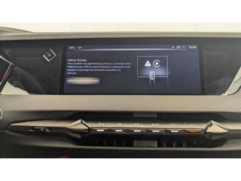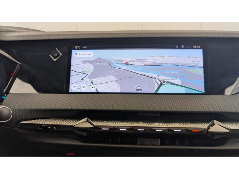 ABS avec répartiteur électronique de freinage (REF) et Aide au Freinage d'Urgence (AFU) + Aide au démarrage en penteAccès et démarrage mains libres ProximityAccoudoir central ARAccoudoir central AVAide au stationnement AV et AR et Caméra de reculAirbags frontaux (passager déconnectable), latéraux AV, rideaux aux places AV/AR et central entre les places AVAllumage automatique des feuxAvertisseur de risque de collisionBanquette AR 2/3 - 1/3 avec 3 appuie-têteClean Cabin avec Air Quality SystemClimatisation automatique bi-zoneCombiné numérique 7"Commutation automatique des feuxCondamnation automatique des portes et du coffre en roulantContrôle dynamique de stabilité (ESP) avec antipatinage des roues (ASR) + Contrôle de stabilité de l'attelageDétection de sous-gonflageDS Drive Assist et Pack Détection Trafic AR : Surveillance d'angles morts longue distance Alerte de Trafic ARDS e-toggle (Sélecteur de vitesses)DS EXTENDED HEAD UP DISPLAY Affichage tete haute étenduDS IRIS SYSTEMDS MATRIX LED VISIONEclairage d'ambiance à LEDEclairage de boîte à gants et de coffre à LEDEclairage de cave à pieds à LEDEcran tactile capacitif 10" HDEssuie-vitre AV à déclenchement et cadencement automatiques + Buses de lavageFeux AR Full LED effet 3D avec traitement écaillesFixations ISOFIX à la place passager AV et aux places latérales ARFrein de stationnement électrique automatiqueFreinage d'urgence automatique piloté par caméra et radarIntérieur Cuir grainé Noir Basalte et Toile DS : Ciel de pavillon clair Décors de panneaux de porte Chrome guilloché Volant en cuir fleur Mistral Console centrale en Toile DS Mistral Planche de bord en toile DS Noir Basalte façon écaille Panneaux de portes Jantes alliage 19" SEVILLAKit de dépannage provisoire de pneumatiquesLève-vitres AV/AR électriques, séquentiels et antipincementMirror Screen sans fil via Wifi Compatible Apple CarPlay et Android AutoPack Sièges mécaniques avec réglages lombaires conducteur et passagerPalettes au volantPare-brise teinté acoustiquePare-soleil avec miroirs de courtoisie occultables éclairés à LEDRégulateur/Limiteur de vitesse adaptatifRétroviseur intérieur électrochrome sans cadreRétroviseurs extérieurs électriques, dégivrants, rabattables électriquement Avec éclairage d'accueilRadio numérique terrestre (DAB) Inclut le BluetoothReconnaissance des panneaux de vitesse et préconisationSOSVitres AR et lunette AR surteintéesVolant réglable en hauteur et profondeur