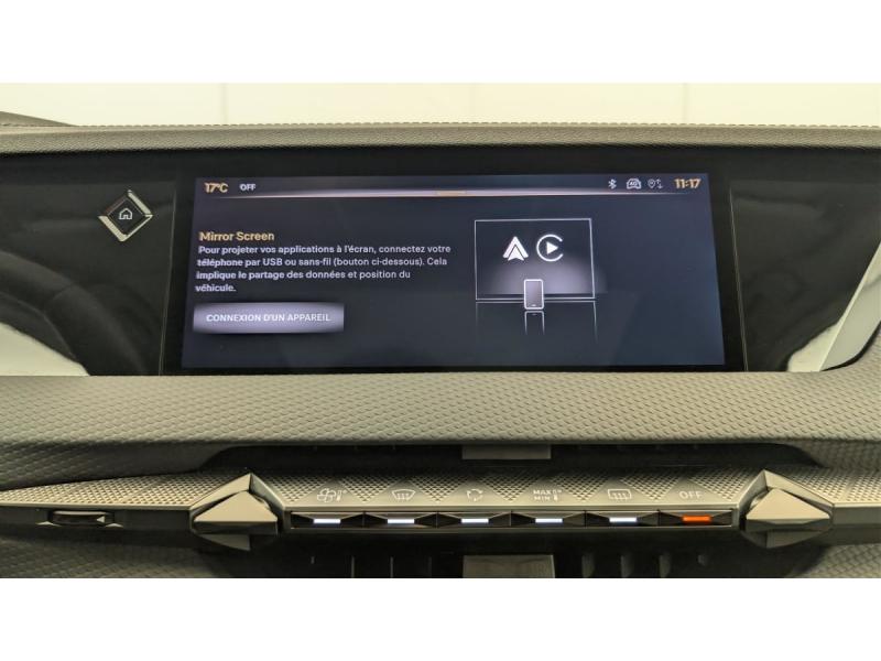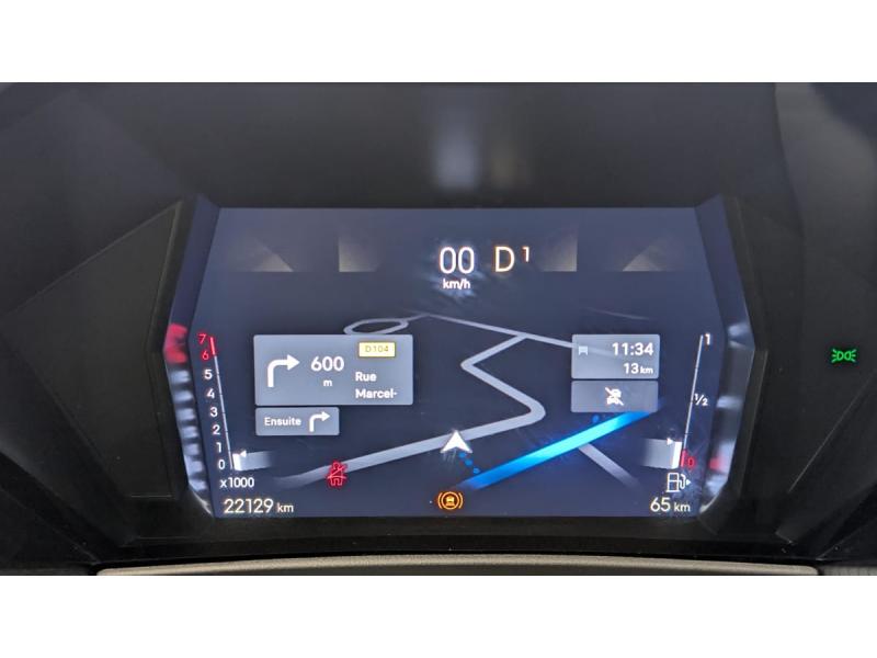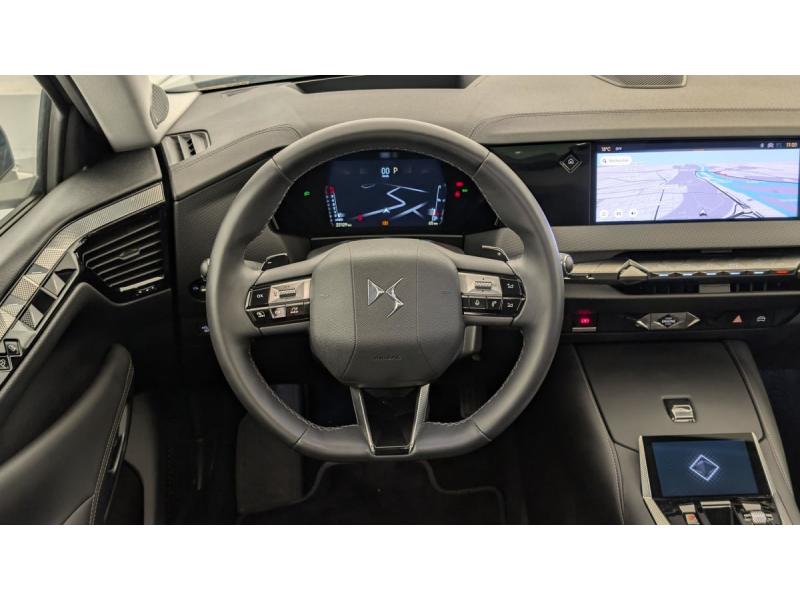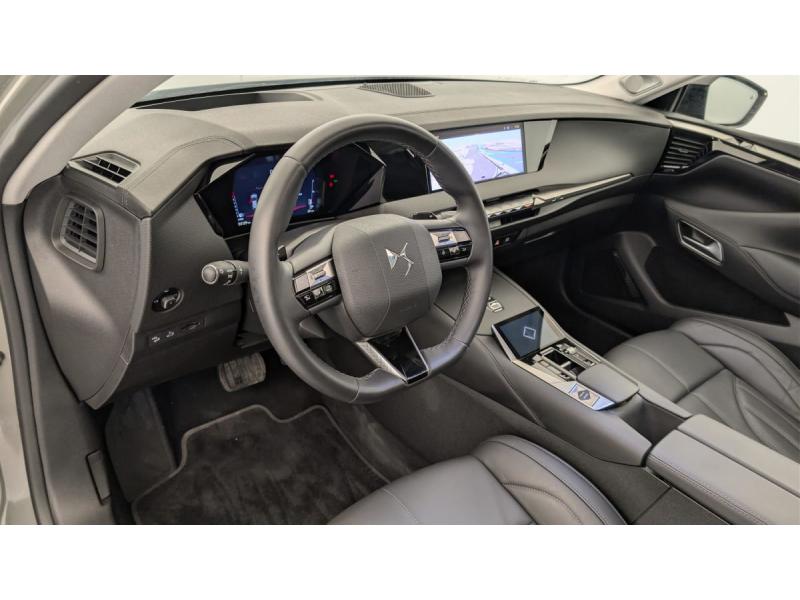 ABS avec répartiteur électronique de freinage (REF) et Aide au Freinage d'Urgence (AFU) + Aide au démarrage en penteAccès et démarrage mains libres ProximityAccoudoir central ARAccoudoir central AVAllumage automatique des feuxBanquette AR 2/3 - 1/3 avec 3 appuie-têteClean Cabin avec Air Quality SystemClimatisation automatique bi-zoneCombiné numérique 7"Commutation automatique des feuxCondamnation automatique des portes et du coffre en roulantConsole centrale avec rangement ferméContrôle dynamique de stabilité (ESP) avec antipatinage des roues (ASR) + Contrôle de stabilité de l'attelageDétection de sous-gonflageDS Drive Assist et Pack Détection Trafic AR : Surveillance d'angles morts longue distance Alerte de Trafic AR Freinage d'urgence automatique piloté par caméra et radar Adaptive Cruise Control Stop & GoDS e-toggle (Sélecteur de vitesses)DS EXTENDED HEAD UP DISPLAYDS IRIS SYSTEMDS MATRIX LED VISIONEclairage d'ambiance à LEDEclairage de boîte à gants, d'accoudoir central AV et de coffre à LEDEclairage de cave à pieds à LEDEcran tactile capacitif 10" HDEssuie-vitre AV à déclenchement et cadencement automatiques + Buses de lavageFeux AR Full LED effet 3D avec traitement écaillesFixations ISOFIX à la place passager AV et aux places latérales ARFrein de stationnement électrique automatiqueFreinage d'urgence automatique piloté par caméra et radarIntérieur Cuir grainé Noir Basalte : Sellerie en Cuir grainé Noir Basalte Décors de panneaux de porte Chrome guilloché Volant en cuir fleur Mistral Console centrale en Toile DS Mistral Planche de bord en toile DS Noir Basalte façon écaille Panneaux dJantes alliage 19"Kit de dépannage provisoire de pneumatiquesLève-vitres AV/AR électriques, séquentiels et antipincementMirror Screen sans fil via Wifi Compatible Apple CarPlay et Android AutoPalettes au volantPare-brise teinté acoustiquePare-soleil avec miroirs de courtoisie occultables éclairés à LEDRétroviseur intérieur électrochrome sans cadreRadio numérique terrestre (DAB) Inclut le BluetoothReconnaissance des panneaux de vitesse et préconisationSOSVitres AR et lunette AR surteintéesVolant réglable en hauteur et profondeur