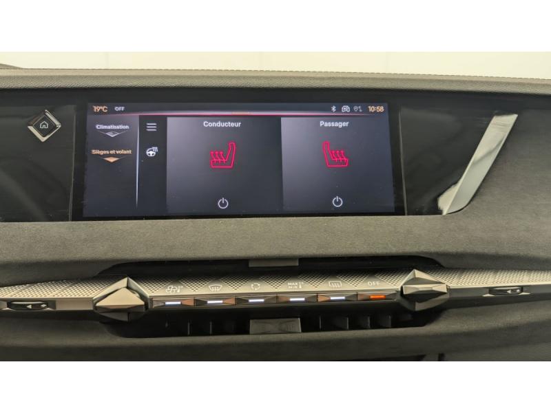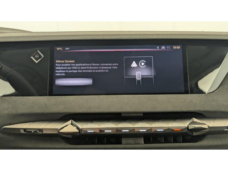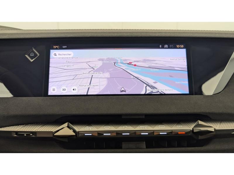 ABS avec répartiteur électronique de freinage (REF) et Aide au Freinage d'Urgence (AFU) + Aide au démarrage en penteAccès et démarrage mains libres ProximityAccoudoir central AR avec 2 porte-gobeletsAdaptive Cruise Control Stop&GoAide au stationnement AV/AR avec Caméra de reculAirbags frontaux (passager déconnectable), latéraux AV, rideaux aux places AV/AR et central entre les places AVAlerte Attention ConducteurAlerte de franchissement involontaire de ligneAllumage automatique des feuxAvertisseur de risque de collisionBanquette AR 2/3 - 1/3 avec 3 appuie-têteBoîte à gantsClimatisation automatique bi-zoneCombiné numérique 7"Condamnation automatique des portes et du coffre en roulantContrôle dynamique de stabilité (ESP) avec antipatinage des roues (ASR) + Contrôle de stabilité de l'attelageDétection de sous-gonflageDS EXTENDED HEAD UP DISPLAYDS IRIS SYSTEMDS MATRIX LED VISIONEclairage d'ambiance à LEDEclairage de boîte à gants, d'accoudoir central AV et de coffre à LEDEclairage de cave à pieds à LEDEcran tactile capacitif 10" HDEssuie-vitre AV à déclenchement et cadencement automatiques + Buses de lavageFeux AR Full LED effet 3D avec traitement écaillesFixations ISOFIX à la place passager AV et aux places latérales ARFrein de stationnement électrique automatiqueFreinage d'urgence automatique piloté par caméra et radarIntérieur Tissu Tressé Basalte avec Alcantara : Planche de bord en alcantara Panneaux de portes en alcantara Console centrale en alcantara Sellerie en Tissu Tressé Basalte avec Alcantara et toile DS Décors de panneaux de porte Chrome guilloché Volant en cuir fleurJantes alliage 19" MINNEAPOLISKit de dépannage provisoire de pneumatiquesLève-vitres AV/AR électriques, séquentiels et antipincementLunette AR chauffanteMirror Screen sans fil via Wifi Compatible Apple CarPlay et Android AutoPack Style : Pédalier en aluminium Vitres AR et lunette AR surteintéesPalettes au volantPare-brise teinté acoustiquePare-soleil avec miroirs de courtoisie occultables éclairés à LEDRétroviseur intérieur électrochrome sans cadreRétroviseurs extérieurs électriques, dégivrants, rabattables électriquement Avec éclairage d'accueilRadio numérique terrestre (DAB) Inclut le BluetoothReconnaissance étendue des panneaux de circulationReconnaissance des panneaux de vitesse et préconisationVitres AR et lunette AR surteintéesVolant réglable en hauteur et profondeur