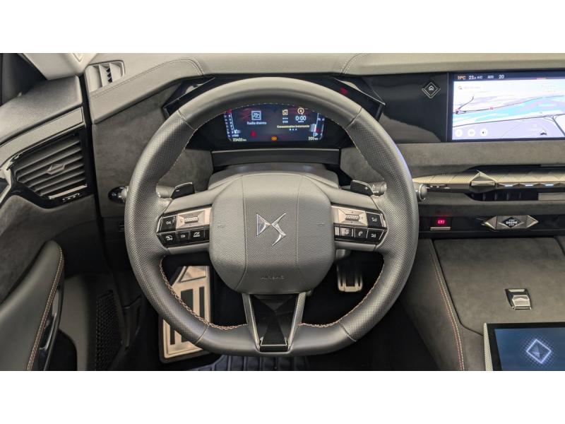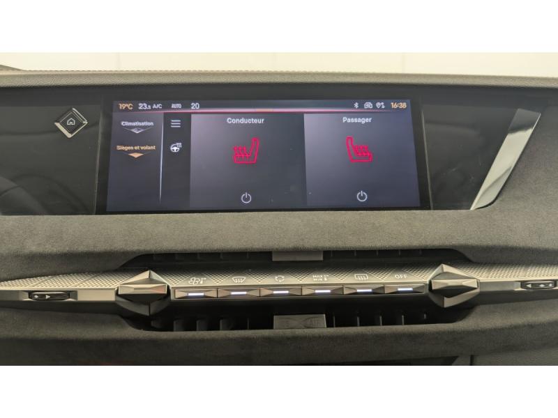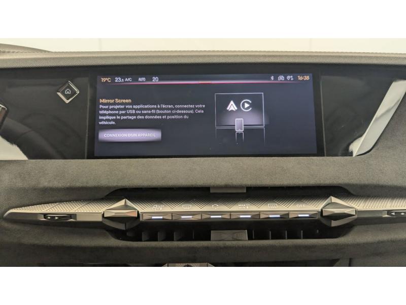 ABS avec répartiteur électronique de freinage (REF) et Aide au Freinage d'Urgence (AFU) + Aide au démarrage en penteAccès et démarrage mains libres ProximityAccoudoir central AR avec 2 porte-gobeletsAdaptive Cruise Control Stop&GoAide au stationnement AV/AR avec Caméra de reculAirbags frontaux (passager déconnectable), latéraux AV, rideaux aux places AV/AR et central entre les places AVAlerte Attention ConducteurAlerte de franchissement involontaire de ligneAllumage automatique des feuxAvertisseur de risque de collisionBanquette AR 2/3 - 1/3 avec 3 appuie-têteBoîte à gantsClimatisation automatique bi-zoneCombiné numérique 7"Condamnation automatique des portes et du coffre en roulantContrôle dynamique de stabilité (ESP) avec antipatinage des roues (ASR) + Contrôle de stabilité de l'attelageDétection de sous-gonflageDS EXTENDED HEAD UP DISPLAYDS IRIS SYSTEMDS MATRIX LED VISIONEclairage d'ambiance à LEDEclairage de boîte à gants, d'accoudoir central AV et de coffre à LEDEclairage de cave à pieds à LEDEcran tactile capacitif 10" HDEssuie-vitre AV à déclenchement et cadencement automatiques + Buses de lavageFeux AR Full LED effet 3D avec traitement écaillesFixations ISOFIX à la place passager AV et aux places latérales ARFrein de stationnement électrique automatiqueFreinage d'urgence automatique piloté par caméra et radarIntérieur Tissu Tressé Basalte avec Alcantara : Planche de bord en alcantara Panneaux de portes en alcantara Console centrale en alcantara Sellerie en Tissu Tressé Basalte avec Alcantara et toile DS Décors de panneaux de porte Chrome guilloché Volant en cuir fleurJantes alliage 19" MINNEAPOLISKit de dépannage provisoire de pneumatiquesLève-vitres AV/AR électriques, séquentiels et antipincementLunette AR chauffanteMirror Screen sans fil via Wifi Compatible Apple CarPlay et Android AutoPack Style : Pédalier en aluminium Vitres AR et lunette AR surteintéesPalettes au volantPare-brise teinté acoustiquePare-soleil avec miroirs de courtoisie occultables éclairés à LEDRétroviseur intérieur électrochrome sans cadreRétroviseurs extérieurs électriques, dégivrants, rabattables électriquement Avec éclairage d'accueilRadio numérique terrestre (DAB) Inclut le BluetoothReconnaissance étendue des panneaux de circulationReconnaissance des panneaux de vitesse et préconisationVitres AR et lunette AR surteintéesVolant réglable en hauteur et profondeur
