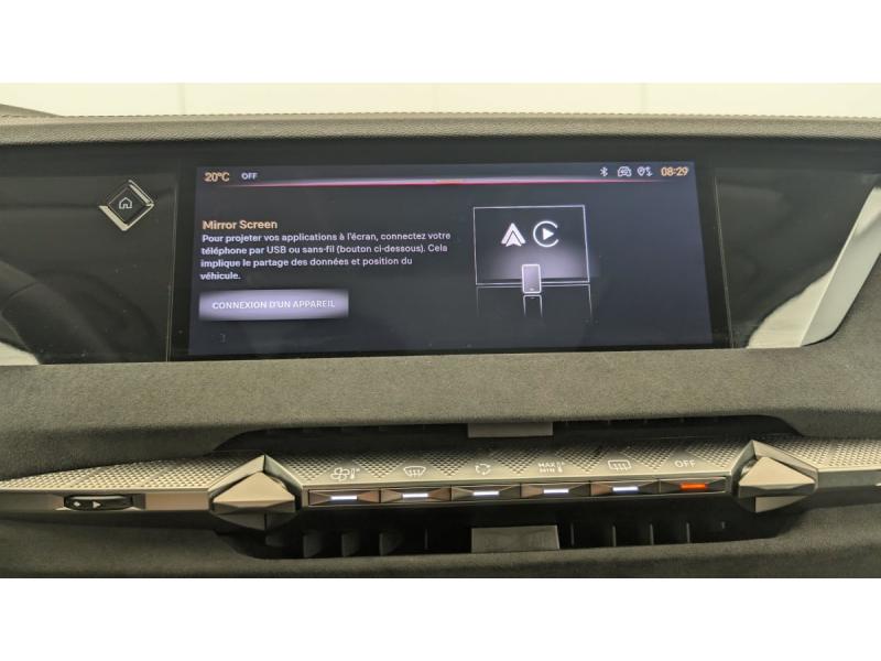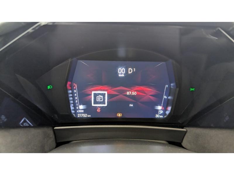 ABS avec répartiteur électronique de freinage (REF) et Aide au Freinage d'Urgence (AFU) + Aide au démarrage en penteAccès et démarrage mains libres ProximityAccoudoir central AR avec 2 porte-gobeletsAdaptive Cruise Control Stop&GoAide au stationnement AV/AR avec Caméra de reculAirbags frontaux (passager déconnectable), latéraux AV, rideaux aux places AV/AR et central entre les places AVAlerte Attention ConducteurAlerte de franchissement involontaire de ligneAllumage automatique des feuxAvertisseur de risque de collisionBanquette AR 2/3 - 1/3 avec 3 appuie-têteBoîte à gantsClimatisation automatique bi-zoneCombiné numérique 7"Condamnation automatique des portes et du coffre en roulantContrôle dynamique de stabilité (ESP) avec antipatinage des roues (ASR) + Contrôle de stabilité de l'attelageDétection de sous-gonflageDS EXTENDED HEAD UP DISPLAYDS IRIS SYSTEMDS MATRIX LED VISIONEclairage d'ambiance à LEDEclairage de boîte à gants, d'accoudoir central AV et de coffre à LEDEclairage de cave à pieds à LEDEcran tactile capacitif 10" HDEssuie-vitre AV à déclenchement et cadencement automatiques + Buses de lavageFeux AR Full LED effet 3D avec traitement écaillesFixations ISOFIX à la place passager AV et aux places latérales ARFrein de stationnement électrique automatiqueFreinage d'urgence automatique piloté par caméra et radarIntérieur Tissu Tressé Basalte avec Alcantara : Planche de bord en alcantara Panneaux de portes en alcantara Console centrale en alcantara Sellerie en Tissu Tressé Basalte avec Alcantara et toile DS Décors de panneaux de porte Chrome guilloché Volant en cuir fleurJantes alliage 19" MINNEAPOLISKit de dépannage provisoire de pneumatiquesLève-vitres AV/AR électriques, séquentiels et antipincementLunette AR chauffanteMirror Screen sans fil via Wifi Compatible Apple CarPlay et Android AutoPack Style : Pédalier en aluminium Vitres AR et lunette AR surteintéesPalettes au volantPare-brise teinté acoustiquePare-soleil avec miroirs de courtoisie occultables éclairés à LEDRétroviseur intérieur électrochrome sans cadreRétroviseurs extérieurs électriques, dégivrants, rabattables électriquement Avec éclairage d'accueilRadio numérique terrestre (DAB) Inclut le BluetoothReconnaissance étendue des panneaux de circulationReconnaissance des panneaux de vitesse et préconisationVitres AR et lunette AR surteintéesVolant réglable en hauteur et profondeur