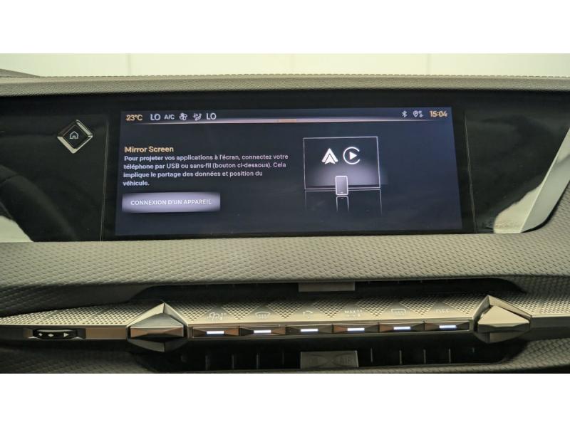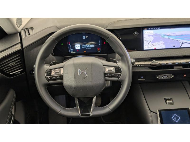 ABS avec répartiteur électronique de freinage (REF) et Aide au Freinage d'Urgence (AFU) + Aide au démarrage en penteAccès et démarrage mains libres ProximityAccoudoir central AVAide au stationnement AV/AR avec Caméra de reculAirbags frontaux (passager déconnectable), latéraux AV, rideaux aux places AV/AR et central entre les places AVAlerte Attention ConducteurAlerte de franchissement involontaire de ligneAllumage automatique des feuxAvertisseur de risque de collisionBanquette AR 2/3 - 1/3 avec 3 appuie-têteBoîte à gantsClimatisation automatique bi-zoneCombiné numérique 7"Commutation automatique des feuxConsole centrale avec rangement ferméContrôle dynamique de stabilité (ESP) avec antipatinage des roues (ASR) + Contrôle de stabilité de l'attelageDétection de sous-gonflageDS Drive Assist et Pack Détection Trafic AR : Adaptive Cruise Controle Stop & Go Surveillance d'angles morts longue distance Alerte de Trafic AR Freinage d'urgence automatique piloté par caméra et radarDS e-toggle (Sélecteur de vitesses)DS EXTENDED HEAD UP DISPLAYDS IRIS SYSTEMDS MATRIX LED VISIONEclairage d'ambiance à LEDEclairage de boîte à gants, d'accoudoir central AV et de coffre à LEDEclairage de cave à pieds à LEDEcran tactile capacitif 10" HDEssuie-vitre AV à déclenchement et cadencement automatiques + Buses de lavageFeux AR Full LED effet 3D avec traitement écaillesFixations ISOFIX à la place passager AV et aux places latérales ARFrein de stationnement électrique automatiqueFreinage d'urgence automatique piloté par caméra et radarFreinage multi-collisionIntérieur Cuir grainé Noir Basalte : Sellerie en Cuir grainé Noir Basalte Décors de panneaux de porte Chrome guilloché Volant en cuir fleur Mistral Console centrale en Toile DS Mistral Planche de bord en toile DS Noir Basalte façon écaille Panneaux dJantes alliage 19" SEVILLAKit de dépannage provisoire de pneumatiquesLève-vitres AV/AR électriques, séquentiels et antipincementLunette AR chauffanteMirror Screen sans fil via Wifi Compatible Apple CarPlay et Android AutoPalettes au volantPare-brise teinté acoustiquePare-soleil avec miroirs de courtoisie occultables éclairés à LEDPrises 12 V 1 prise AV et 1 prise dans le coffrePrises USB 1 prise USB-C sous l'accoudoir central AV, 1 prise USB-C dans la console et 2 prises USB-C pour les passagers ARRétroviseur intérieur électrochrome sans cadreRétroviseurs extérieurs électriques, dégivrants, rabattables électriquement Avec éclairage d'accueilRadio numérique terrestre (DAB) Inclut le BluetoothReconnaissance étendue des panneaux de circulationReconnaissance des panneaux de vitesse et préconisationVitres AR et lunette AR surteintéesVolant réglable en hauteur et profondeur