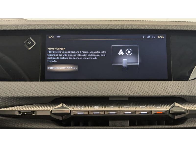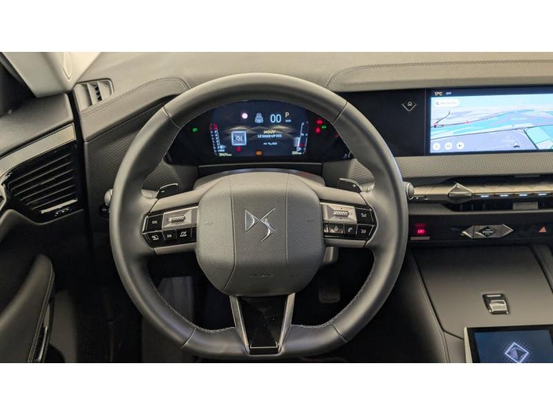 ABS avec répartiteur électronique de freinage (REF) et Aide au Freinage d'Urgence (AFU) + Aide au démarrage en penteAccès et démarrage mains libres ProximityAccoudoir central AR avec 2 porte-gobeletsAccoudoir central AV réfrigéré et éclairéAide au stationnement AV et AR et Caméra de reculAirbags frontaux (passager déconnectable), latéraux AV, rideaux aux places AV/AR et central entre les places AVAlerte Attention ConducteurAlerte de franchissement involontaire de ligneAllumage automatique des feuxAvertisseur de risque de collisionBanquette AR 2/3 - 1/3 avec 3 appuie-têteClimatisation automatique bi-zoneCombiné numérique 7"Commutation automatique des feuxCondamnation automatique des portes et du coffre en roulantConsole centrale avec rangement ferméContrôle dynamique de stabilité (ESP) avec antipatinage des roues (ASR) + Contrôle de stabilité de l'attelageDétection de sous-gonflageDS Drive Assist et Pack Détection Trafic AR : Surveillance d'angles morts longue distance Alerte de Trafic ARDS EXTENDED HEAD UP DISPLAY Affichage tete haute étenduDS IRIS SYSTEMDS MATRIX LED VISIONEclairage d'ambiance à LEDEclairage de boîte à gants, d'accoudoir central AV et de coffre à LEDEclairage de cave à pieds à LEDEcran tactile capacitif 10" HDEssuie-vitre AV à déclenchement et cadencement automatiques + Buses de lavageFeux AR Full LED effet 3D avec traitement écaillesFixations ISOFIX à la place passager AV et aux places latérales ARFrein de stationnement électrique automatiqueFreinage d'urgence automatique piloté par caméra et radarFreinage multi-collisionIntérieur Cuir grainé Noir Basalte et Toile DS : Ciel de pavillon clair Décors de panneaux de porte Chrome guilloché Volant en cuir fleur Mistral Console centrale en Toile DS Mistral Planche de bord en toile DS Noir Basalte façon écaille Panneaux de portes Jantes alliage 19" SEVILLAKit de dépannage provisoire de pneumatiquesLève-vitres AV/AR électriques, séquentiels et antipincementLunette AR chauffanteMirror Screen sans fil via Wifi Compatible Apple CarPlay et Android AutoPack Sièges mécaniques avec réglages lombaires conducteur et passagerPalettes au volantPare-brise teinté acoustiquePare-soleil avec miroirs de courtoisie occultables éclairés à LEDRétroviseur intérieur électrochrome sans cadreRétroviseurs extérieurs électriques, dégivrants, rabattables électriquement Avec éclairage d'accueilRadio numérique terrestre (DAB) Inclut le BluetoothReconnaissance étendue des panneaux de circulationReconnaissance des panneaux de vitesse et préconisationVitres AR et lunette AR surteintéesVolant réglable en hauteur et profondeur