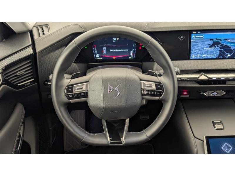 ABS avec répartiteur électronique de freinage (REF) et Aide au Freinage d'Urgence (AFU) + Aide au démarrage en penteAccès et démarrage mains libres ProximityAccoudoir central AR avec 2 porte-gobeletsAccoudoir central AV réfrigéré et éclairéAide au stationnement AV et AR et Caméra de reculAirbags frontaux (passager déconnectable), latéraux AV, rideaux aux places AV/AR et central entre les places AVAlerte Attention ConducteurAlerte de franchissement involontaire de ligneAllumage automatique des feuxAvertisseur de risque de collisionBanquette AR 2/3 - 1/3 avec 3 appuie-têteClimatisation automatique bi-zoneCombiné numérique 7"Commutation automatique des feuxCondamnation automatique des portes et du coffre en roulantConsole centrale avec rangement ferméContrôle dynamique de stabilité (ESP) avec antipatinage des roues (ASR) + Contrôle de stabilité de l'attelageDétection de sous-gonflageDS Drive Assist et Pack Détection Trafic AR : Surveillance d'angles morts longue distance Alerte de Trafic ARDS EXTENDED HEAD UP DISPLAY Affichage tete haute étenduDS IRIS SYSTEMDS MATRIX LED VISIONEclairage d'ambiance à LEDEclairage de boîte à gants, d'accoudoir central AV et de coffre à LEDEclairage de cave à pieds à LEDEcran tactile capacitif 10" HDEssuie-vitre AV à déclenchement et cadencement automatiques + Buses de lavageFeux AR Full LED effet 3D avec traitement écaillesFixations ISOFIX à la place passager AV et aux places latérales ARFrein de stationnement électrique automatiqueFreinage d'urgence automatique piloté par caméra et radarFreinage multi-collisionIntérieur Cuir grainé Noir Basalte et Toile DS : Ciel de pavillon clair Décors de panneaux de porte Chrome guilloché Volant en cuir fleur Mistral Console centrale en Toile DS Mistral Planche de bord en toile DS Noir Basalte façon écaille Panneaux de portes Jantes alliage 19" SEVILLAKit de dépannage provisoire de pneumatiquesLève-vitres AV/AR électriques, séquentiels et antipincementLunette AR chauffanteMirror Screen sans fil via Wifi Compatible Apple CarPlay et Android AutoPack Sièges mécaniques avec réglages lombaires conducteur et passagerPalettes au volantPare-brise teinté acoustiquePare-soleil avec miroirs de courtoisie occultables éclairés à LEDRétroviseur intérieur électrochrome sans cadreRétroviseurs extérieurs électriques, dégivrants, rabattables électriquement Avec éclairage d'accueilRadio numérique terrestre (DAB) Inclut le BluetoothReconnaissance étendue des panneaux de circulationReconnaissance des panneaux de vitesse et préconisationVitres AR et lunette AR surteintéesVolant réglable en hauteur et profondeur