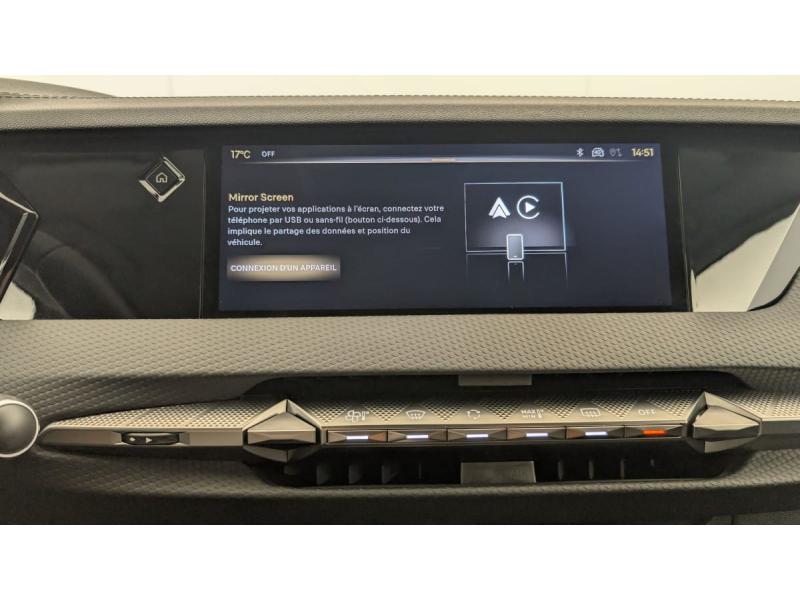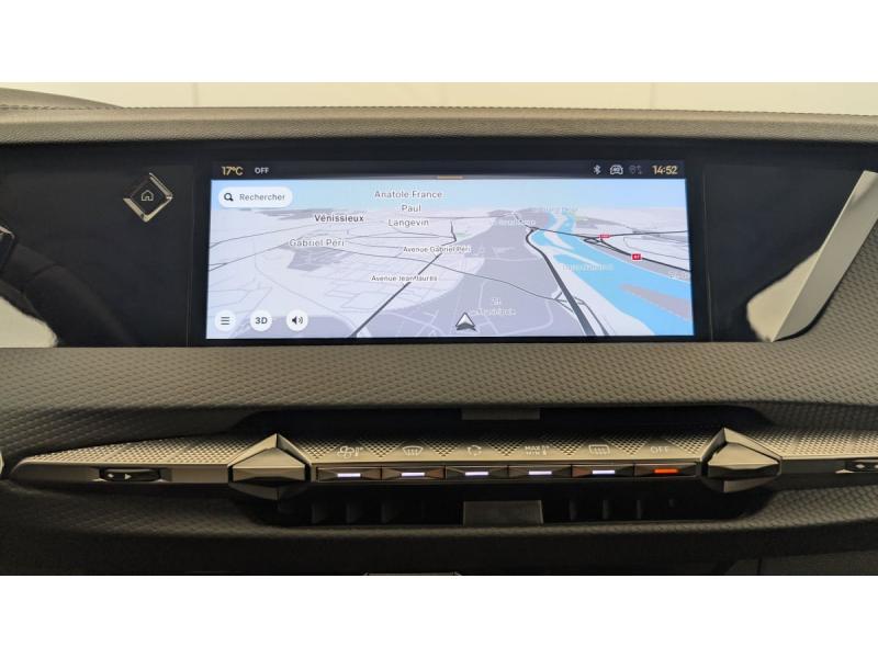 ABS avec répartiteur électronique de freinage (REF) et Aide au Freinage d'Urgence (AFU) + Aide au démarrage en penteAccès et démarrage mains libres ProximityAccoudoir central AR avec 2 porte-gobeletsAccoudoir central AV réfrigéré et éclairéAide au stationnement AV et AR et Caméra de reculAirbags frontaux (passager déconnectable), latéraux AV, rideaux aux places AV/AR et central entre les places AVAlerte Attention ConducteurAlerte de franchissement involontaire de ligneAllumage automatique des feuxAvertisseur de risque de collisionBanquette AR 2/3 - 1/3 avec 3 appuie-têteClimatisation automatique bi-zoneCombiné numérique 7"Commutation automatique des feuxCondamnation automatique des portes et du coffre en roulantConsole centrale avec rangement ferméContrôle dynamique de stabilité (ESP) avec antipatinage des roues (ASR) + Contrôle de stabilité de l'attelageDétection de sous-gonflageDS Drive Assist et Pack Détection Trafic AR : Surveillance d'angles morts longue distance Alerte de Trafic ARDS EXTENDED HEAD UP DISPLAY Affichage tete haute étenduDS IRIS SYSTEMDS MATRIX LED VISIONEclairage d'ambiance à LEDEclairage de boîte à gants, d'accoudoir central AV et de coffre à LEDEclairage de cave à pieds à LEDEcran tactile capacitif 10" HDEssuie-vitre AV à déclenchement et cadencement automatiques + Buses de lavageFeux AR Full LED effet 3D avec traitement écaillesFixations ISOFIX à la place passager AV et aux places latérales ARFrein de stationnement électrique automatiqueFreinage d'urgence automatique piloté par caméra et radarFreinage multi-collisionIntérieur Cuir grainé Noir Basalte et Toile DS : Ciel de pavillon clair Décors de panneaux de porte Chrome guilloché Volant en cuir fleur Mistral Console centrale en Toile DS Mistral Planche de bord en toile DS Noir Basalte façon écaille Panneaux de portes Jantes alliage 19" SEVILLAKit de dépannage provisoire de pneumatiquesLève-vitres AV/AR électriques, séquentiels et antipincementLunette AR chauffanteMirror Screen sans fil via Wifi Compatible Apple CarPlay et Android AutoPack Sièges mécaniques avec réglages lombaires conducteur et passagerPalettes au volantPare-brise teinté acoustiquePare-soleil avec miroirs de courtoisie occultables éclairés à LEDRétroviseur intérieur électrochrome sans cadreRétroviseurs extérieurs électriques, dégivrants, rabattables électriquement Avec éclairage d'accueilRadio numérique terrestre (DAB) Inclut le BluetoothReconnaissance étendue des panneaux de circulationReconnaissance des panneaux de vitesse et préconisationVitres AR et lunette AR surteintéesVolant réglable en hauteur et profondeur