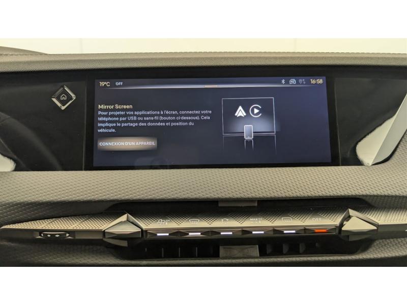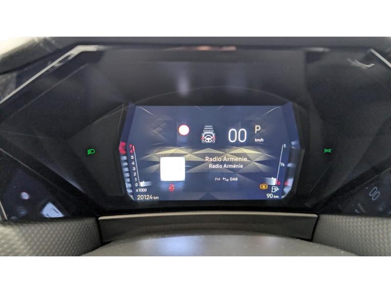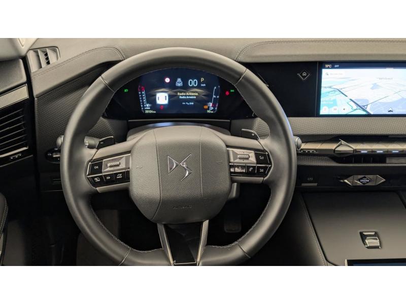 ABS avec répartiteur électronique de freinage (REF) et Aide au Freinage d'Urgence (AFU) + Aide au démarrage en penteAccès et démarrage mains libres ProximityAccoudoir central ARAccoudoir central AVAide au stationnement AV et AR et Caméra de reculAirbags frontaux (passager déconnectable), latéraux AV, rideaux aux places AV/AR et central entre les places AVAlerte de franchissement involontaire de ligneAllumage automatique des feuxBanquette AR 2/3 - 1/3 avec 3 appuie-têteClean Cabin avec Air Quality SystemClimatisation automatique bi-zoneCombiné numérique 7"Commutation automatique des feuxCondamnation automatique des portes et du coffre en roulantContrôle dynamique de stabilité (ESP) avec antipatinage des roues (ASR) + Contrôle de stabilité de l'attelageDétection de sous-gonflageDS Drive Assist et Pack Détection Trafic AR : Adaptive Cruise Control Stop & Go Surveillance d'angles morts longue distance Alerte de Trafic AR Lane Positioning Assist afin de gérer la conduite de manière semi-autonomeDS e-toggle (Sélecteur de vitesses)DS EXTENDED HEAD UP DISPLAY Affichage tete haute étenduDS IRIS SYSTEMDS MATRIX LED VISIONEclairage d'ambiance à LEDEclairage de boîte à gants, d'accoudoir central AV et de coffre à LEDEclairage de cave à pieds à LEDEcran tactile capacitif 10" HDEssuie-vitre AV à déclenchement et cadencement automatiques + Buses de lavageFeux AR Full LED effet 3D avec traitement écaillesFixations ISOFIX à la place passager AV et aux places latérales ARFrein de stationnement électrique automatiqueFreinage d'urgence automatique piloté par caméra et radarIntérieur Cuir grainé Noir Basalte et Toile DS : Ciel de pavillon clair Décors de panneaux de porte Chrome guilloché Volant en cuir fleur Mistral Console centrale en Toile DS Mistral Planche de bord en toile DS Noir Basalte façon écaille Panneaux de portes Jantes alliage 19" SEVILLAKit de dépannage provisoire de pneumatiquesLève-vitres AV/AR électriques, séquentiels et antipincementLunette AR chauffanteMirror Screen sans fil via Wifi Compatible Apple CarPlay et Android AutoPack Sièges mécaniques avec réglages lombaires conducteur et passagerPalettes au volantPare-brise teinté acoustiquePare-soleil avec miroirs de courtoisie occultables éclairés à LEDRétroviseur intérieur électrochrome sans cadreRétroviseurs extérieurs électriques, dégivrants, rabattables électriquement Avec éclairage d'accueilRadio numérique terrestre (DAB) Inclut le BluetoothReconnaissance des panneaux de vitesse et préconisationSOSVitres AR et lunette AR surteintéesVolant réglable en hauteur et profondeur