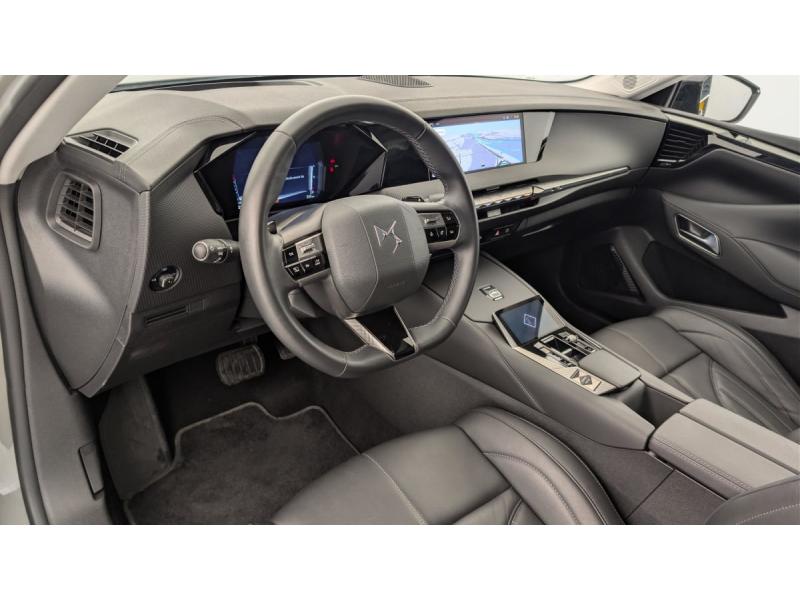 ABS avec répartiteur électronique de freinage (REF) et Aide au Freinage d'Urgence (AFU) + Aide au démarrage en penteAccès et démarrage mains libres ProximityAccoudoir central ARAide au stationnement AV et AR et Caméra de reculAirbags frontaux (passager déconnectable), latéraux AV, rideaux aux places AV/AR et central entre les places AVAllumage automatique des feuxAntenne "aileron de requin"Avertisseur de risque de collisionBanquette AR 2/3 - 1/3 avec 3 appuie-têteClimatisation automatique bi-zoneCombiné numérique 7"Commutation automatique des feuxCondamnation automatique des portes et du coffre en roulantConsole centrale avec rangement ferméContrôle dynamique de stabilité (ESP) avec antipatinage des roues (ASR) + Contrôle de stabilité de l'attelageDétection de sous-gonflageDS Drive Assist et Pack Détection Trafic AR : Surveillance d'angles morts longue distance Alerte de Trafic ARDS e-toggle (Sélecteur de vitesses)DS EXTENDED HEAD UP DISPLAY Affichage tete haute étenduDS IRIS SYSTEMDS MATRIX LED VISIONEclairage d'ambiance à LEDEclairage de boîte à gants, d'accoudoir central AV et de coffre à LEDEclairage de cave à pieds à LEDEcran tactile capacitif 10" HDEssuie-vitre AV à déclenchement et cadencement automatiques + Buses de lavageFeux AR Full LED effet 3D avec traitement écaillesFixations ISOFIX à la place passager AV et aux places latérales ARFrein de stationnement électrique automatiqueFreinage d'urgence automatique piloté par caméra et radarIntérieur Cuir grainé Noir Basalte et Toile DS : Ciel de pavillon clair Décors de panneaux de porte Chrome guilloché Volant en cuir fleur Mistral Console centrale en Toile DS Mistral Planche de bord en toile DS Noir Basalte façon écaille Panneaux de portes Jantes alliage 19" SEVILLAKit de dépannage provisoire de pneumatiquesLève-vitres AV/AR électriques, séquentiels et antipincementLunette AR chauffanteMirror Screen sans fil via Wifi Compatible Apple CarPlay et Android AutoPack Sièges mécaniques avec réglages lombaires conducteur et passagerPalettes au volantPare-brise teinté acoustiquePare-soleil avec miroirs de courtoisie occultables éclairés à LEDRégulateur/Limiteur de vitesseRétroviseur intérieur électrochrome sans cadreRétroviseurs extérieurs électriques, dégivrants, rabattables électriquement Avec éclairage d'accueilRadio numérique terrestre (DAB) Inclut le BluetoothReconnaissance des panneaux de vitesse et préconisationSOSVitres AR et lunette AR surteintéesVolant réglable en hauteur et profondeur