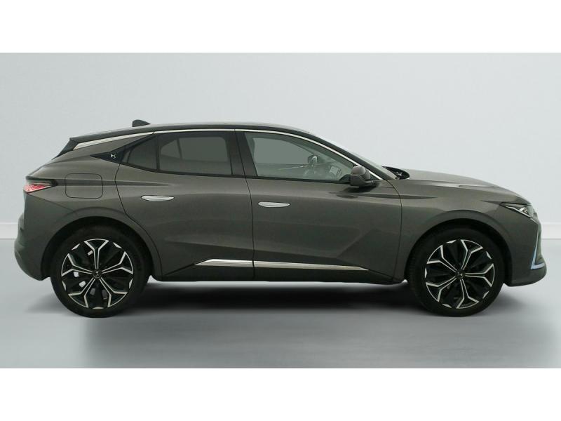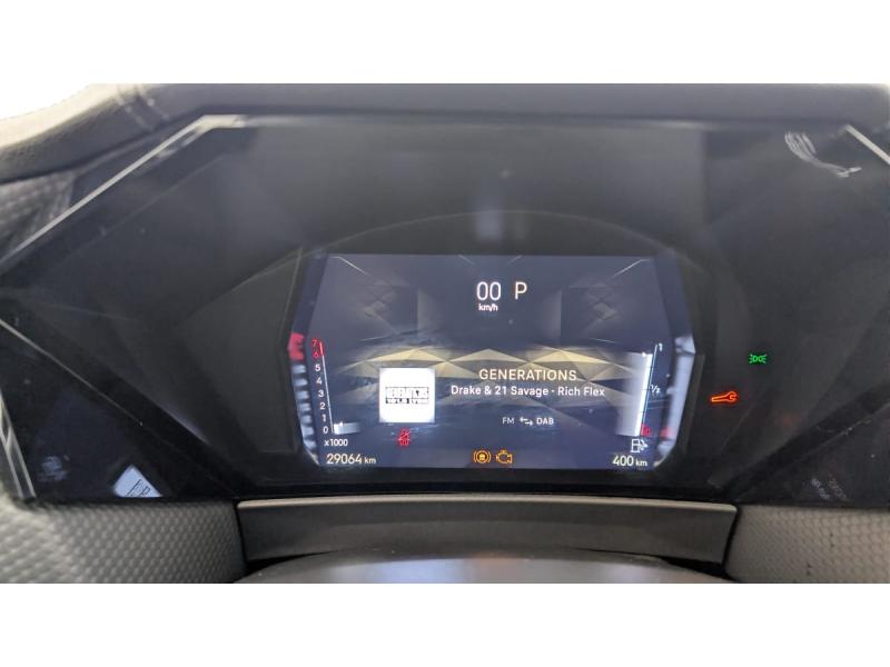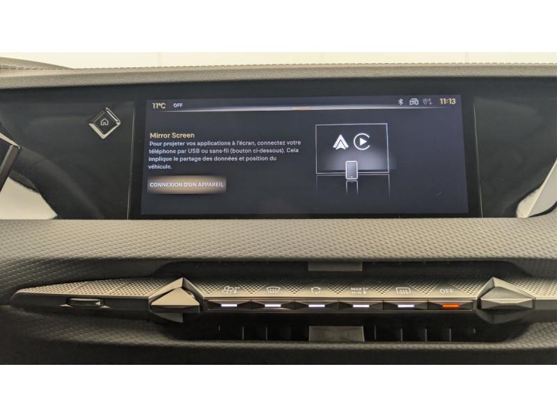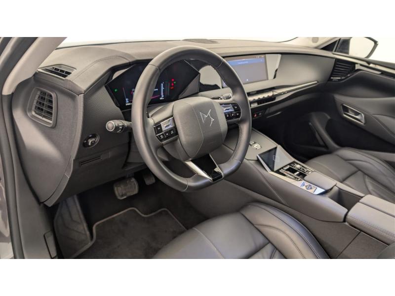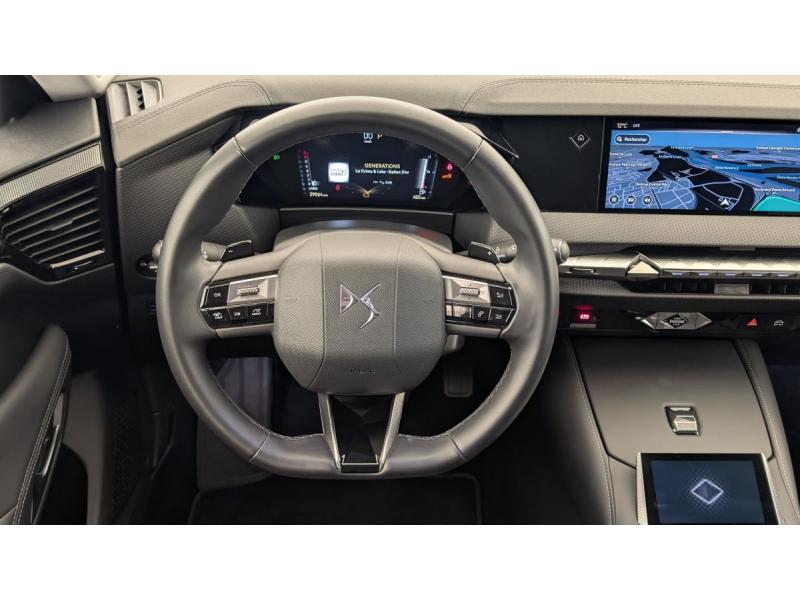 ABS avec répartiteur électronique de freinage (REF) et Aide au Freinage d'Urgence (AFU) + Aide au démarrage en penteAccès et démarrage mains libres ProximityAccoudoir central ARAide au stationnement AV et AR et Caméra de reculAirbags frontaux (passager déconnectable), latéraux AV, rideaux aux places AV/AR et central entre les places AVAllumage automatique des feuxAntenne "aileron de requin"Avertisseur de risque de collisionBanquette AR 2/3 - 1/3 avec 3 appuie-têteClimatisation automatique bi-zoneCombiné numérique 7"Commutation automatique des feuxCondamnation automatique des portes et du coffre en roulantConsole centrale avec rangement ferméContrôle dynamique de stabilité (ESP) avec antipatinage des roues (ASR) + Contrôle de stabilité de l'attelageDétection de sous-gonflageDS Drive Assist et Pack Détection Trafic AR : Surveillance d'angles morts longue distance Alerte de Trafic ARDS e-toggle (Sélecteur de vitesses)DS EXTENDED HEAD UP DISPLAY Affichage tete haute étenduDS IRIS SYSTEMDS MATRIX LED VISIONEclairage d'ambiance à LEDEclairage de boîte à gants, d'accoudoir central AV et de coffre à LEDEclairage de cave à pieds à LEDEcran tactile capacitif 10" HDEssuie-vitre AV à déclenchement et cadencement automatiques + Buses de lavageFeux AR Full LED effet 3D avec traitement écaillesFixations ISOFIX à la place passager AV et aux places latérales ARFrein de stationnement électrique automatiqueFreinage d'urgence automatique piloté par caméra et radarIntérieur Cuir grainé Noir Basalte et Toile DS : Ciel de pavillon clair Décors de panneaux de porte Chrome guilloché Volant en cuir fleur Mistral Console centrale en Toile DS Mistral Planche de bord en toile DS Noir Basalte façon écaille Panneaux de portes Jantes alliage 19" SEVILLAKit de dépannage provisoire de pneumatiquesLève-vitres AV/AR électriques, séquentiels et antipincementLunette AR chauffanteMirror Screen sans fil via Wifi Compatible Apple CarPlay et Android AutoPack Sièges mécaniques avec réglages lombaires conducteur et passagerPalettes au volantPare-brise teinté acoustiquePare-soleil avec miroirs de courtoisie occultables éclairés à LEDRégulateur/Limiteur de vitesseRétroviseur intérieur électrochrome sans cadreRétroviseurs extérieurs électriques, dégivrants, rabattables électriquement Avec éclairage d'accueilRadio numérique terrestre (DAB) Inclut le BluetoothReconnaissance des panneaux de vitesse et préconisationSOSVitres AR et lunette AR surteintéesVolant réglable en hauteur et profondeur