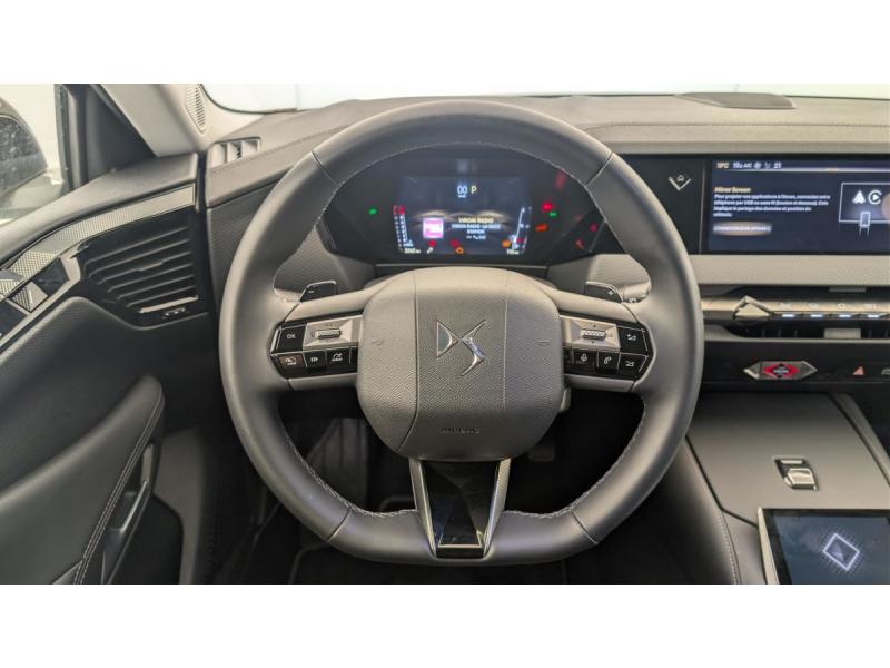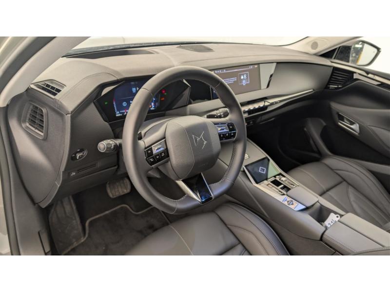 ABS avec répartiteur électronique de freinage (REF) et Aide au Freinage d'Urgence (AFU) + Aide au démarrage en penteAccès et démarrage mains libres ProximityAccoudoir central AR avec trappe à ski et 2 porte-gobeletsAccoudoir central AV réfrigéré et éclairéAirbags frontaux (passager déconnectable), latéraux AV, rideaux aux places AV/AR et central entre les places AVAlerte Attention ConducteurAlerte de franchissement involontaire de ligneAllumage automatique des feuxAntenne "aileron de requin"Avertisseur de risque de collisionBanquette AR 2/3 - 1/3 avec 3 appuie-têteClean Cabin avec Air Quality SystemClimatisation automatique bi-zoneCombiné numérique 7"Commutation automatique des feuxCondamnation automatique des portes et du coffre en roulantConsole centrale avec rangement ferméContrôle dynamique de stabilité (ESP) avec antipatinage des roues (ASR) + Contrôle de stabilité de l'attelageCoques de rétroviseurs extérieurs noir brillantDétection de sous-gonflageDS Drive Assist et Pack Détection Trafic AR : Adaptive Cruise Control Stop & Go Surveillance d'angles morts longue distance Alerte de Trafic AR Lane Positioning Assist afin de gérer la conduite de manière semi-autonomeDS e-toggle (Sélecteur de vitesses)DS EXTENDED HEAD UP DISPLAY Affichage tete haute étenduDS IRIS SYSTEMDS MATRIX LED VISIONEclairage d'ambiance à LEDEclairage de boîte à gants, d'accoudoir central AV et de coffre à LEDEclairage de cave à pieds à LEDEcran tactile capacitif 10" HDEssuie-vitre AV à déclenchement et cadencement automatiquesFeux AR Full LED effet 3D avec traitement écaillesFixations ISOFIX à la place passager AV et aux places latérales ARFrein de stationnement électrique automatiqueFreinage d'urgence automatiqueFreinage multi-collisionGrille de calandre noir brillant avec pampilles chroméesIntérieur Cuir grainé Noir Basalte et Toile DS : Ciel de pavillon clair Décors de panneaux de porte Chrome guilloché Volant en cuir fleur Mistral Console centrale en Toile DS Mistral Planche de bord en toile DS Noir Basalte façon écaille Panneaux de portes Jantes alliage 19" SEVILLAJonc de volet chroméLève-vitres AV/AR électriques, séquentiels et antipincementMirror Screen sans fil via Wifi Compatible Apple CarPlay et Android AutoPack Sièges mécaniques avec réglages lombaires conducteur et passagerPalettes au volantPare-brise teinté acoustiquePare-soleil avec miroirs de courtoisie occultables éclairés à LEDPoignées extérieures affleurantes chroméesPrédisposition pour roue de secours galettePrises 12 V 1 prise AV et 1 prise dans le coffrePrises USB 1 prise USB-C sous l'accoudoir central AV, 1 prise USB-C dans la console et 2 prises USB-C pour les passagers ARRégulateur/Limiteur de vitesseRétroviseur intérieur électrochrome sans cadreRétroviseurs extérieurs électriques, dégivrants, rabattables électriquement Avec éclairage d'accueilRadio numérique terrestre (DAB) Inclut le BluetoothReconnaissance des panneaux de vitesse et préconisationSOSVéhicule sans roue de secours ni kit de dépannageVérins d'ouverture et de maintien du capot moteurVitres AR et lunette AR surteintéesVolant réglable en hauteur et profondeur