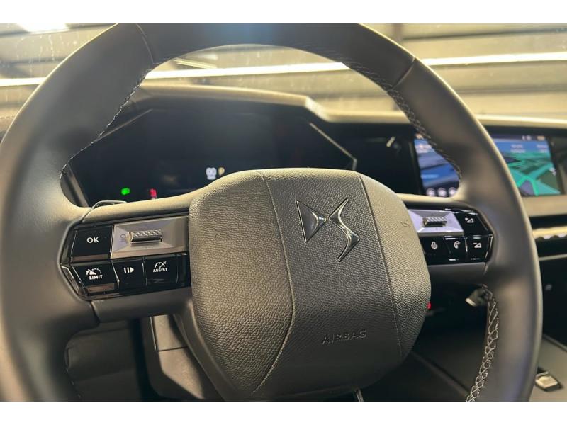 ABS avec répartiteur électronique de freinage (REF) et Aide au Freinage d'Urgence (AFU) + Aide au démarrage en penteAccès et démarrage mains libres ProximityAccoudoir central AR avec trappe à ski et 2 porte-gobeletsAccoudoir central AV réfrigéré et éclairéAide au stationnement AV et AR et Caméra de reculAirbags frontaux (passager déconnectable), latéraux AV, rideaux aux places AV/AR et central entre les places AVAlerte Attention ConducteurAlerte de franchissement involontaire de ligneAllumage automatique des feuxAvertisseur de risque de collisionBanquette AR 2/3 - 1/3 avec 3 appuie-têteBanquette AR avec trappe à skisClean Cabin avec Air Quality SystemClimatisation automatique bi-zoneCombiné numérique 7"Commutation automatique des feuxCondamnation automatique des portes et du coffre en roulantConsole centrale avec rangement ferméContrôle dynamique de stabilité (ESP) avec antipatinage des roues (ASR) + Contrôle de stabilité de l'attelageCoques de rétroviseurs extérieurs noir brillantDétection de sous-gonflageDS Drive Assist et Pack Détection Trafic AR : Adaptive Cruise Control Stop & Go Surveillance d'angles morts longue distance Alerte de Trafic AR Lane Positioning Assist afin de gérer la conduite de manière semi-autonomeDS EXTENDED HEAD UP DISPLAY Affichage tete haute étenduDS IRIS SYSTEMDS MATRIX LED VISIONDS SMART TOUCHDS Wings chroméesEclairage d'ambiance à LEDEclairage de cave à pieds à LEDEcran tactile capacitif 10" HDEnjoliveurs supérieurs des vitres latérales chromésEssuie-vitre AV à déclenchement et cadencement automatiquesFeux AR Full LED effet 3D avec traitement écaillesFixations ISOFIX à la place passager AV et aux places latérales ARFrein de stationnement électrique automatiqueFreinage d'urgence automatiqueIntérieur Cuir grainé Noir Basalte et Toile DS : Ciel de pavillon clair Décors de panneaux de porte Chrome guilloché Volant en cuir fleur Mistral Console centrale en Toile DS Mistral Planche de bord en toile DS Noir Basalte façon écaille Panneaux de portes Jantes alliage 19" SEVILLAKit de dépannage provisoire de pneumatiquesLève-vitres AV/AR électriques, séquentiels et antipincementLunette AR chauffanteMirror Screen sans fil via Wifi Compatible Apple CarPlay et Android AutoPack Sièges mécaniques avec réglages lombaires conducteur et passagerPalettes au volantPare-brise teinté acoustiquePare-soleil avec miroirs de courtoisie occultables éclairés à LEDPoignées extérieures affleurantes chroméesPrédisposition pour roue de secours galetteRégulateur/Limiteur de vitesseRétroviseur intérieur électrochrome sans cadreRétroviseurs extérieurs électriques, dégivrants, rabattables électriquement Avec éclairage d'accueilRadio numérique terrestre (DAB) Inclut le BluetoothReconnaissance étendue des panneaux de circulationReconnaissance des panneaux de vitesse et préconisationSeuil de coffre aluminiumSOSVitres AR et lunette AR surteintéesVolant réglable en hauteur et profondeur