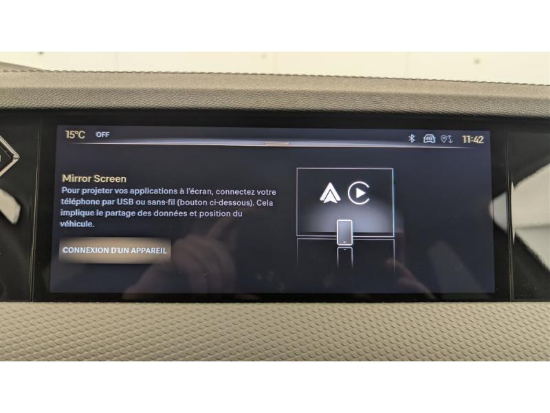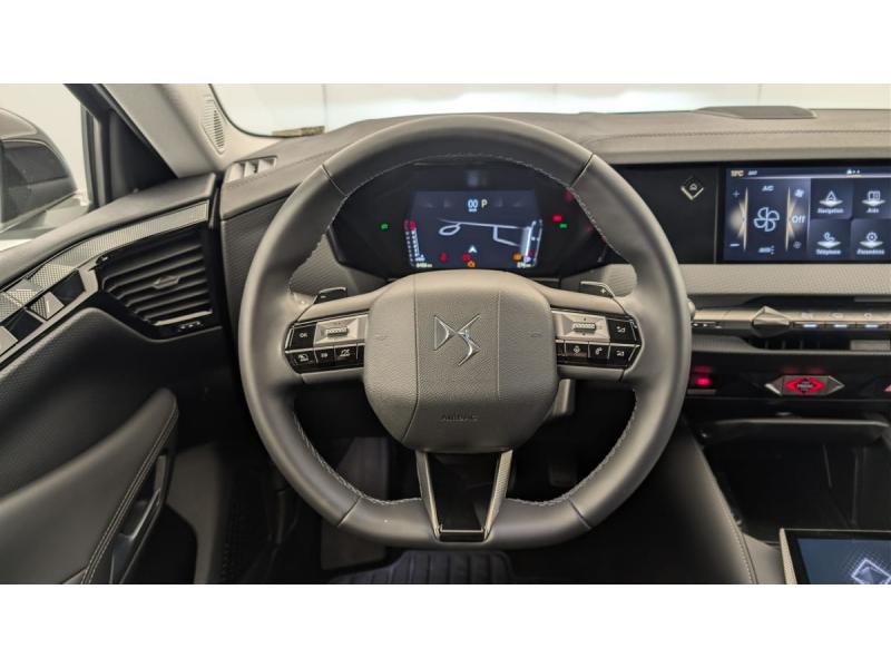 ABS avec répartiteur électronique de freinage (REF) et Aide au Freinage d'Urgence (AFU) + Aide au démarrage en penteAccès et démarrage mains libres ProximityAccoudoir central AR avec trappe à ski et 2 porte-gobeletsAccoudoir central AV réfrigéré et éclairéAide au stationnement AV et AR et Caméra de reculAirbags frontaux (passager déconnectable), latéraux AV, rideaux aux places AV/AR et central entre les places AVAlerte Attention ConducteurAlerte de franchissement involontaire de ligneAllumage automatique des feuxAvertisseur de risque de collisionBanquette AR 2/3 - 1/3 avec 3 appuie-têteBanquette AR avec trappe à skisClean Cabin avec Air Quality SystemClimatisation automatique bi-zoneCombiné numérique 7"Commutation automatique des feuxCondamnation automatique des portes et du coffre en roulantConsole centrale avec rangement ferméContrôle dynamique de stabilité (ESP) avec antipatinage des roues (ASR) + Contrôle de stabilité de l'attelageCoques de rétroviseurs extérieurs noir brillantDétection de sous-gonflageDS Drive Assist et Pack Détection Trafic AR : Adaptive Cruise Control Stop & Go Surveillance d'angles morts longue distance Alerte de Trafic AR Lane Positioning Assist afin de gérer la conduite de manière semi-autonomeDS EXTENDED HEAD UP DISPLAY Affichage tete haute étenduDS IRIS SYSTEMDS MATRIX LED VISIONDS SMART TOUCHDS Wings chroméesEclairage d'ambiance à LEDEclairage de cave à pieds à LEDEcran tactile capacitif 10" HDEnjoliveurs supérieurs des vitres latérales chromésEssuie-vitre AV à déclenchement et cadencement automatiquesFeux AR Full LED effet 3D avec traitement écaillesFixations ISOFIX à la place passager AV et aux places latérales ARFrein de stationnement électrique automatiqueFreinage d'urgence automatiqueIntérieur Cuir grainé Noir Basalte et Toile DS : Ciel de pavillon clair Décors de panneaux de porte Chrome guilloché Volant en cuir fleur Mistral Console centrale en Toile DS Mistral Planche de bord en toile DS Noir Basalte façon écaille Panneaux de portes Jantes alliage 19" SEVILLAKit de dépannage provisoire de pneumatiquesLève-vitres AV/AR électriques, séquentiels et antipincementLunette AR chauffanteMirror Screen sans fil via Wifi Compatible Apple CarPlay et Android AutoPack Sièges mécaniques avec réglages lombaires conducteur et passagerPalettes au volantPare-brise teinté acoustiquePare-soleil avec miroirs de courtoisie occultables éclairés à LEDPoignées extérieures affleurantes chroméesPrédisposition pour roue de secours galetteRégulateur/Limiteur de vitesseRétroviseur intérieur électrochrome sans cadreRétroviseurs extérieurs électriques, dégivrants, rabattables électriquement Avec éclairage d'accueilRadio numérique terrestre (DAB) Inclut le BluetoothReconnaissance étendue des panneaux de circulationReconnaissance des panneaux de vitesse et préconisationSeuil de coffre aluminiumSOSVitres AR et lunette AR surteintéesVolant réglable en hauteur et profondeur