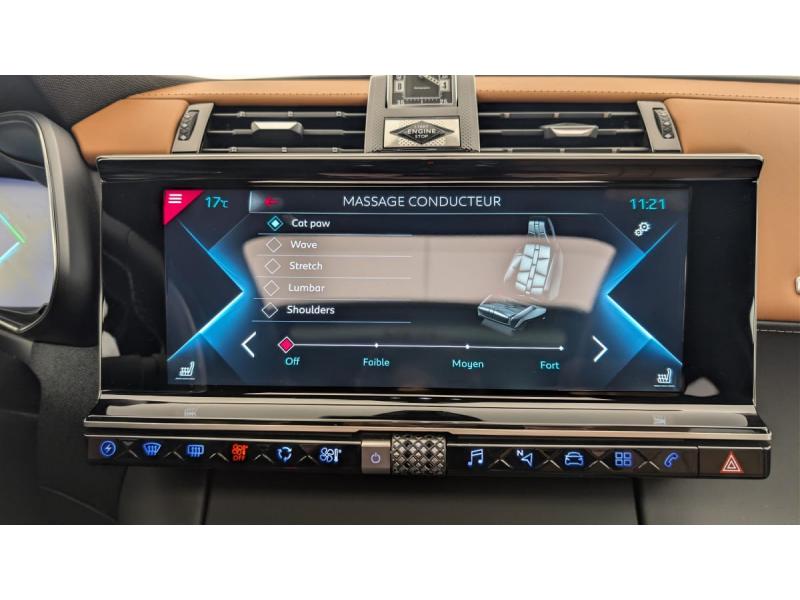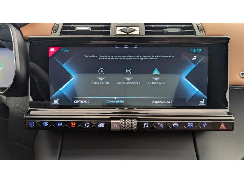 ABS avec répartiteur électronique de freinage (REF) et Aide au Freinage d'Urgence (AFU)Accès et démarrage mains libresAccoudoir central AV avec rangementAide au démarrage en penteAide au stationnement AV et AR avec Caméra de reculAirbags frontaux aux places AV avec désactivation par clé de l'airbag passagerAirbags latéraux de type "thorax" aux places AVAirbags rideaux aux places AV et ARAlerte Attention ConducteurAllumage automatique des feux de détresse en cas de forte décélérationAllumage automatique des projecteursAumônières de dos sur les sièges AVAvertisseur bi-tonBanquette AR 2/3 - 1/3 avec 3 appuie-têteBarres de toit aluminiumBoîte à gants réfrigéréeCâble de recharge mode 2 standard 1,8 kW (8 A)Chargeur embarqué de 7,4 kWChargeur sans filClignotants impulsionnels 3 coupsClimatisation avec aérateurs aux places ARCombiné numérique 12"Commutation automatique des feux de routeCondamnation automatique des portes, du hayon et de la trappe à carburant en roulantContrôle de stabilité de l'attelageContrôle de traction intelligentContrôle dynamique de stabilité (ESP) avec antipatinage des roues (ASR)Crochet d'arrimage dans le coffre au dessus du plancher de coffre x4Détection de sous-gonflageDirection à assistance variableDouble canule d'échappement chroméeDS ACTIVE LED VISION Comprend les projecteurs directionnels, les clignotants défilants à LED ainsi que 6 modes d’éclairagesEclairage à LEDEclairage d'accompagnement automatiqueEclairage d'accueil automatiqueEclairage d'ambiance intégral à LEDEcran tactile 12" avec menu spécifique E-TENSEEntourage des vitres latérales chroméEssuie-vitre AV à déclenchement et cadencement automatiquesFeux AR 3D (traitement écailles) Avec indicateur de changement de direction défilantFeux diurnes à LEDFiltre à pollenFixations ISOFIX aux places latérales ARFrein de stationnement électrique automatiqueJantes alliage 19" ROMAJonc sur volet et bouclier AR chroméKit de dépannage provisoire de pneumatiquesLève-vitres AV/AR électriques, séquentiels et avec fonction antipincementMirror ScreenMontre B.R.M. R180NAVIGATION avec radio numériquePédalier et le repose-pied aluminiumPack Modularité : Seuil de coffre chromé Prise 12 V Plancher de coffre modulable à 2 positions Rangements latéraux dans le coffrePack Sécurité Etendue avec freinage d’urgence automatique : Alerte Attention Conducteur par caméra Reconnaissance étendue des panneaux de circulation Surveillance Active d'Angle MortPack Sièges Electriques : Fonction mémoire et réglages lombaire côté conducteur Appuie-tête à réglages intégrés Banquette AR inclinable électriquement avec accoudoir Siège AV électrique conducteur Siège Palettes au volantPare-soleil rembourrés avec éclairage à LEDPlanche de coffre avec zone de rangement intégrée pour le câble de rechargePrise 12 VPrise USB Data à l'AVPrises USB x2 aux places ARProjecteurs antibrouillard à LEDRégulateur/Limiteur de vitesseReconnaissance vocaleSabot AV finition Gris AluminiumSièges AV avec réglages lombaires électriquesSOSSystème audio Analogique à 8 HP avec prise USB et BluetoothTémoin et alerte sonore de non-bouclage des ceintures de sécurité AV/ARVerrouillage automatique des portes en roulantVitres AR et lunette AR surteintéesVitres AV et AR surteintées et feuilletéesVolant Cuir gainé main avec commandes intégréesVolant réglable en hauteur et profondeur