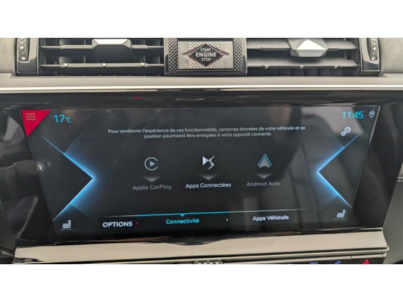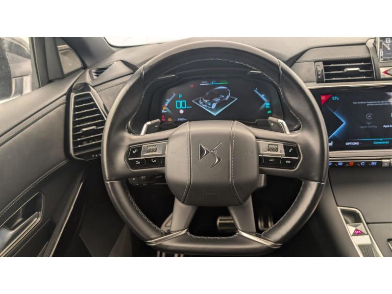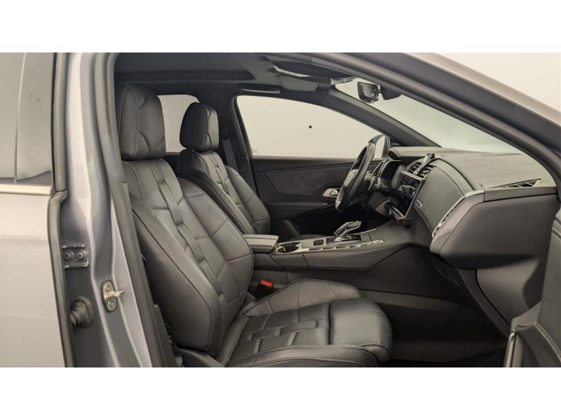ABS avec répartiteur électronique de freinage (REF) et Aide au Freinage d'Urgence (AFU)Accès et démarrage mains libresAccoudoir central AR avec porte-gobeletsAccoudoir central AV avec rangementAide au démarrage en penteAide au stationnement AV et AR avec Caméra de reculAirbags frontaux aux places AV avec désactivation par clé de l'airbag passagerAirbags latéraux de type "thorax" aux places AVAirbags rideaux aux places AV et ARAllumage automatique des feux de détresse en cas de forte décélérationAllumage automatique des projecteursAumônières de dos sur les sièges AVAvertisseur bi-tonBanquette AR 2/3 - 1/3 avec 3 appuie-têteBarres de toit aluminiumBoîte à gants réfrigéréeCâble de recharge mode 2 standard 1,8 kW (8 A)Chargeur embarqué de 7,4 kWChargeur sans filClignotants impulsionnels 3 coupsClimatisation avec aérateurs aux places ARCombiné numérique 12"Commutation automatique des feux de routeCondamnation automatique des portes, du hayon et de la trappe à carburant en roulantContrôle de traction intelligentContrôle dynamique de stabilité (ESP) avec antipatinage des roues (ASR)Crochet d'arrimage dans le coffre au dessus du plancher de coffre x4Détection de sous-gonflageDirection à assistance variableDouble canule d'échappement chroméeDS ACTIVE LED VISION Comprend les projecteurs directionnels, les clignotants défilants à LED ainsi que 6 modes d’éclairagesDS ACTIVE SCAN SUSPENSION Système de suspension pilotée par caméraEclairage à LEDEclairage d'accompagnement automatiqueEclairage d'accueil automatiqueEclairage d'ambiance intégral à LEDEcran tactile 12" avec menu spécifique E-TENSEEntourage des vitres latérales chroméEssuie-vitre AV à déclenchement et cadencement automatiquesFeux AR 3D (traitement écailles) Avec indicateur de changement de direction défilantFeux diurnes à LEDFixations ISOFIX aux places latérales ARFrein de stationnement électrique automatiqueJantes alliage 19" ROMAJonc sur volet et bouclier AR chroméKit de dépannage provisoire de pneumatiquesLève-vitres AV/AR électriques, séquentiels et avec fonction antipincementMirror ScreenMontre B.R.M. R180NAVIGATION avec radio numériquePédalier et le repose-pied aluminiumPack Modularité : Seuil de coffre chromé Prise 12 V Plancher de coffre modulable à 2 positions Rangements latéraux dans le coffrePack Sécurité : Freinage d'urgence automatique Alerte active de franchissement involontaire de lignePack Sécurité Etendue avec freinage d’urgence automatique : Alerte Attention Conducteur par caméra Reconnaissance étendue des panneaux de circulation Surveillance Active d'Angle MortPack Sièges Electriques : Fonction mémoire et réglages lombaire côté conducteur Appuie-tête à réglages intégrés Banquette AR inclinable électriquement avec accoudoir Siège AV électrique conducteur Siège Palettes au volantPare-soleil rembourrés avec éclairage à LEDPlanche de coffre avec zone de rangement intégrée pour le câble de rechargePrise 12 VPrise USB Data à l'AVPrises USB x2 aux places ARProjecteurs antibrouillard à LEDRégulateur/Limiteur de vitesseReconnaissance vocaleSabot AV finition Gris AluminiumSOSTémoin et alerte sonore de non-bouclage des ceintures de sécurité AV/ARTrappe de recharge côté gaucheVerrouillage automatique des portes en roulantVitres AV et AR surteintées et feuilletéesVolant Cuir gainé main avec commandes intégréesVolant réglable en hauteur et profondeur