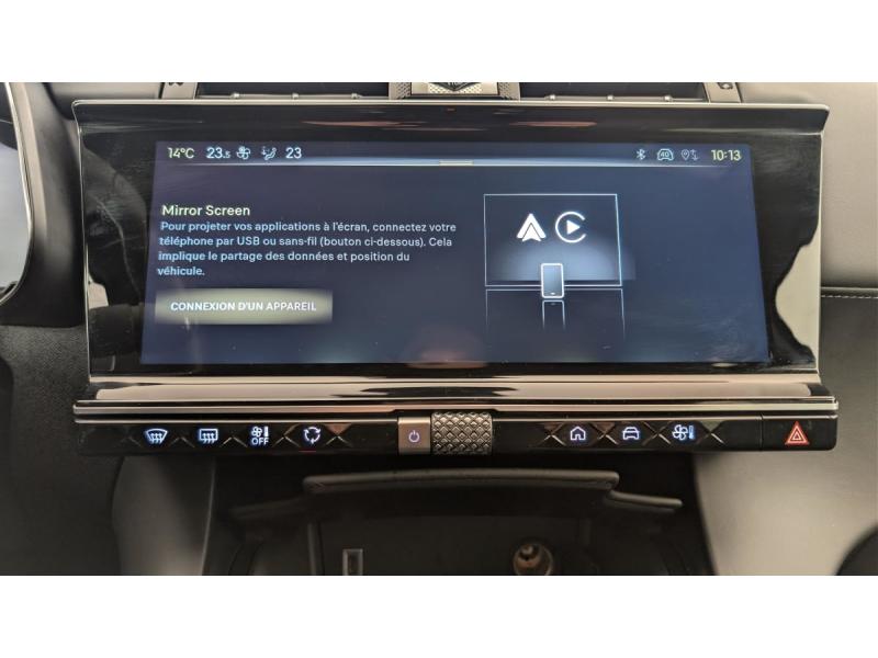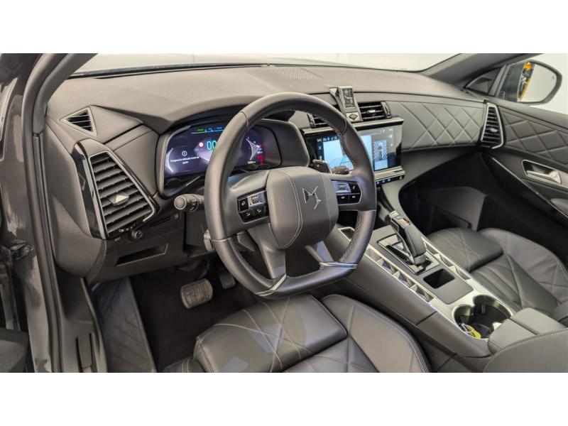 ABS avec répartiteur électronique de freinage (REF) et Aide au Freinage d'Urgence (AFU) + Aide au démarrage en penteAccès et démarrage mains libresAccoudoir central en Toile DS avec rangementAide au stationnement AV/AR et Caméra de reculAirbags frontaux (passager déconnectable), latéraux AV, rideaux AV/ARAlerte Attention ConducteurAlerte de franchissement involontaire de ligneAllumage automatique des feux Avec commutation automatique des feux de routeBanquette AR 2/3 - 1/3Barres de toit aluminiumClimatisation automatique bi-zoneCombiné numérique 12.3" HDContrôle électronique de stabilité de l'attelageContrôle dynamique de stabilité (ESP) avec antipatinage des roues (ASR)Détection de sous-gonflageDouble antennesDouble canule d'échappement chroméeDS ACTIVE SCAN SUSPENSIONDS IRIS SYSTEM Système d'infotainment personnalisable de dernière générationDS LIGHT VEIL Feux de jour à LEDDS PIXEL LED VISION 3.0Eclairage d'accueil et d'accompagnementEclairage d'ambiance à LEDEclairage de cave à pieds à LEDEcran tactile capacitif 12" HDEssuie-vitre AV à déclenchement et cadencement automatiques + Buses de lavageFeux AR 3D (traitement écailles) Avec indicateur de changement de direction défilantFixations ISOFIX à la place passager AV et aux places latérales AR Inclut TOP TEATHERFrein de stationnement électrique automatiqueFreinage d'urgence automatique piloté par caméra et radarIntérieur Cuir Noir Basalte : Pédalier et le repose-pied aluminium Vitres AR et lunette AR surteintées Surtapis AV/AR Accoudoir central AR Réglage du nez de coussin Sièges AV électriques Réglage électrique du siège, réglage lombaJantes alliage 19'' EDINBURGH, pneus 235/50 R19 VKit de dépannageLève-vitres AV/AR électriques, séquentiels et avec fonction antipincementMirror Screen sans fil via Wifi Compatible Apple CarPlay et Android AutoNavigation 3D ConnectéePalettes au volantPoignées extérieures couleur caisse avec insert chroméPrises 12 V 1 prise dans le rangement AV de la console centrale et 1 prise dans le coffrePrises USB 1 prise USB type C dans le rangement de la console centrale et 2 prises USB type A pour les passagers ARRégulateur/Limiteur de vitesseRétroviseur intérieur électrochrome sans cadreRétroviseurs extérieurs électriques dégivrants, rabattables électriquement Fonction électrochrome côté conducteur, Projection au sol du logo DS, Indexé à la marche AR côté passagerRétroviseurs extérieurs avec embase couleur caisse et coque noir brillantRadio numérique terrestre (DAB)Reconnaissance étendue des panneaux de signalisationSélecteur de mode de conduiteSabot AV chroméSOS & AssistanceSurveillance d'angles mortsVérins d'ouverture et de maintien du capot moteurVolant réglable en hauteur et profondeur