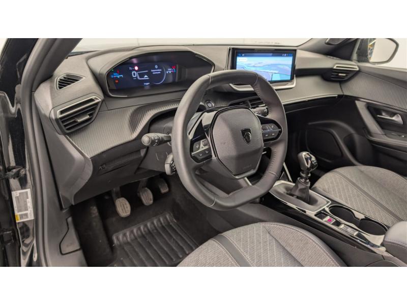 4 poignées de maintien (2 à l'AV et 2 à l'AR)6 airbags (Frontaux adaptatifs, latéraux AV, rideaux AV/AR)6 HPs (2 tweeters et 2 woofers à l'AV et 2 HPs à l'AR)Aide au stationnement AV/AR, graphique et sonoreAir conditionné automatique monozoneAppuis-tête réglables en hauteur AV (x2) et AR (x3)Banquette rabattable 1/3 - 2/3Barres de toit longitudinales Noir BrillantCanule d'échappement non chroméeConsole haute avec accoudoir & frein de stationnement électrique 1 prise USB type C (Charge) et 1 prise USB type A (Charge) pour passagers AR, Sélecteur de mode de conduite Normal/EcoEclairage intérieur: Plafonnier AV A-DOME 3 LEDs (1 lampe, 2 liseuses), 2 liseuses AR LED i-DOMEEléments de style intérieur: Panneaux de portes AV avec décor Carbone et baguette Noir brillant avec tampographie Quartz, Accoudoirs de porte AV/AR tissu/TEP Isabella avec surpiqûre QuartzESP Déconnectable avec aide au démarrage en pente et détection de sous gonflage indirecteFeux AR 3 griffes à LEDFixations ISOFIX aux 2 places latérales AR (Top Tether)Jantes alliage 17" diamantées KARAKOY bi-tons Noir Onyx et vernis brillantLève-vitres électriques AV/ AR et séquentiels avec anti-pincementPack Safety Plus Régulateur / Limiteur de vitesse, Freinage d'urgence automatique avec alerte risque de collision, Alerte active de franchissement involontaire de ligne et bas--côté,côté, Reconnaissance étendue des panneaux de signalisation et pr&eacutPack Visibilité - Allumage automatique des feux de croisement - Essuie vitre AV à déclenchement automatique - Eclairage extérieur d'accueil et d'accompagnement : Allumage automatique des feux de croisement Eclairage extérieur d'accueil et d'Pare-brise teinté acoustiquePeugeot Connect SOS & AssistancePeugeot i-Cockpit avec combiné tête haute 10" numériquePeugeot i-Connect: Radio DAB avec écran tactile couleur personnalisable 10" HD, Bluetooth, Mirror Screen sans fil (Apple CarPlay/Android Auto), Wifi, 1 prise USB type C ( Data+charge) et 1 prise USB type C (Charge) sur console AVPlancher de coffre standardProjecteurs Peugeot LED Technology avec feux diurnes à LED 3 griffesRétroviseur intérieur électrochromeRétroviseurs extérieurs dégivrants avec réglage et rabattement électriquesSellerie tissu CASUAL LOMSA embossé, accompagnement TEP Isabella, trimatière LOMSA et surpiqûres QuartzSiège conducteur avec réglage manuel en hauteurSiège passager AV avec réglage manuel en hauteurTélécommande 3 boutons + clé standardVitres latérales AR et lunette AR chauffante temporisée surteintéesVolant compact en croûte de cuir avec commandes multimédia intégrées