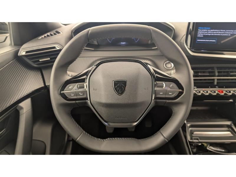 4 poignées de maintien rétractables (2 à l'AV et 2 à l'AR)6 Airbags (Frontaux auto-adaptatifs, latéraux AV et rideaux AV/AR)6 HPs (2 tweeters et 2 woofers à l'AV et 2 HPs à l'AR)ABSAide au stationnement AV/AR, graphique et sonoreAir conditionné automatique monozoneAppuis-tête réglables en hauteur AV (x2) et AR (x3)Banquette rabattable 1/3 - 2/3Barres de toit longitudinalesBoîte manuelleConsole haute avec accoudoir & frein de stationnement électrique 1 prise USB type C (Charge) et 1 prise USB type A (Charge) pour passagers AR, Sélecteur de mode de conduite Normal/EcoContrôle de tractionDirection assistéeESP Déconnectable avec aide au démarrage en pente et détection de sous gonflage indirecteFeux AR 3 griffes à LEDFixations ISOFIX et Top Tether aux places latérales ARJantes alliage 17" diamantées KARAKOY bi-tons Noir Onyx et vernis brillantLève-vitres AV/AR électriques et séquentiels avec antipincementPack Safety Plus : Freinage d'urgence automatique de jour et de nuit (3 caméras & radar) Freinage automatique d'urgence avec alerte risque de collision, détection élargie (3 caméras haut de pare-brise) et protection des usagers de la route vulnérablPack Visibilité : Allumage automatique des feux de croisement Eclairage extérieur d'accueil et d'accompagnement Essuie-vitre AV à déclenchement automatiquePare-brise teinté acoustiquePeugeot Connect SOSPeugeot i-Cockpit avec combiné tête haute 10" numériquePeugeot i-Connect: Radio DAB avec écran tactile couleur personnalisable 10" HD, Bluetooth, Mirror Screen sans fil (Apple CarPlay/Android Auto), Wifi, 1 prise USB type C ( Data+charge) et 1 prise USB type C (Charge) sur console AVProjecteurs Peugeot LED Technology avec feux diurnes à LED 3 griffesRétroviseur intérieur électrochromeRétroviseurs extérieurs dégivrants avec réglage et rabattement électriquesSellerie tissu CASUAL LOMSA embossé, accompagnement TEP Isabella, trimatière LOMSA et surpiqûres QuartzSiège conducteur avec réglage manuel en hauteurSiège passager AV avec réglage manuel en hauteurVitres latérales AR et lunette AR chauffante temporisée surteintéesVolant compact en croûte de cuir avec commandes multimédia intégrées
