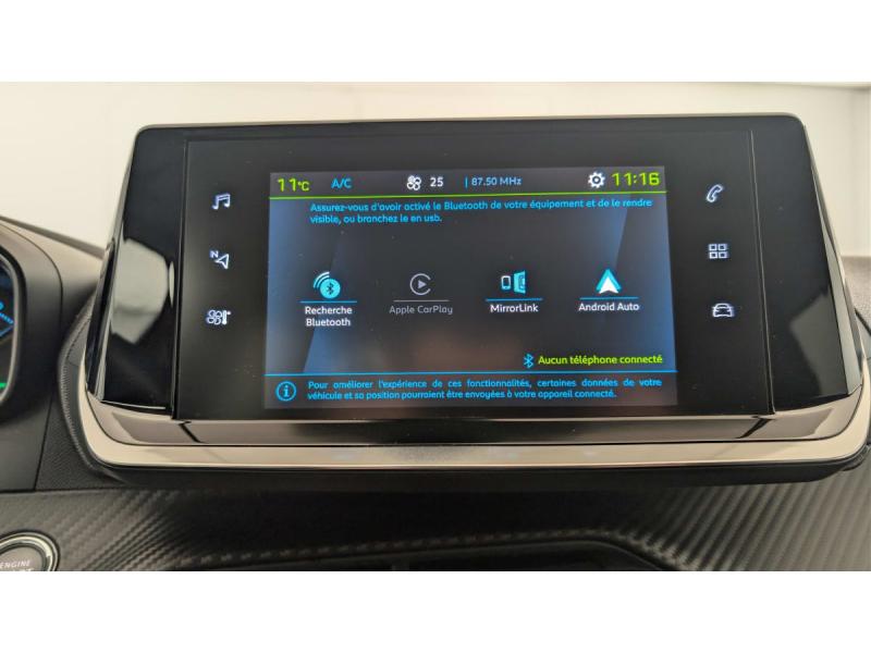 4 poignées de maintien (2 à l'AV et 2 à l'AR)6 HPs (2 tweeters et 2 woofers à l'AV et 2 HPs à l'AR)Aide au démarrage en penteAide graphique et sonore au stationnement ARAir conditionné automatique monozoneAirbags frontaux, latéraux AV (thorax et abdominaux), rideaux AVAllumage automatique des feux de croisementAppuis-tête réglables en hauteur AV et AR (x3)Avertisseur de temps de conduiteBanquette rabattable 1/3 - 2/3Barres de toit longitudinalesCâble électrique mode 2, prises de charge T2/EF type Green'upChargeur embarqué 7,4kW monophaséConsole haute avec accoudoir intégréCoques de rétroviseurs extérieurs avec répétiteurs latéraux à LEDDémarrage mains libresDétection de sous-gonflage indirecteDirection assistée électriqueEclairage de coffre à ampouleEclairage extérieur d'accueil et d'accompagnementEclairage intérieur à LED : plafonniers tactiles AV (1 lampe et 2 liseuses) et AR (2 liseuse), miroir de courtoisie dans pare-soleil, cave à piedsEssuie-vitre AV à déclenchement automatiqueFeux AR 3 griffes à LEDFeux diurnes à LED sous projecteursFilets aumônières au dos des sièges AVFixations suivant norme ISOFIX et Top Tether avec étiquettes de localisation aux places latérales ARFonction Bluetooth et Mirror Screen (Apple CarPlay / Android Auto / MirrorLink)Fonction DAB (Radio Numérique Terrestre)Frein de stationnement électrique avec aide au démarrage en pente et serrage automatiqueHill AssistJantes alliage 17'' SALAMANCA diamantées bi-tons Noir Onyx et vernis brillant, cabochons et vis NoirKit de dépannage pneumatique avec conditionnement rigideLève-vitres AV/AR électriques et séquentiels avec antipincementPack Safety Plus : Pack Safety Freinage d'urgence automatique avec caméra & radarPare-brise teinté acoustiquePEUGEOT Connect SOSPeugeot i-Cockpit avec combiné tête haute analogique et matrice TFT 3,5'' couleurPlancher de coffre 2 positionsProgramme de Stabilité Electronique (ESC) avec ASR, ABS, REF, AFU, CDS et TSMProjecteurs LED Technology, indicateurs de direction à ampoulesProtections latérales de portes Noir grainées avec inserts MétallureRégulateur / Limiteur de vitesseRétroviseur intérieur photosensibleRétroviseurs extérieurs dégivrants avec réglage et rabattement électriques, éclairage de seuilRadio avec écran tactile capacitif 7" couleur, 2 prises USB console AV (1 Data Type A, 1 recharge type C), 2 prises USB console haute (2 recharge Type A)Reconnaissance étendue des panneaux de signalisation et préconisation de vitesseSélecteur mode de conduiteSellerie Tri-matière Tissu COSY/TEP, surpiqûres Vert MentholéSiège conducteur avec réglage manuel en hauteurSiège passager AV à réglage manuel en hauteurVerrouillage automatique de tous les ouvrants en roulantVitres latérales AR et lunette AR chauffante temporisée surteintéesVolant compact croute de cuir, Lion chromé et commandes multimédia sur volantVolant réglable en hauteur et en profondeur