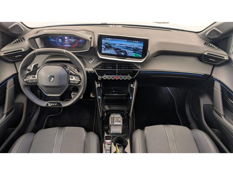 4 poignées de maintien rétractables (2 à l'AV et 2 à l'AR)6 Airbags (Frontaux auto-adaptatifs, latéraux AV et rideaux AV/AR)6 HP (2 tweeters et 2 woofers à l'AV et 2 larges bandes à l'AR)Accès et démarrage mains libres ProximityAccoudoirs sur portes AV et AR en TEP avec surpiqûre AdamiteAir conditionné automatique mono-zoneAntenne requinAppuis-tête réglables en hauteur AV (x2) et AR (x3)Banquette AR rabattable 1/3-2/3Becquet rapporté Noir BrillantCalandre haute de gamme noir grainée avec marquage couleur caisseCeinture de sécurité AR centrale 3 points, avec détection de non bouclageCeintures de sécurité AR latérales avec enrouleurs pyrotechniques, limiteurs d'effort et détection de non bouclageCeintures de sécurité AV conducteur et passager à enrouleurs pyrotechniques avec limiteurs d'effort et détection de non bouclageCommande d'ouverture des portes couleur caisseCommutation automatique des feux de route / feux de croisementConsole haute avec accoudoir & frein de stationnement électrique 1 prise USB type C (Charge) et 1 prise USB type A (Charge) pour passagers AR, Sélecteur de mode de conduite Normal/Eco/SportCoques de rétroviseurs extérieurs Noir BrillantDétection de sous-gonflage indirecteDirection assistée électriqueEclairage coffre à lampeEclairage intérieur Eclairager AV I-DOME à LED (1 plafonnier et 2 liseuses), 2 liseuses à LED AR, Miroir de courtoisie dans pare-soleil éclairé à LED, Eclairage à LED partie basse rangement et caves à piedsEclairage polyambiant 8 couleurs (Liés aux modes de conduite)Enjoliveur bas de calandre Noir BrillantEnjoliveur DRL Noir BrillantEnjoliveur entre feux AR noir brillantEnjoliveur supérieur de calandre Noir BrillantEnjoliveurs d'ailes Noir BrillantESP Déconnectable avec aide au démarrage en penteEssuie-vitre AV à déclenchement automatiqueEssuyage automatiqueFeux AR signature 3 griffes, stop, recul et indicateur de direction à LEDsFixations ISOFIX et Top Tether aux places latérales ARHabitacle et ciel de pavillon NoirJantes alliage 17" diamantées YANAKA bi--ton vernis brillant et Noir Orbital avec inserts Noir Orbital et vernis matJupes AR inférieure Noir brillantJupes AR supérieure Noir brillantLécheurs de vitres latérales Noir BrillantLève-vitres AR électriques et séquentiels avec antipincementLève-vitres AV électriques et séquentiels avec antipincementPédalier Sport aluminiumPack Safety Régulateur / Limiteur de vitesse : Alerte attention conducteur Régulateur / Limiteur de vitesse Reconnaissance étendue des panneaux de signalisation et préconisation de vitesse Alerte active de franchissement involontaire de ligne et bas côté FrePack Visibilité : Allumage automatique des feux de croisementPare-brise teintéPEUGEOT Connect SOSPeugeot i-Cockpit 3D avec combiné tête haute numérique 10''Peugeot i-Connect: Radio DAB avec écran tactile couleur personnalisable 10" HD, Bluetooth - Mirror Screen sans fil (Apple CarPlay/Android Auto) - Wifi - 1 prise USB type C ( Data+charge), 1 prise USB type C (Charge) sur console AVPlanche de bord Slush avec Décor Carbone TPE et double surpiqûres Adamite/Tramontane et baguette Noir brillante avec jonc chromé et jonc lumineuxPrise 12V et rangement pour smartphone en façade centraleProgramme de Stabilité Electronique (ESC) avec ASR, ABS, REF, AFU, CDS et TSMProjecteurs "Peugeot Full LED Technology" avec feux diurnes à LED 3 griffesRétroviseur intérieur électrochrome sans cadreRétroviseurs extérieurs dégivrants avec réglage et rabattement électriques, éclairage de seuilRecharge smartphone sans fil (15W)Roue de secours galetteSellerie tissu BELOMKA, accompagnement TEP Isabella, trimatière Uni Capy et surpiqûres Vert AdamiteSiège conducteur avec réglage manuel en hauteurVerrouillage automatique de tous les ouvrants en roulantVitres latérales AR et lunette AR chauffante temporisée surteintéesVolant compact cuir fleur avec commandes multimédia intégrées et badge GTVolant réglable en hauteur et en profondeur