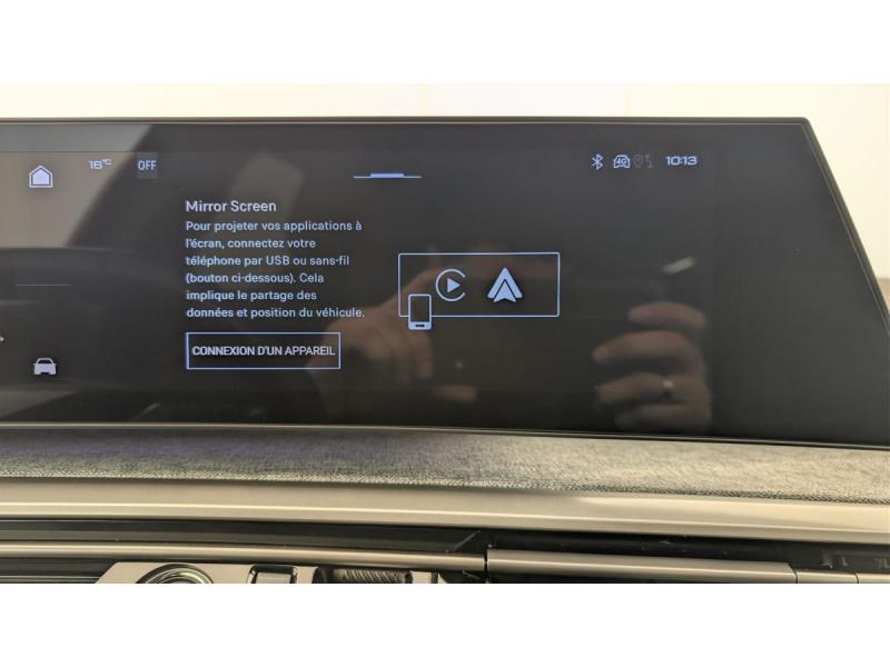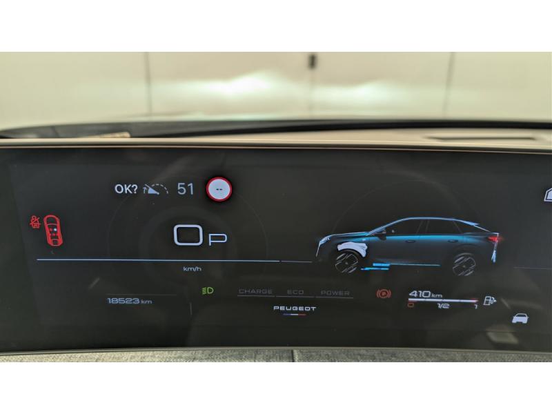 4 poignées de maintien rétractables (2 à l'AV et 2 à l'AR)6 airbags: frontaux conducteur et passager auto-adaptatifs (passager neutralisable par clé), latéraux conducteur et passager AV (thorax et bassin), rideaux aux places AV et AR (tête et thorax)6 HP (2 tweeters et 2 woofers à l'AV et 2 larges bandes à l'AR)Accès et démarrage mains libres ProximityAir conditionné automatique bi-zoneAllumage automatique des pharesBanquette AR avec dossier rabattable 40/20/40Détection de sous-gonflage indirecteEclairage intérieur Plafonnier AV et liseuses AR à LED, Boite à gants et rangement de console éclairés à LED, Eclairage des caves à pieds AV à LEDESP avec aide au démarrage en penteEssuie-vitre AV à déclenchement automatiqueFeux AR 3 griffes à LEDFeux diurnes 3 griffes à LEDFixations ISOFIX et Top Tether aux places latérales ARFrein de stationnement électriqueJantes alliage 19" diamantéesLève-vitres AV/AR électriques et séquentiels avec antipincementMirror Screen sans fil (Apple CarPlay / Android Auto)Pack Safety Plus : Alerte attention conducteur Reconnaissance étendue des panneaux de signalisation et préconisation de vitesse Alerte active de franchissement involontaire de ligne et bas côté Freinage d'urgence automatique avec alerte risque de collision pilot&eacuPare-brise feuilleté acoustiquePEUGEOT i-Cockpit panoramique avec Double écran HD flottant (2 x 10'')Plancher de coffre modulable 2 positionsProjecteurs "Peugeot Led Technology"Rétroviseur intérieur électrochromeSellerie tissu CRISPY embossé, accompagnement TEP Isabella, écharpe tissu RIMINI chiné, surpiqûres QuartzSièges AV à réglage en hauteur manuelVitres AR, custodes et lunette AR teintées