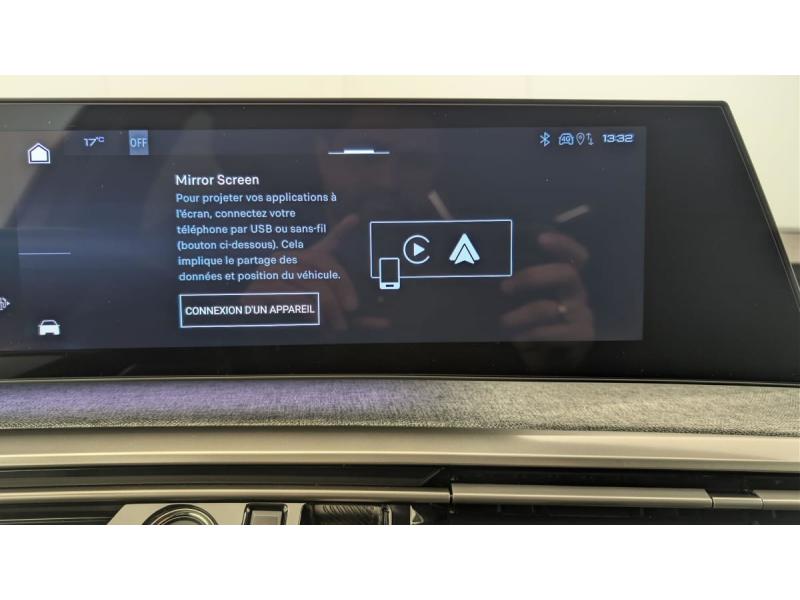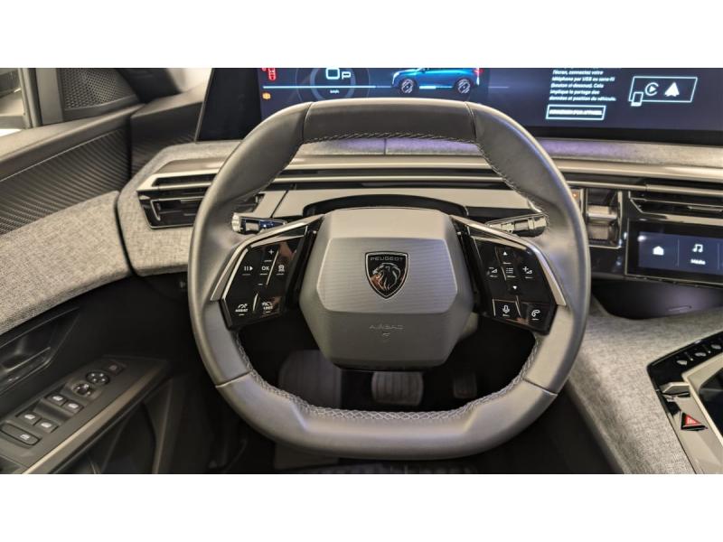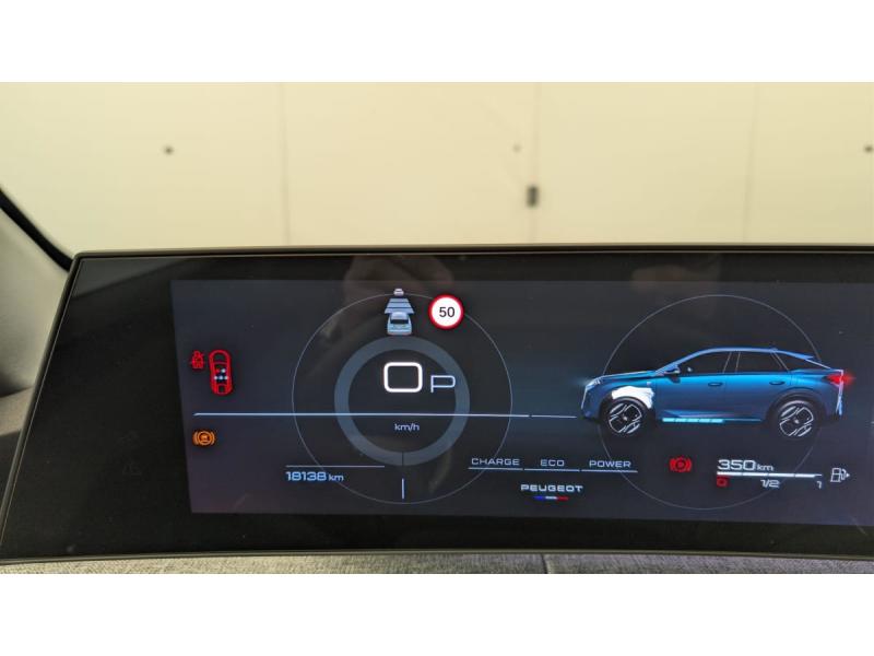 4 poignées de maintien rétractables (2 à l'AV et 2 à l'AR)6 airbags: frontaux conducteur et passager auto-adaptatifs (passager neutralisable par clé), latéraux conducteur et passager AV (thorax et bassin), rideaux aux places AV et AR (tête et thorax)6 HP (2 tweeters et 2 woofers à l'AV et 2 larges bandes à l'AR)Accès et démarrage mains libres ProximityAir conditionné automatique bi-zoneAllumage automatique des pharesBanquette AR avec dossier rabattable 40/20/40Détection de sous-gonflage indirecteEclairage intérieur Plafonnier AV et liseuses AR à LED, Boite à gants et rangement de console éclairés à LED, Eclairage des caves à pieds AV à LEDESP avec aide au démarrage en penteEssuie-vitre AV à déclenchement automatiqueFeux AR 3 griffes à LEDFeux diurnes 3 griffes à LEDFixations ISOFIX et Top Tether aux places latérales ARFrein de stationnement électriqueJantes alliage 19" diamantéesLève-vitres AV/AR électriques et séquentiels avec antipincementMirror Screen sans fil (Apple CarPlay / Android Auto)Pack Safety Plus : Alerte attention conducteur Reconnaissance étendue des panneaux de signalisation et préconisation de vitesse Alerte active de franchissement involontaire de ligne et bas côté Freinage d'urgence automatique avec alerte risque de collision pilot&eacuPare-brise feuilleté acoustiquePEUGEOT i-Cockpit panoramique avec Double écran HD flottant (2 x 10'')Plancher de coffre modulable 2 positionsProjecteurs "Peugeot Led Technology"Rétroviseur intérieur électrochromeSellerie tissu CRISPY embossé, accompagnement TEP Isabella, écharpe tissu RIMINI chiné, surpiqûres QuartzSièges AV à réglage en hauteur manuelVitres AR, custodes et lunette AR teintées
