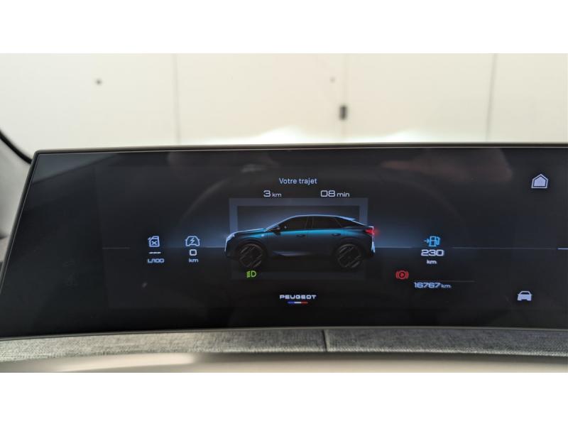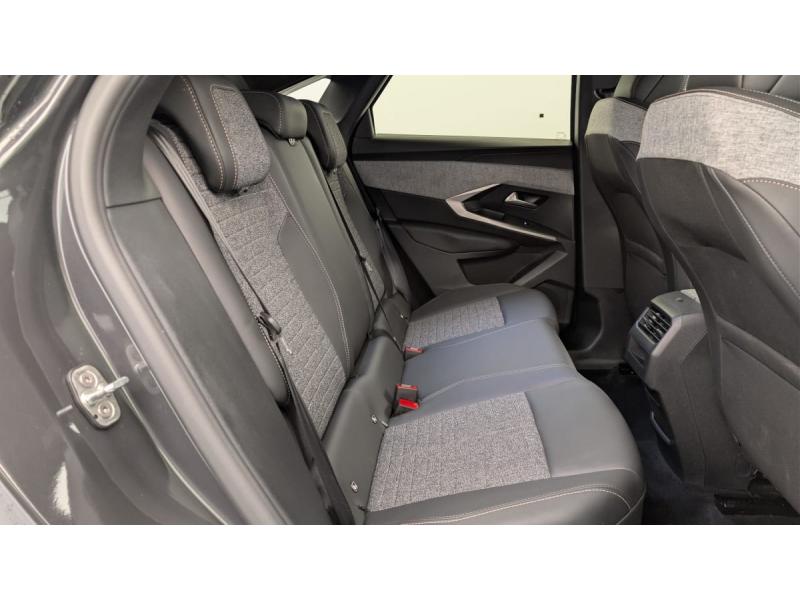 4 poignées de maintien rétractables (2 à l'AV et 2 à l'AR)6 airbags: frontaux conducteur et passager auto-adaptatifs (passager neutralisable par clé), latéraux conducteur et passager AV (thorax et bassin), rideaux aux places AV et AR (tête et thorax)6 HP (2 tweeters et 2 woofers à l'AV et 2 larges bandes à l'AR)Accès et démarrage mains libres ProximityAir conditionné automatique bi-zoneAllumage automatique des pharesBanquette AR avec dossier rabattable 40/20/40Détection de sous-gonflage indirecteEclairage intérieur Plafonnier AV et liseuses AR à LED, Boite à gants et rangement de console éclairés à LED, Eclairage des caves à pieds AV à LEDESP avec aide au démarrage en penteEssuie-vitre AV à déclenchement automatiqueFeux AR 3 griffes à LEDFeux diurnes 3 griffes à LEDFixations ISOFIX et Top Tether aux places latérales ARFrein de stationnement électriqueJantes alliage 19" diamantéesLève-vitres AV/AR électriques et séquentiels avec antipincementMirror Screen sans fil (Apple CarPlay / Android Auto)Pack Safety Plus : Alerte attention conducteur Reconnaissance étendue des panneaux de signalisation et préconisation de vitesse Alerte active de franchissement involontaire de ligne et bas côté Freinage d'urgence automatique avec alerte risque de collision pilot&eacuPare-brise feuilleté acoustiquePEUGEOT i-Cockpit panoramique avec Double écran HD flottant (2 x 10'')Plancher de coffre modulable 2 positionsProjecteurs "Peugeot Led Technology"Rétroviseur intérieur électrochromeSellerie tissu CRISPY embossé, accompagnement TEP Isabella, écharpe tissu RIMINI chiné, surpiqûres QuartzSièges AV à réglage en hauteur manuelVitres AR, custodes et lunette AR teintées