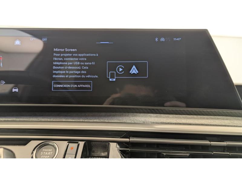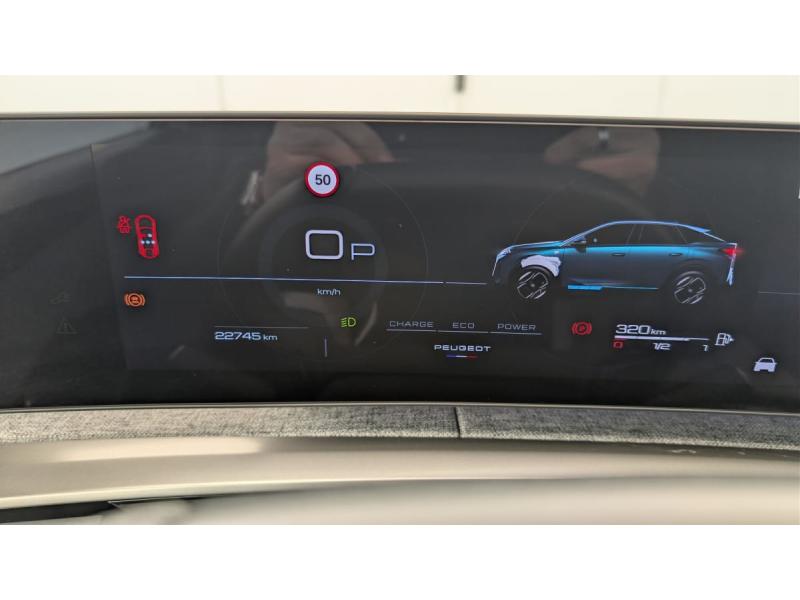 4 poignées de maintien rétractables (2 à l'AV et 2 à l'AR)6 airbags: frontaux conducteur et passager auto-adaptatifs (passager neutralisable par clé), latéraux conducteur et passager AV (thorax et bassin), rideaux aux places AV et AR (tête et thorax)6 HP (2 tweeters et 2 woofers à l'AV et 2 larges bandes à l'AR)Accès et démarrage mains libres ProximityAir conditionné automatique bi-zoneAllumage automatique des pharesBanquette AR avec dossier rabattable 40/20/40Détection de sous-gonflage indirecteEclairage intérieur Plafonnier AV et liseuses AR à LED, Boite à gants et rangement de console éclairés à LED, Eclairage des caves à pieds AV à LEDESP avec aide au démarrage en penteEssuie-vitre AV à déclenchement automatiqueFeux AR 3 griffes à LEDFeux diurnes 3 griffes à LEDFixations ISOFIX et Top Tether aux places latérales ARFrein de stationnement électriqueJantes alliage 19" diamantéesLève-vitres AV/AR électriques et séquentiels avec antipincementMirror Screen sans fil (Apple CarPlay / Android Auto)Pack Safety Plus : Alerte attention conducteur Reconnaissance étendue des panneaux de signalisation et préconisation de vitesse Alerte active de franchissement involontaire de ligne et bas côté Freinage d'urgence automatique avec alerte risque de collision pilot&eacuPare-brise feuilleté acoustiquePEUGEOT i-Cockpit panoramique avec Double écran HD flottant (2 x 10'')Plancher de coffre modulable 2 positionsProjecteurs "Peugeot Led Technology"Rétroviseur intérieur électrochromeSellerie tissu CRISPY embossé, accompagnement TEP Isabella, écharpe tissu RIMINI chiné, surpiqûres QuartzSièges AV à réglage en hauteur manuelVitres AR, custodes et lunette AR teintées
